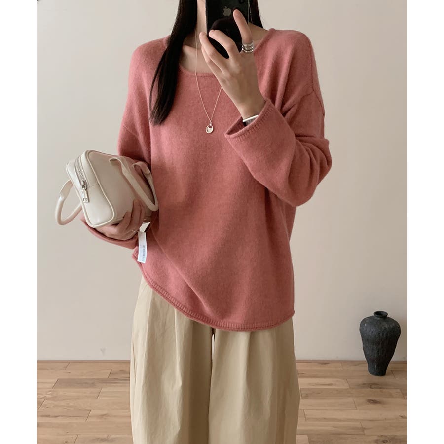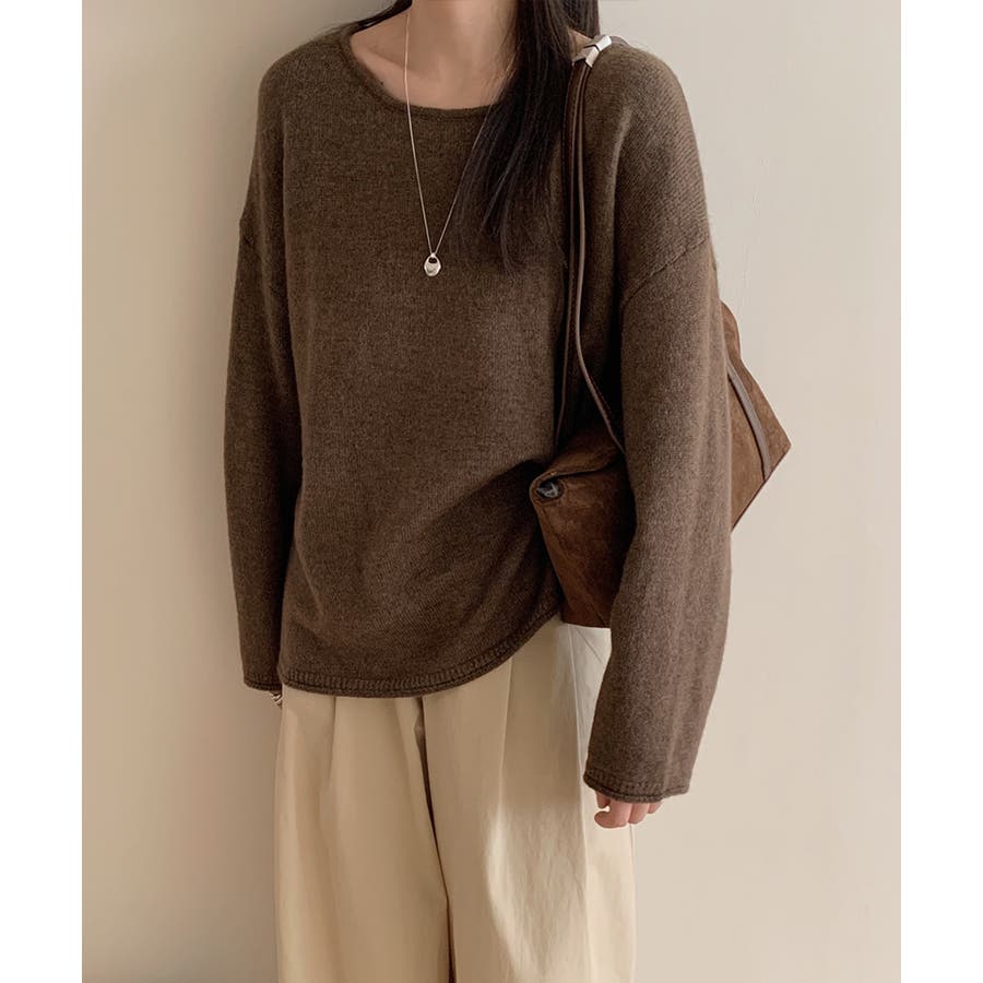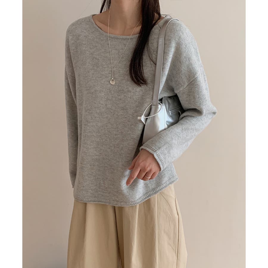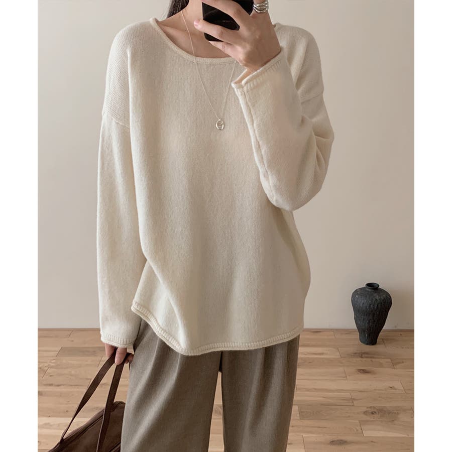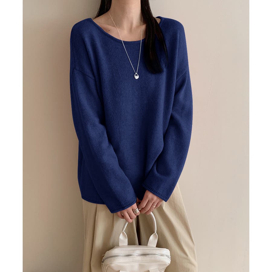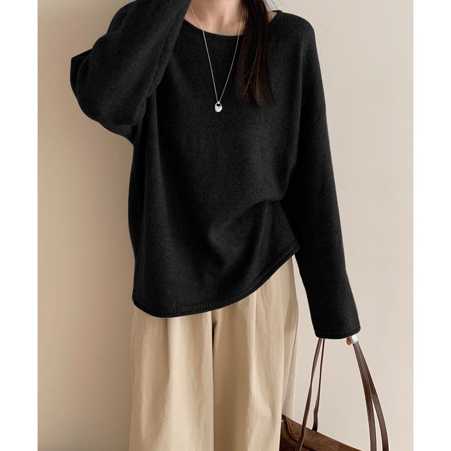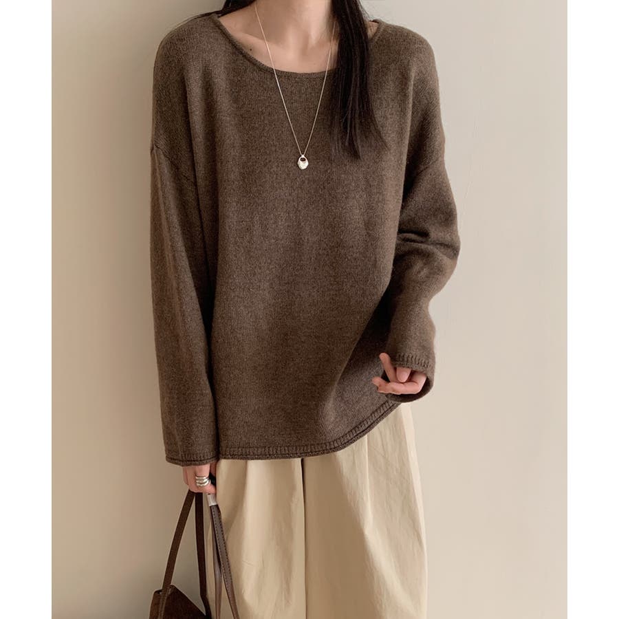 抜け感リラックスニット ラウンドネックニット 長袖ニット