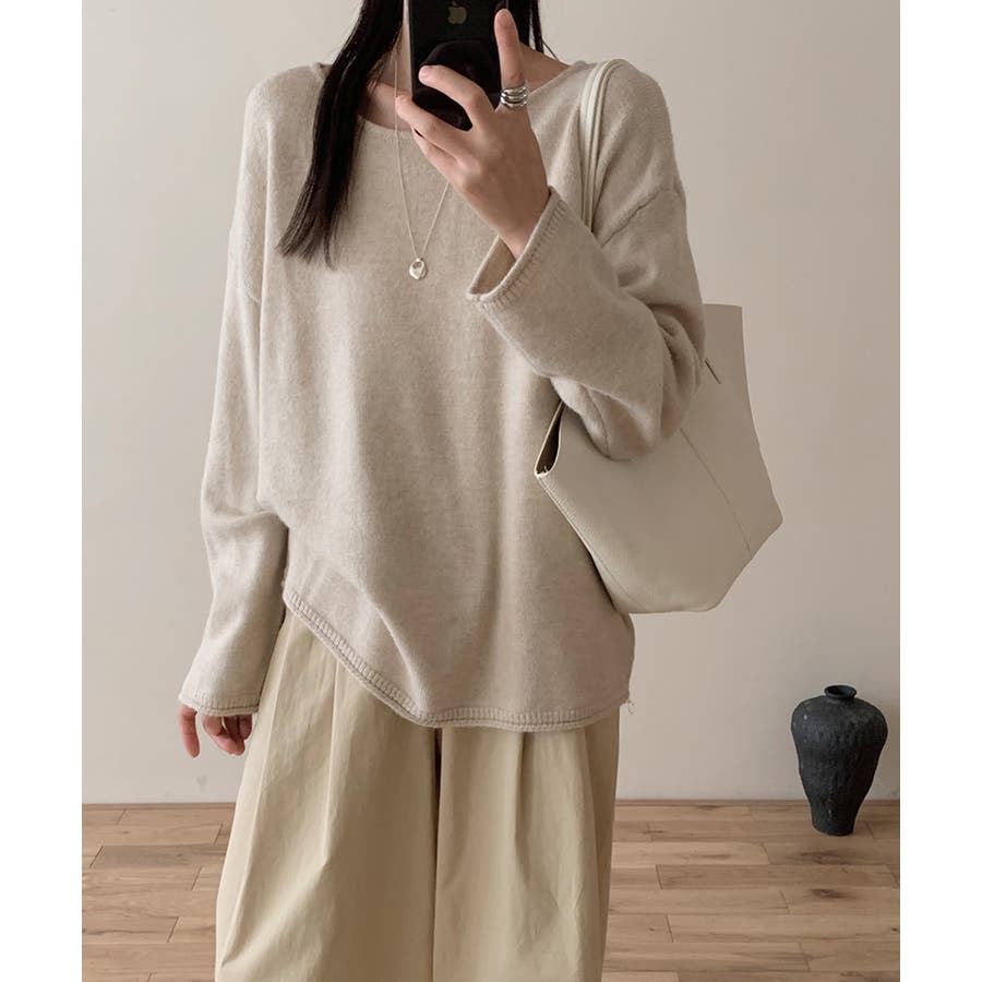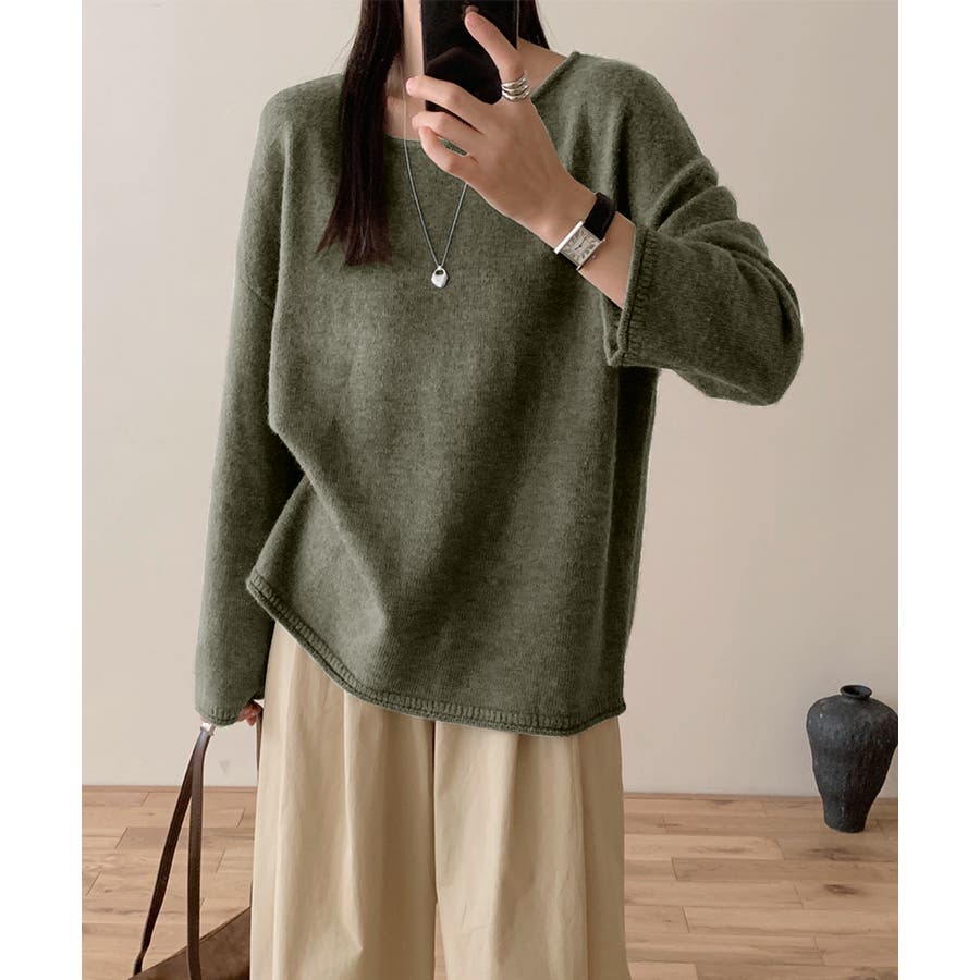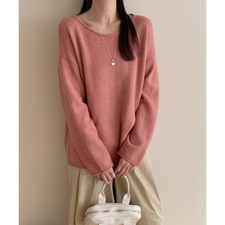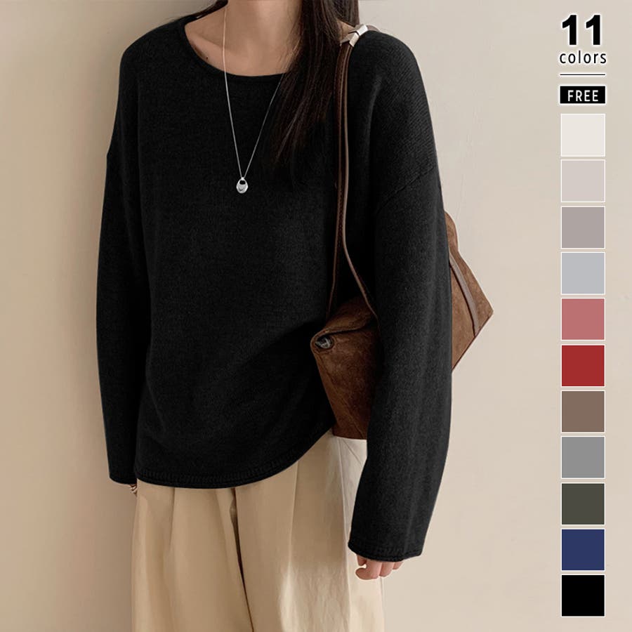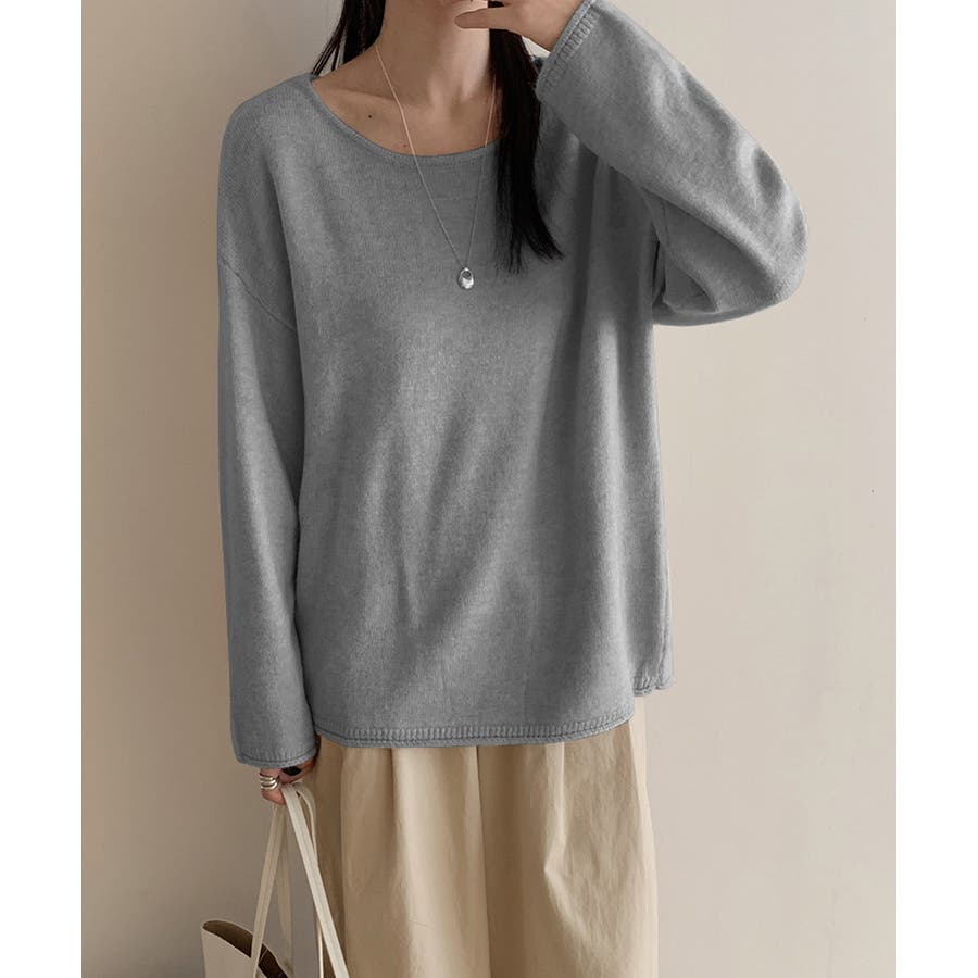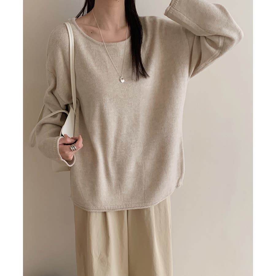 抜け感リラックスニット ラウンドネックニット 長袖ニット