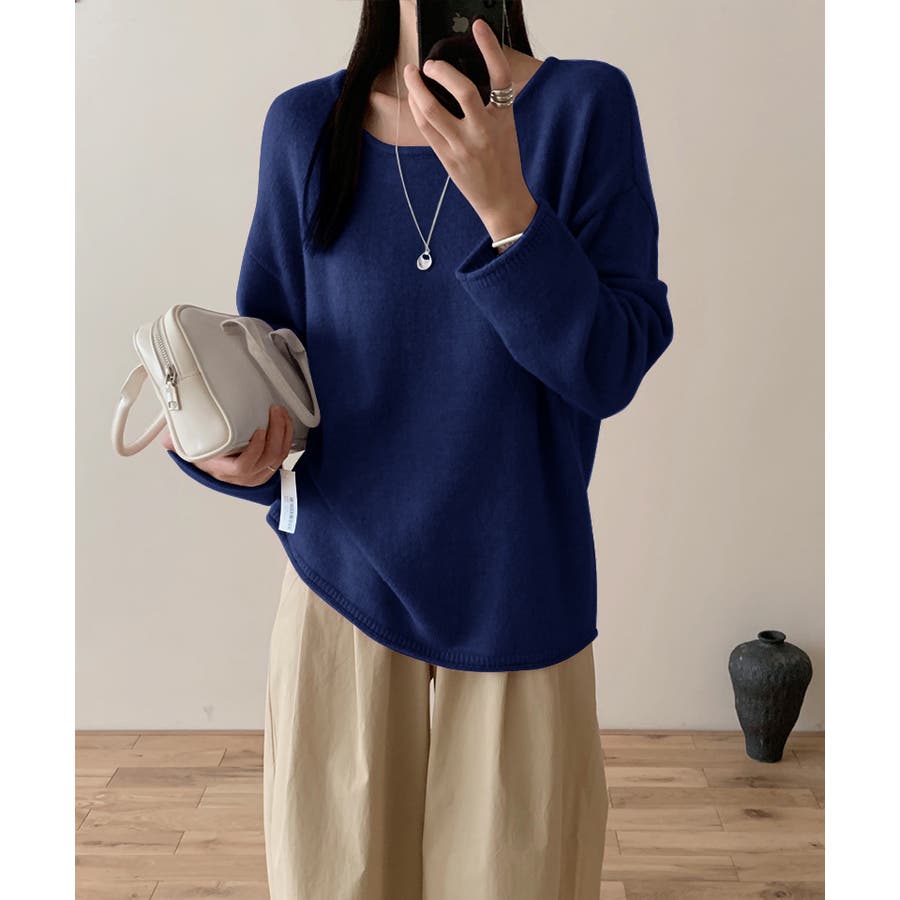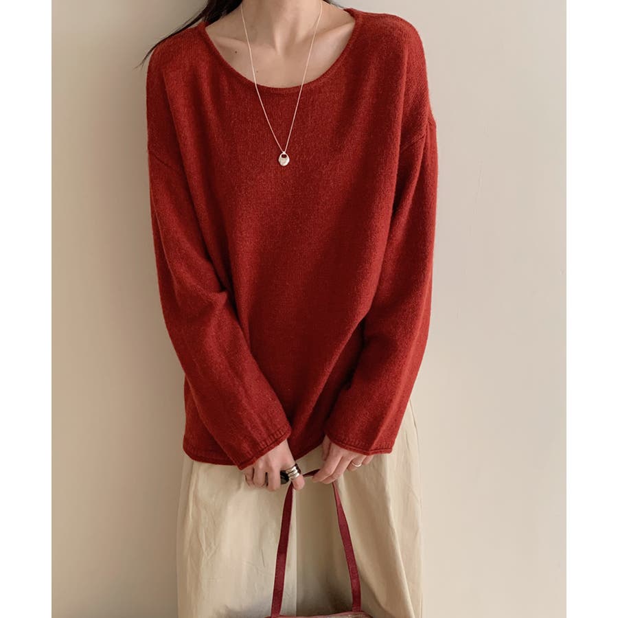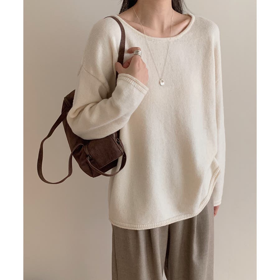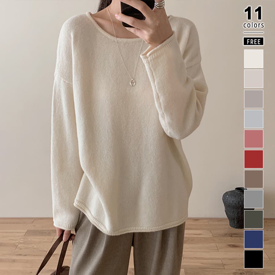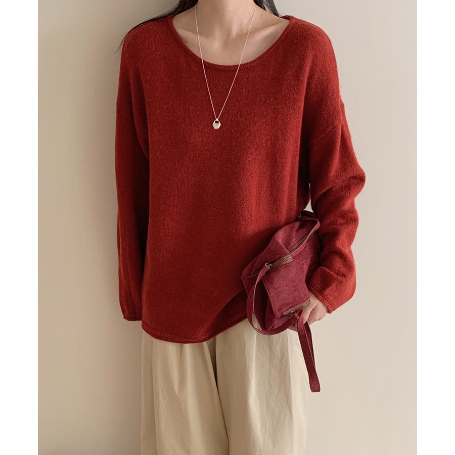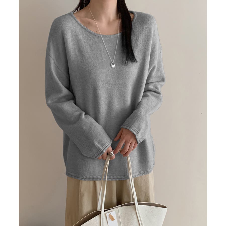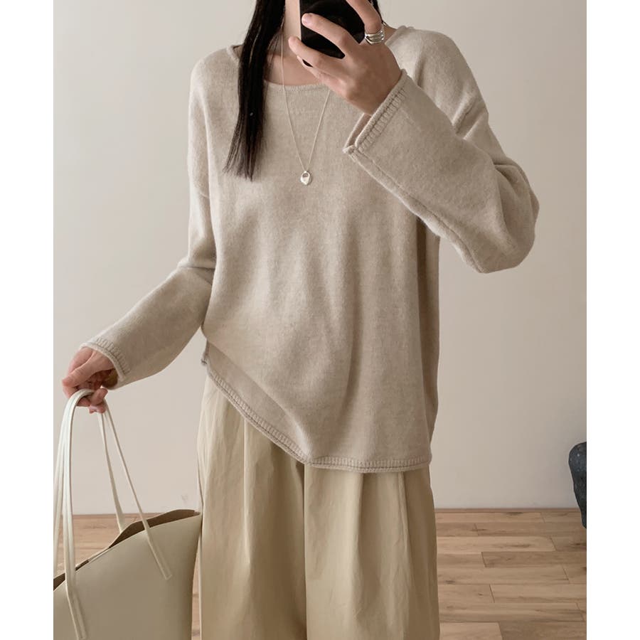 抜け感リラックスニット ラウンドネックニット 長袖ニット