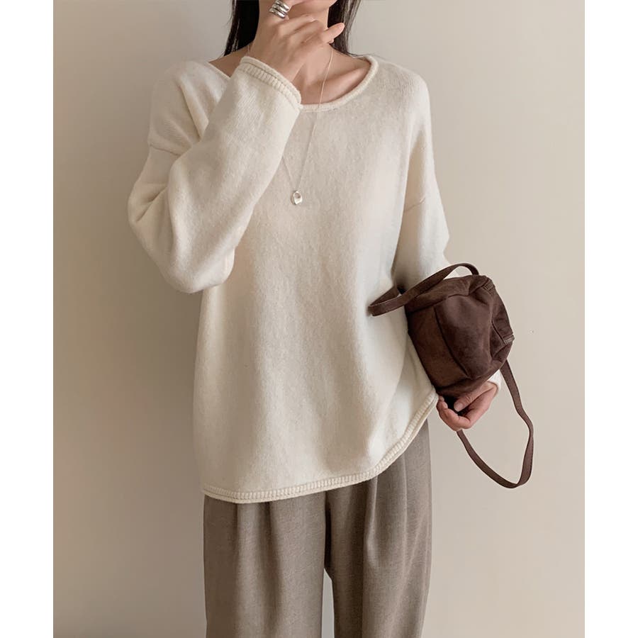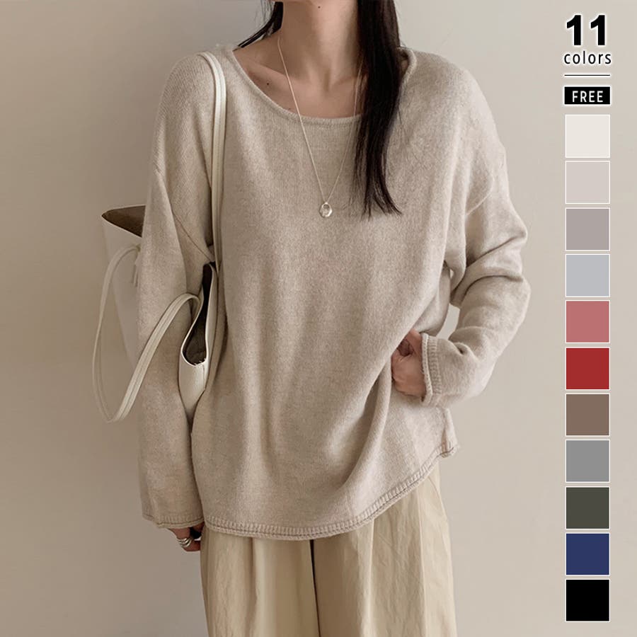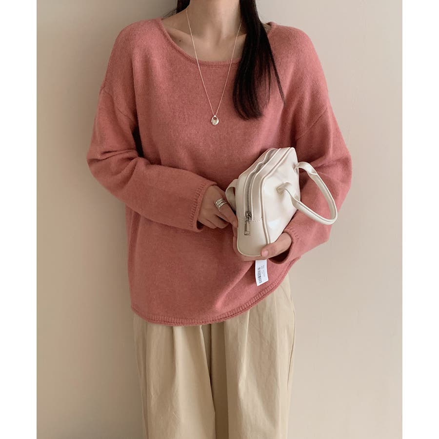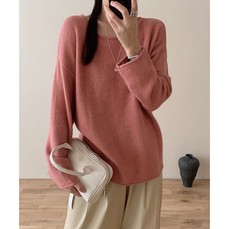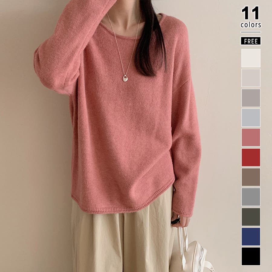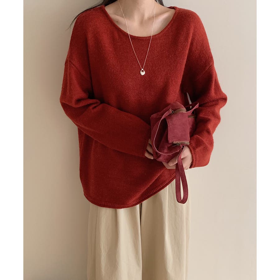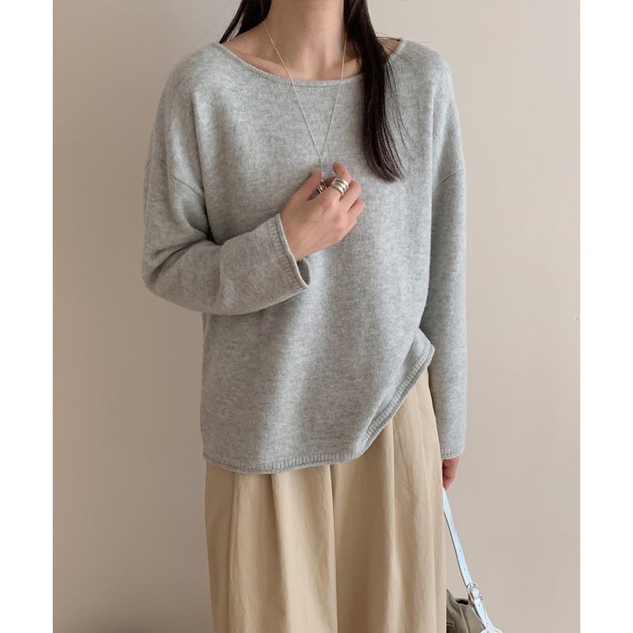 抜け感リラックスニット ラウンドネックニット 長袖ニット