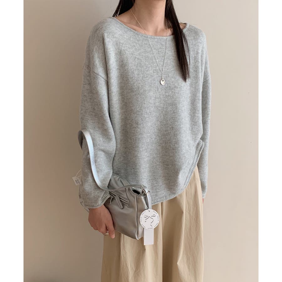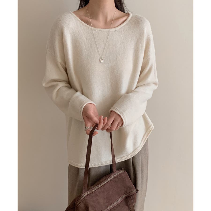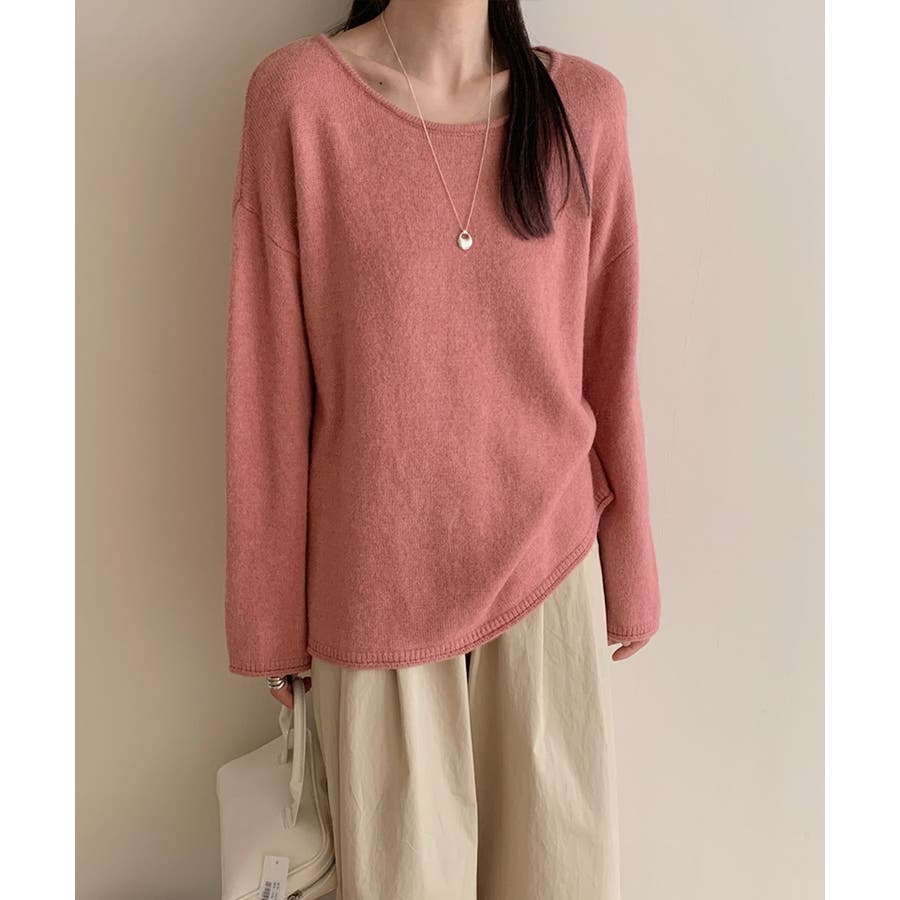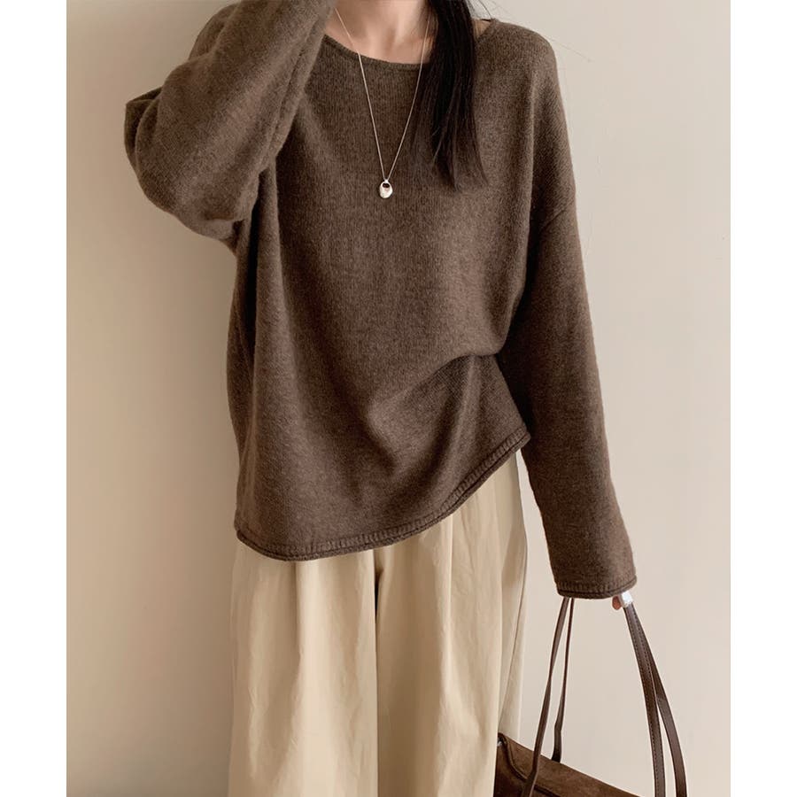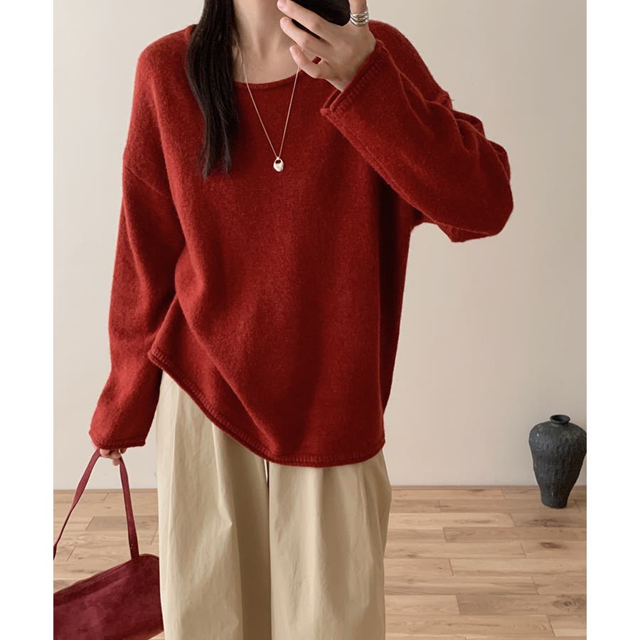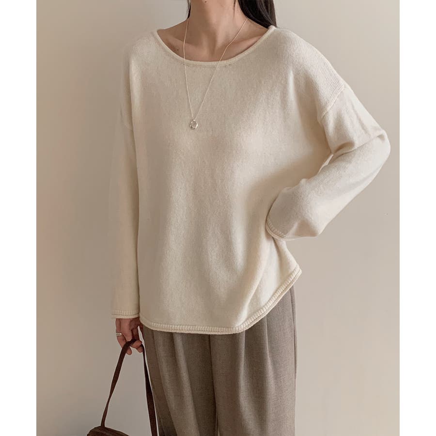 抜け感リラックスニット ラウンドネックニット 長袖ニット
