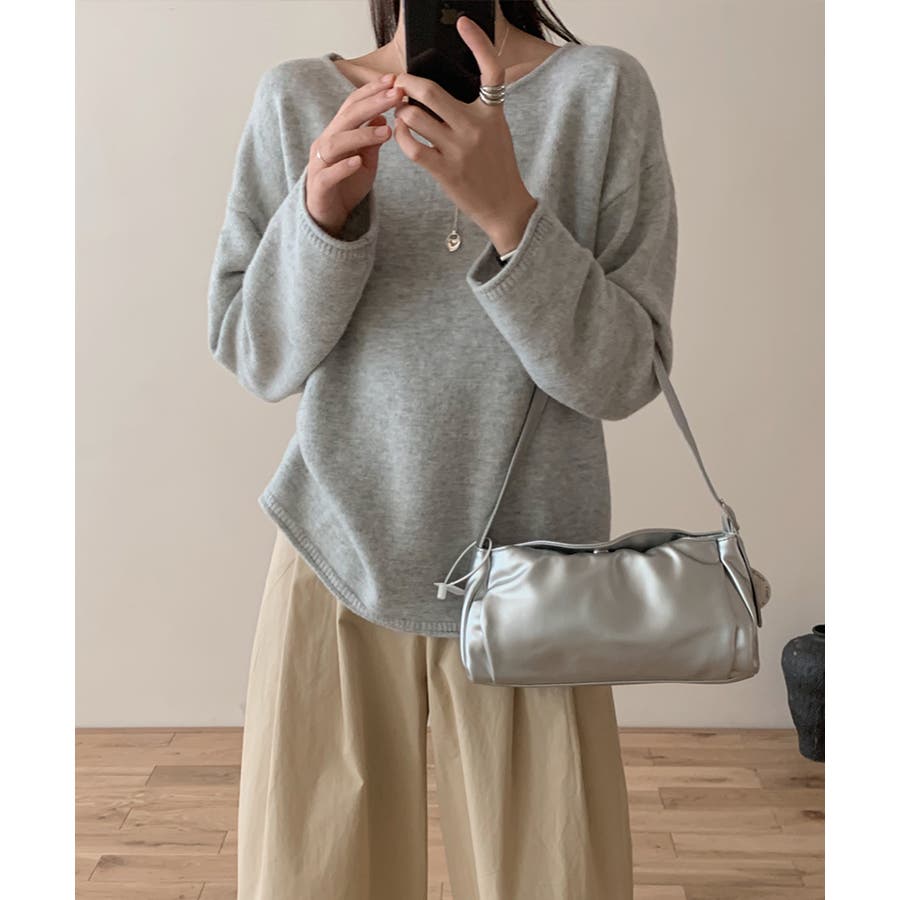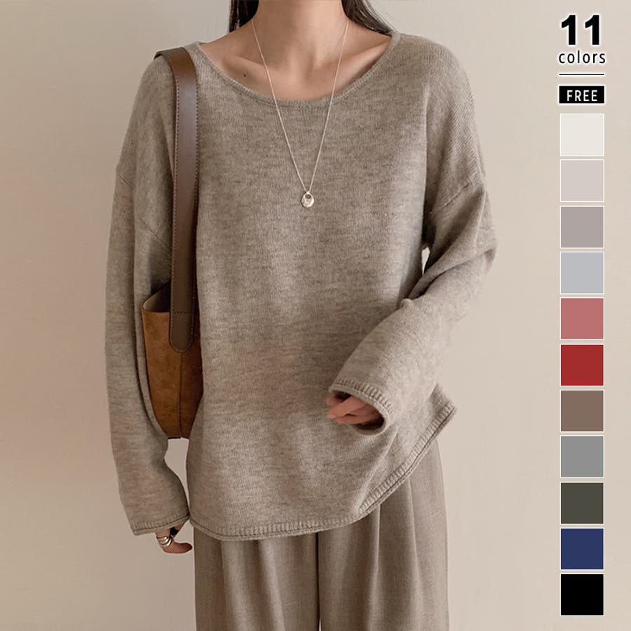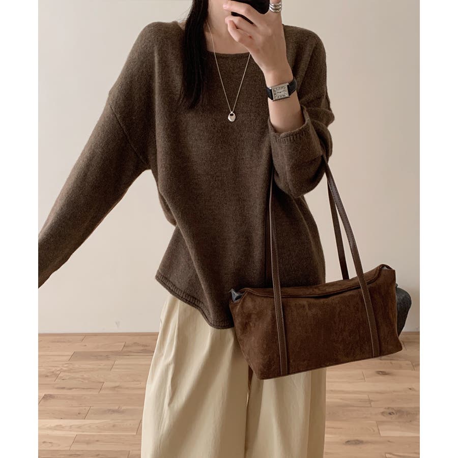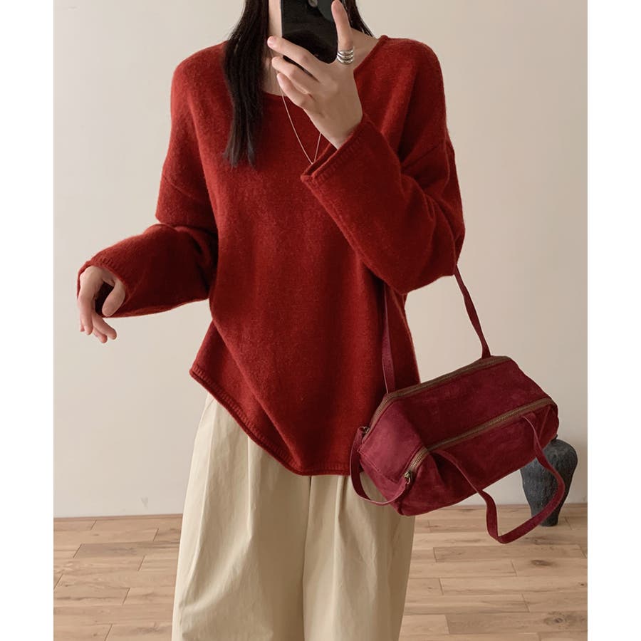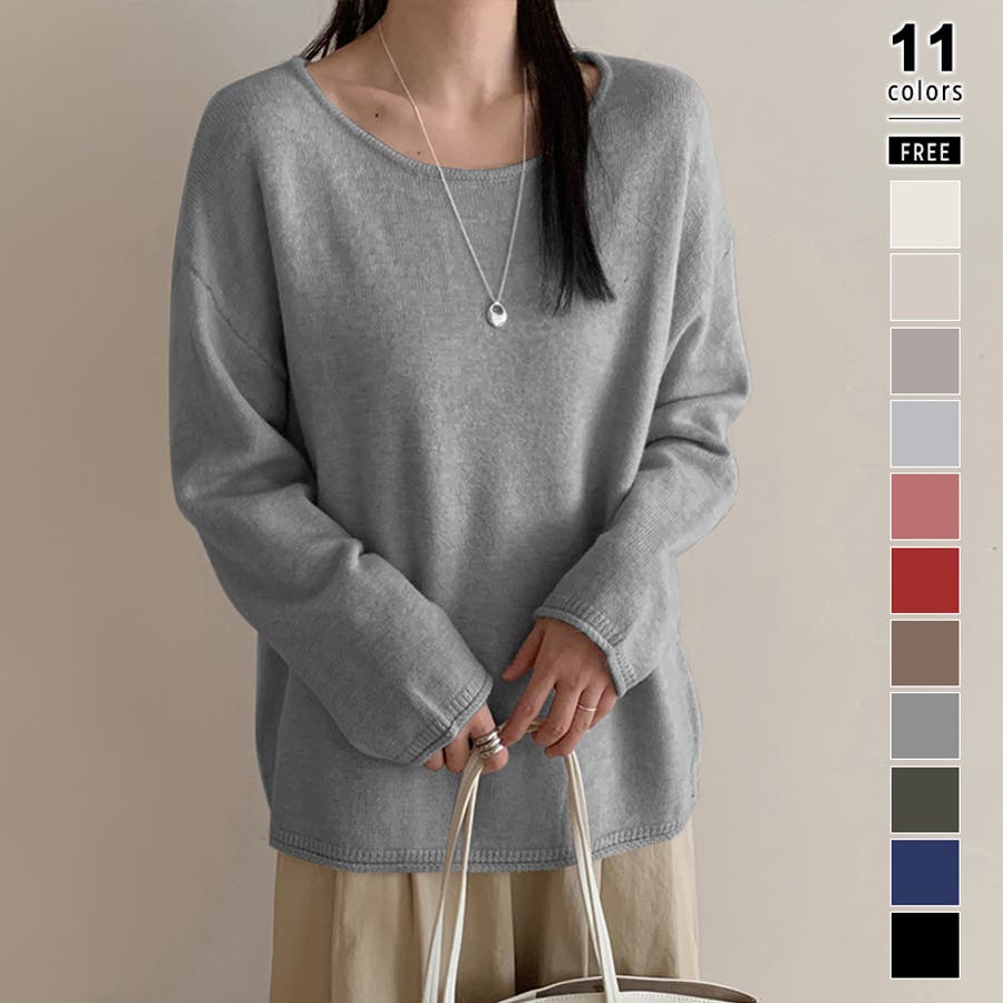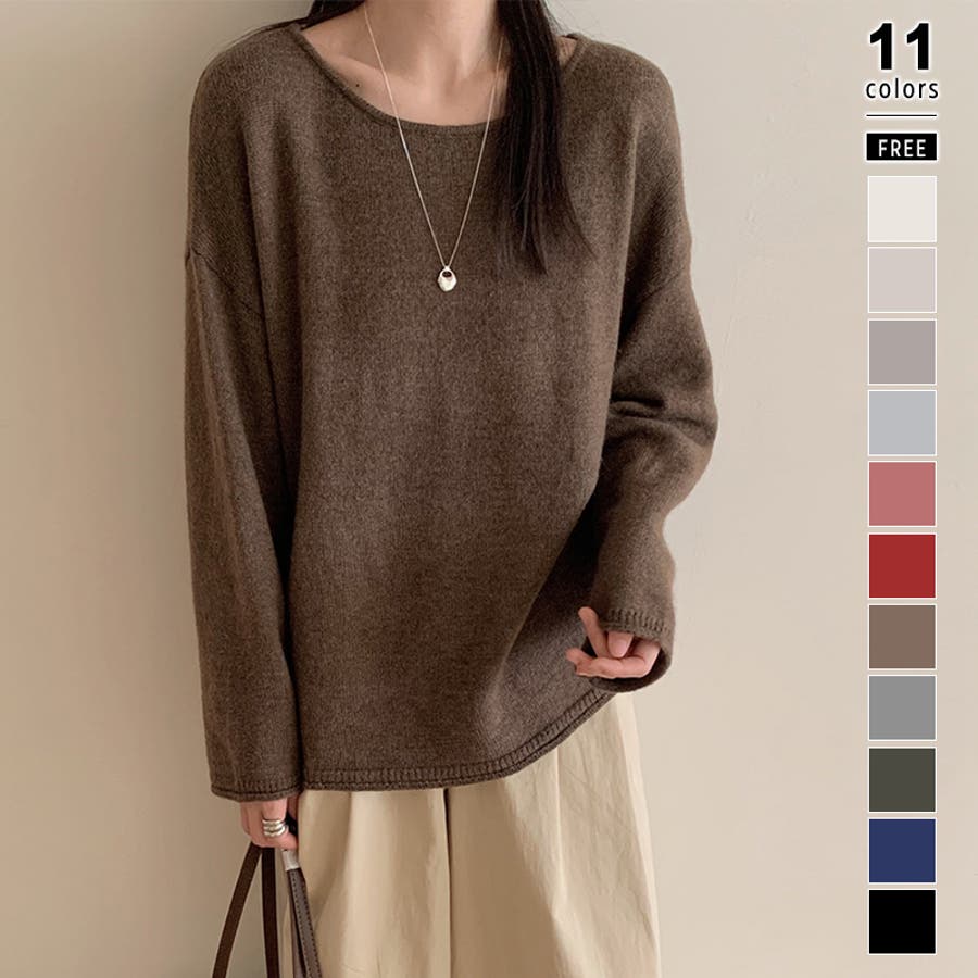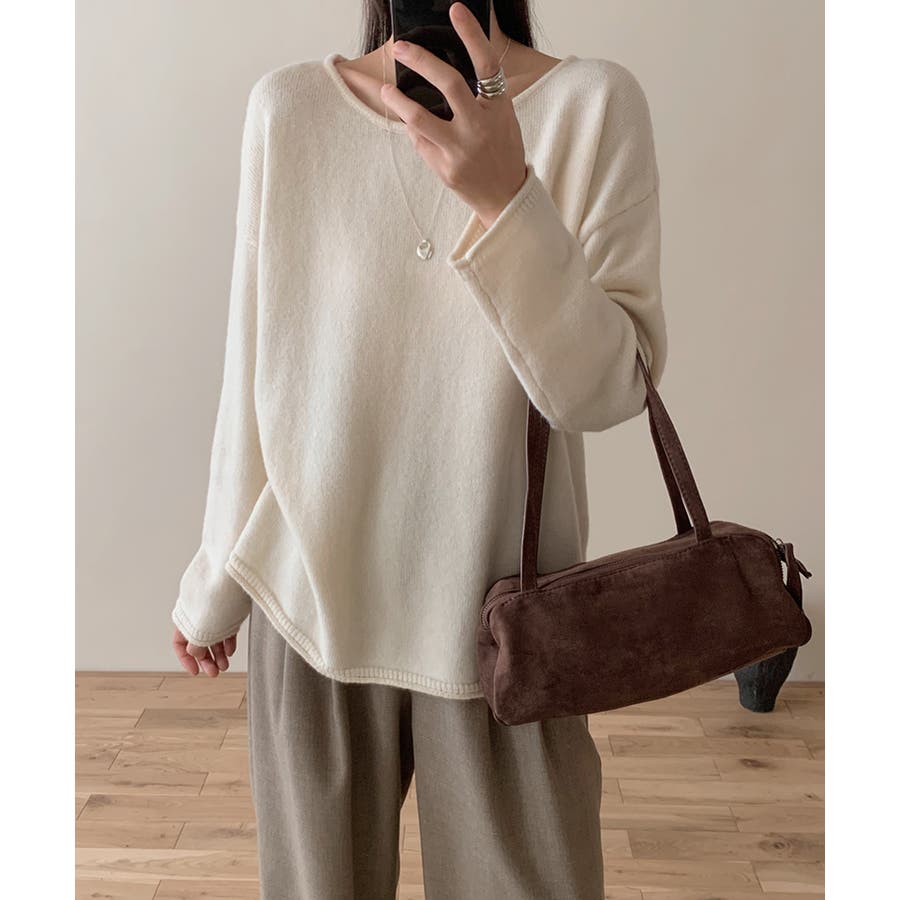 抜け感リラックスニット ラウンドネックニット 長袖ニット