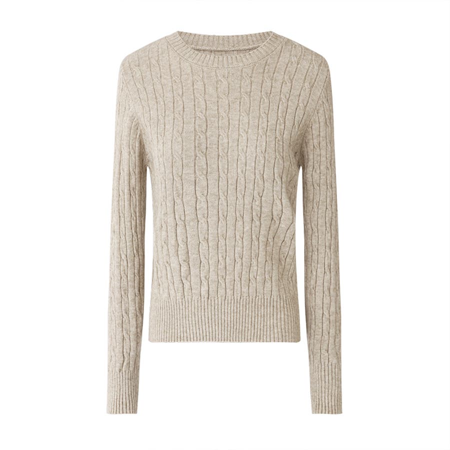 立体感のあるケーブル編みが 表情豊かな、ケーブルニット。 柔らかく滑らかなレーヨン混素材で 軽やかな着心地に。 すっきりとしたクルーネックに コンパクトなシルエットは、 パンツにもスカートにも合わせやすく 幅広いコーデに活躍する一枚です。
