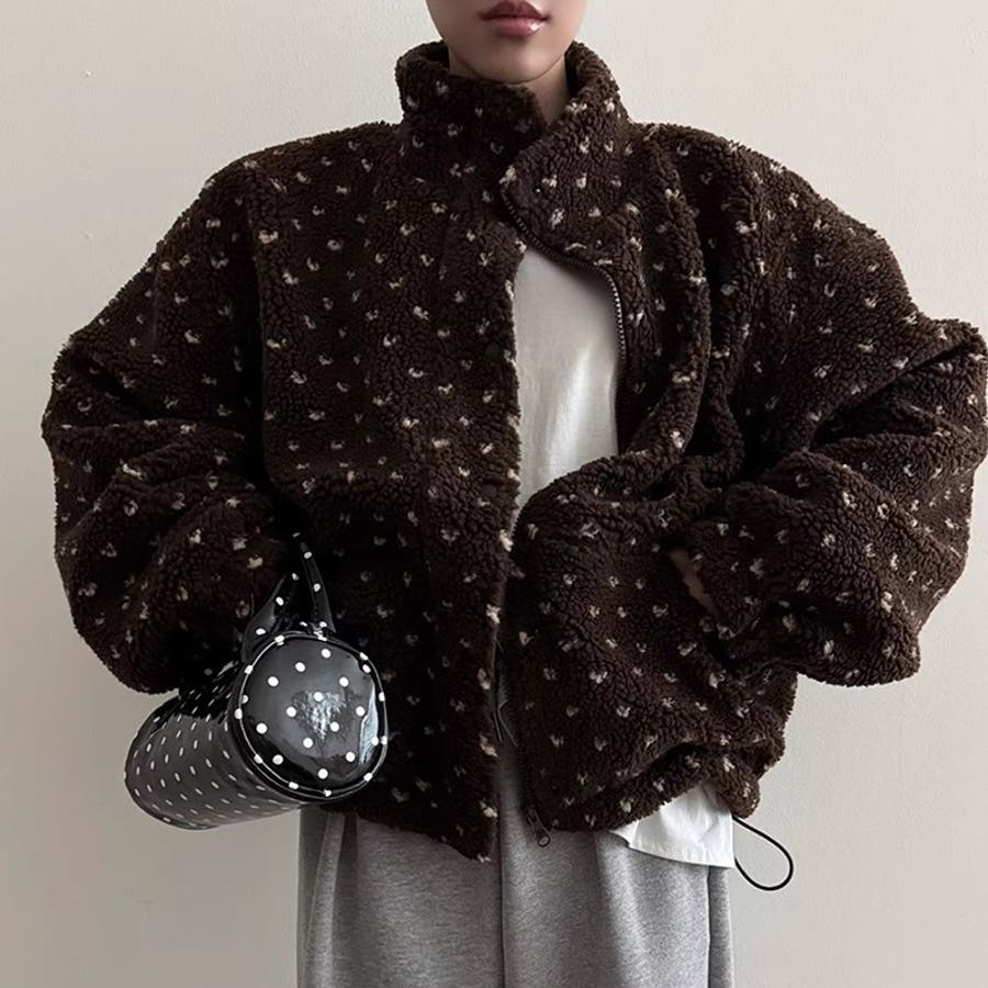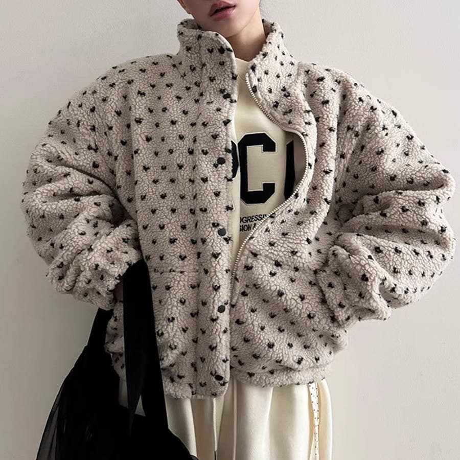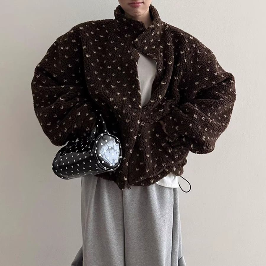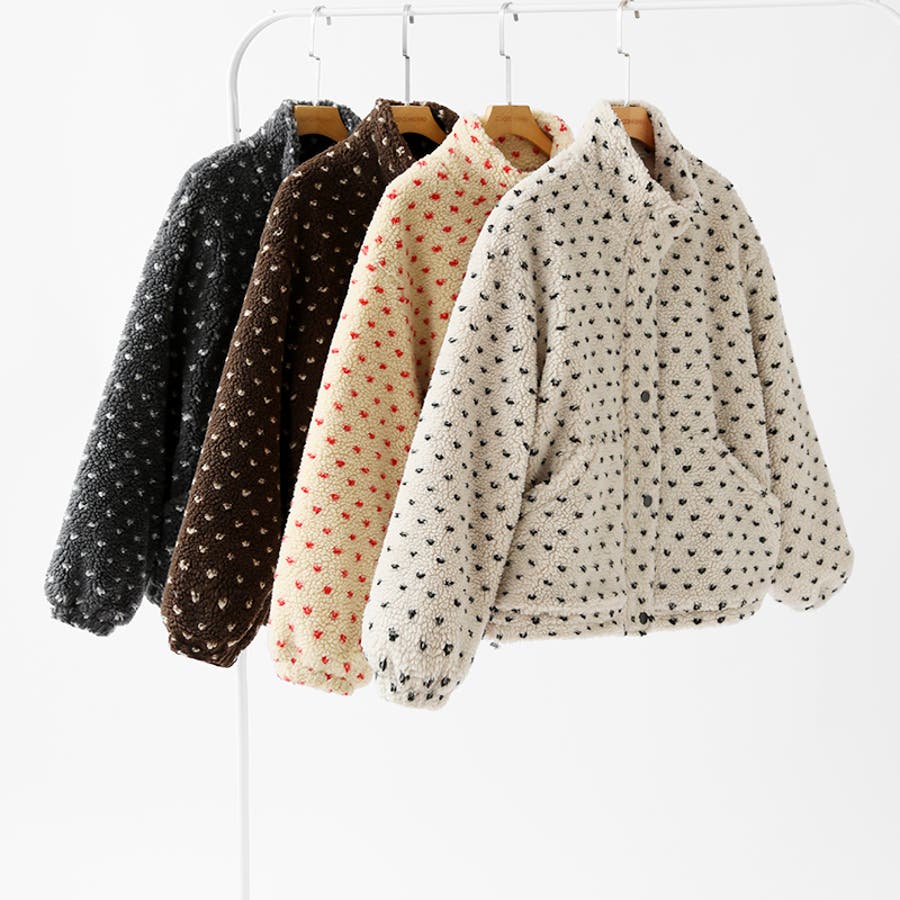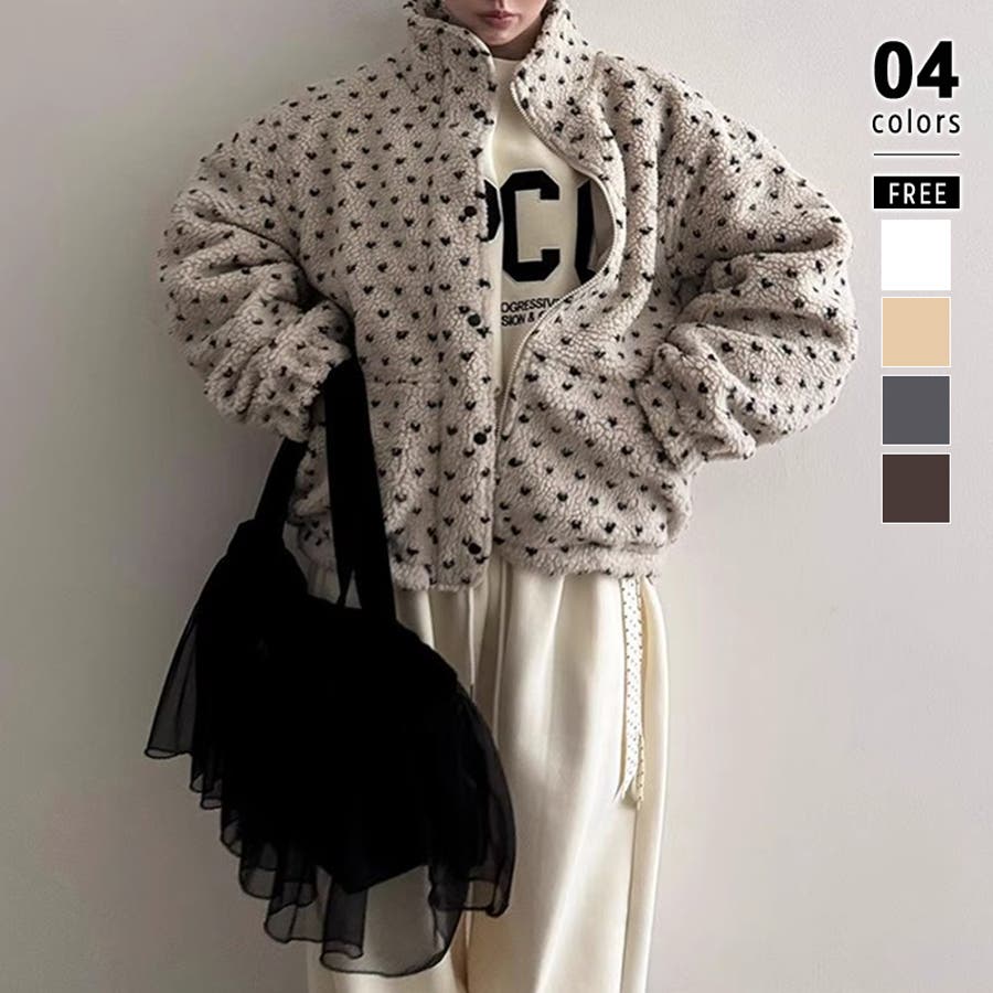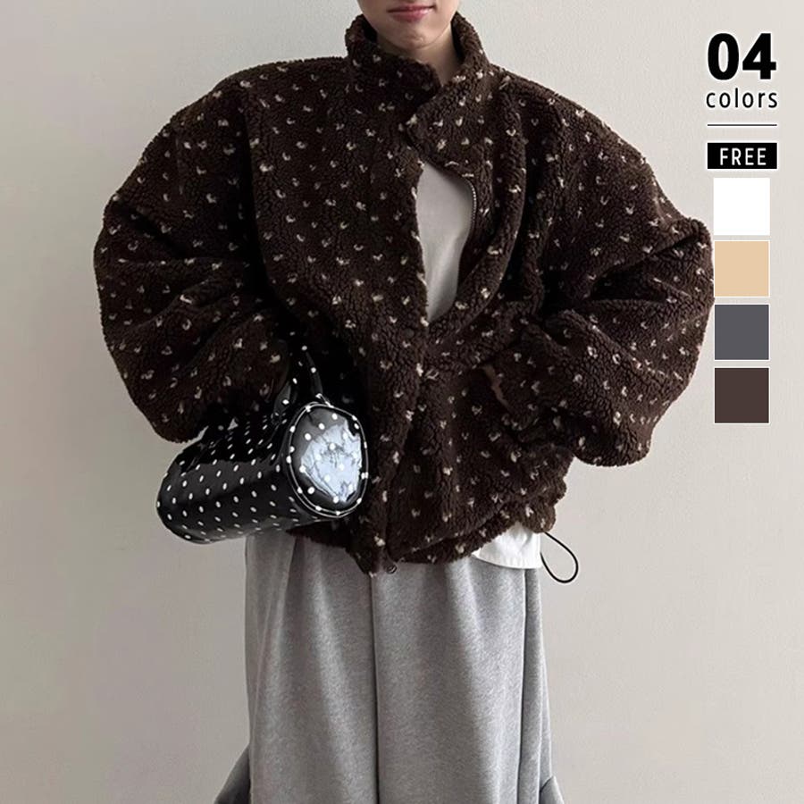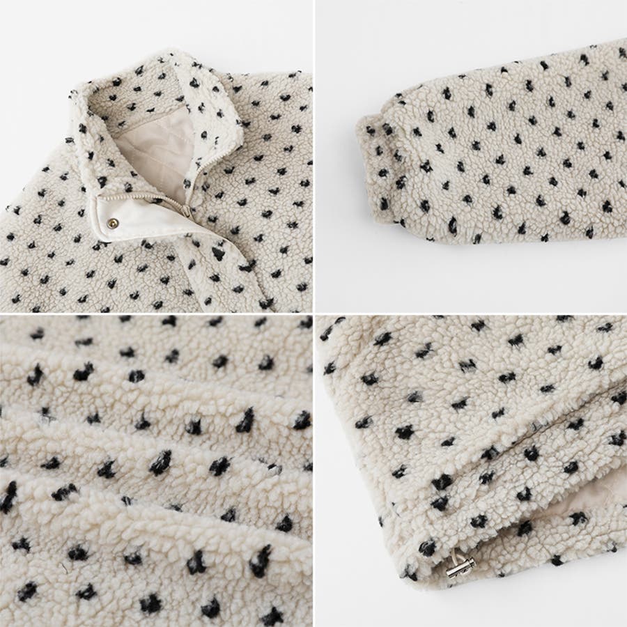 ボアジャケット ボア ブルゾン レディース アウター ドット ボアブルゾン あたたかい モコモコ スタンドカラー ドット柄 水玉 ドットボアジャケット ドロスト ボアアウター ショート丈 ポケット ジップアップ 長袖 羽織 水玉柄 ショートブルゾン ショートコート コート ショート 丈 ジップ アップ ファスナー ショートコンパクトジャケット シープボア ジャンパー 起毛 上着 羽織り 羽織もの 前開き 前あき もこもこ 暖かい 暖 温かい あたたかい あったか 暖か 防風 防寒 お出かけ おでかけ 旅行 韓国風 韓国服 韓国コーデ レトロ カジュアル ガーリー 大人 かわいい 可愛い 大人可愛い オトナ女子 大人女子 おしゃれ オシャレ クール かっこいい 母 女性 ママ ママコーデ プチプラ 高見え 高級感 トレンド ヒット 商品 おすすめ 服 ファッション コーデ コーディネート 人気 フリーサイズ フリー サイズ ライトイエロー 黄色 ベージュ グレー 灰色 ダークブラウン ブラウン 茶色 カラー 秋アウター 秋アウターレディース 秋ジャンパー 冬ジャケット 冬アウター アウター冬 アウターレディース冬 冬アウターレディース レディース秋冬 秋冬ジャケット 秋冬アウター 秋冬アウターレディース アウターレディース アウターレディース秋冬 アウターレディースボア ボアアウターレディース ボアジャケットレディース ボアブルゾンレディース ブルゾンレディース レディース韓国 大人カジュアル 新作 秋冬 秋 冬 秋服 冬服 秋物 冬物 秋用 冬用 韓国 韓国ファッション 10代 20代 30代 40代 50代 60代 70代 cocomomo ココモモ