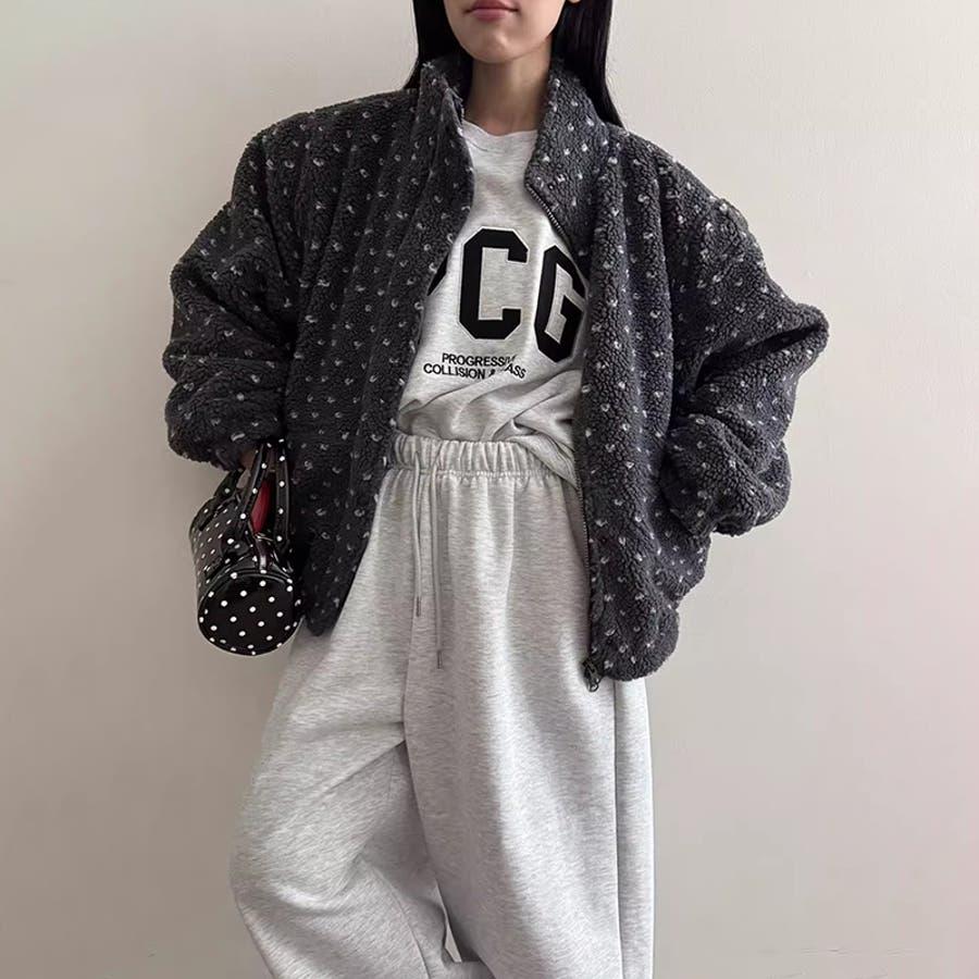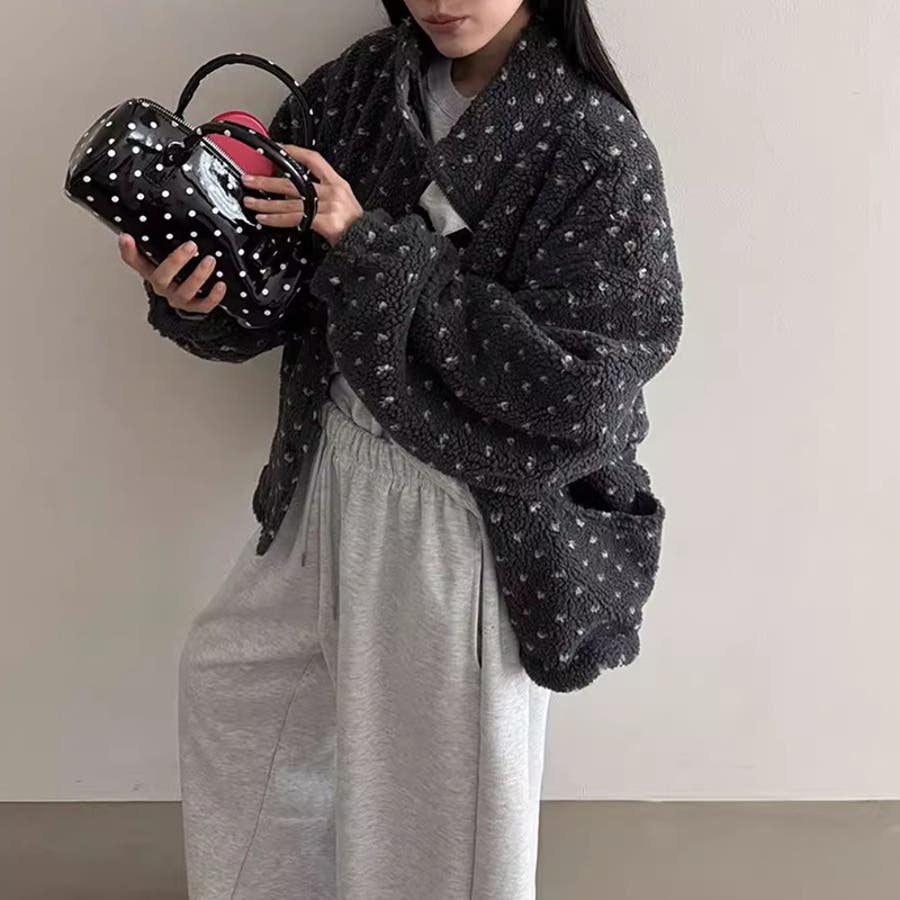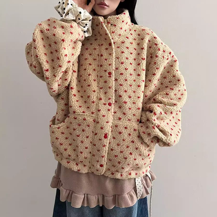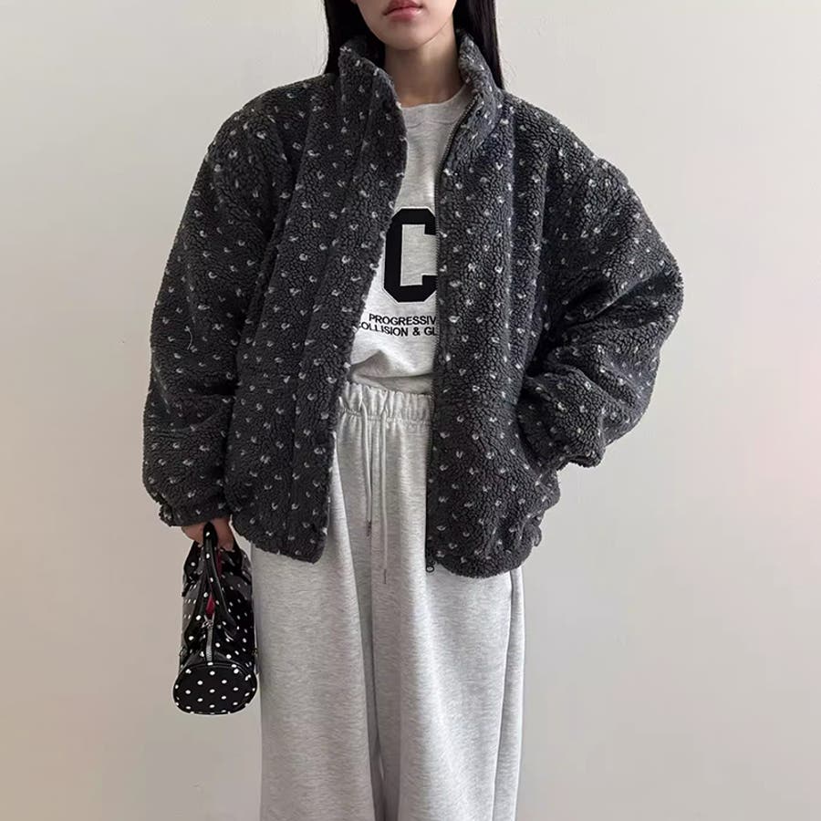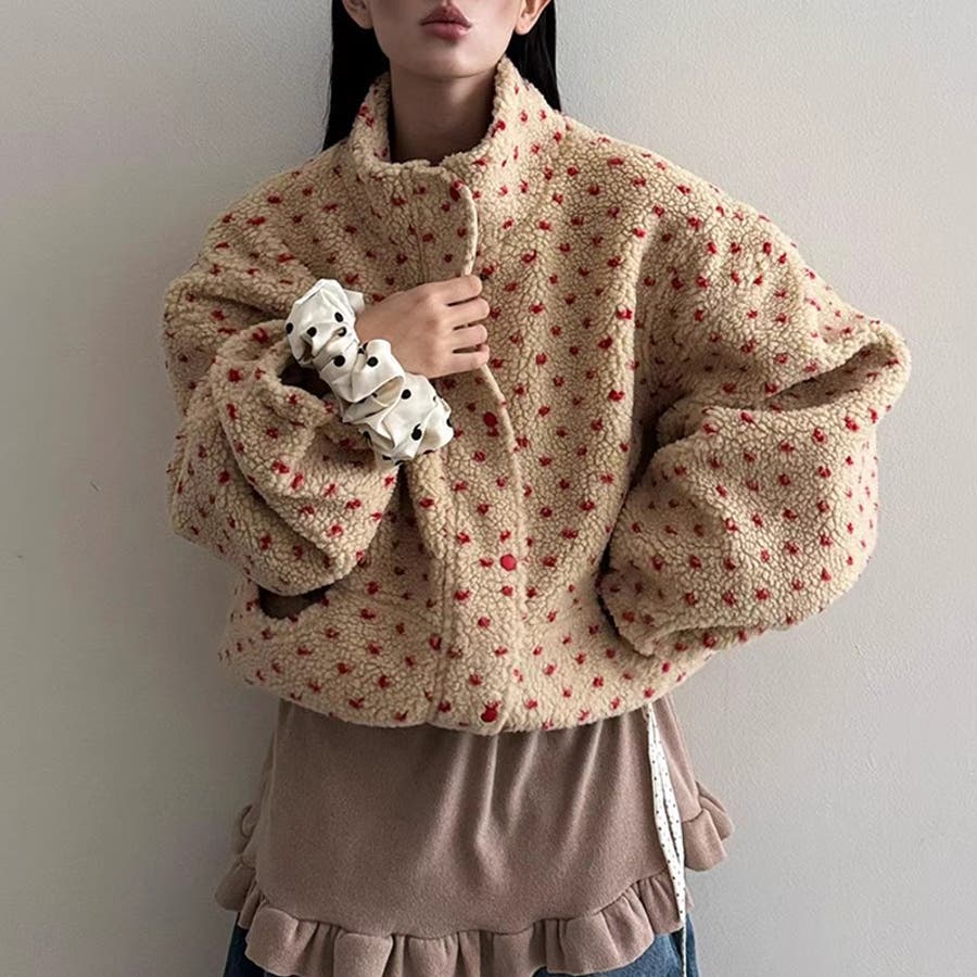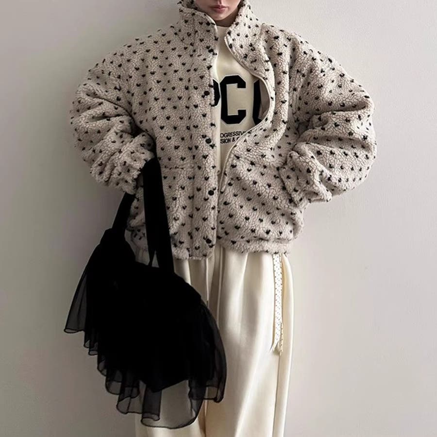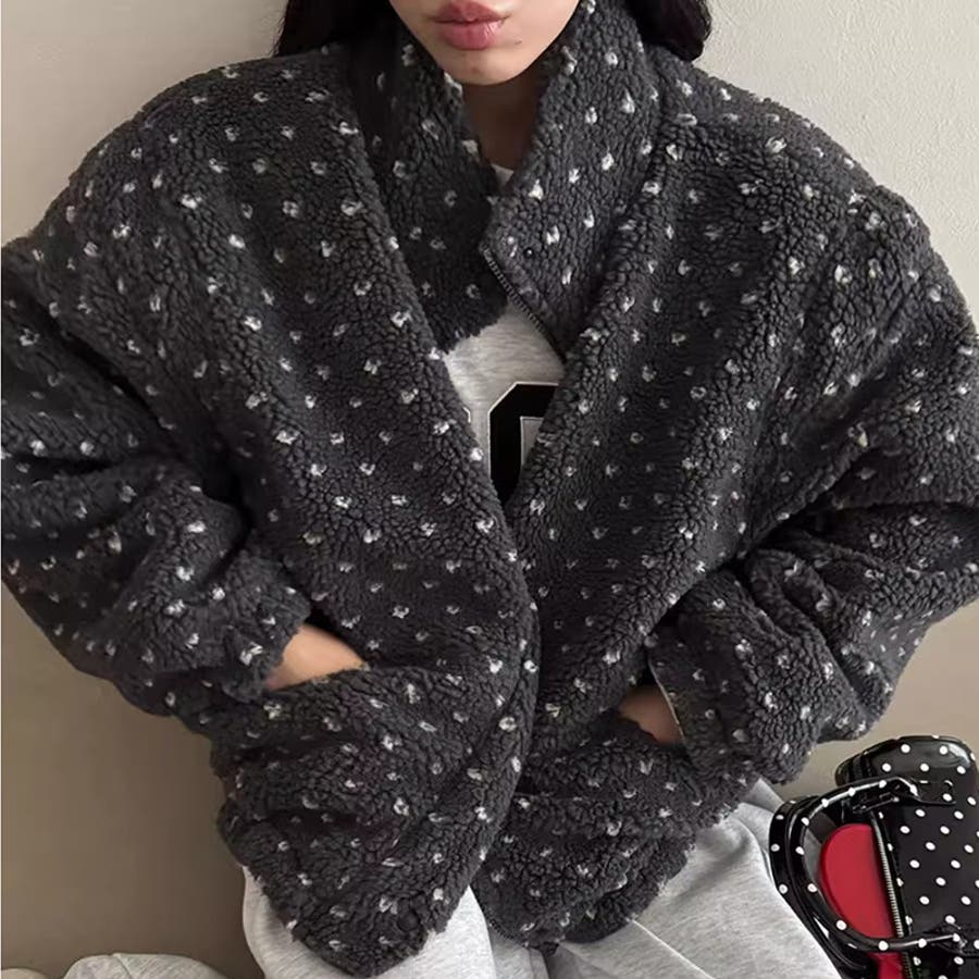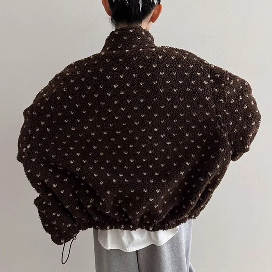 ボアジャケット ボア ブルゾン レディース アウター ドット ボアブルゾン あたたかい モコモコ スタンドカラー ドット柄 水玉 ドットボアジャケット ドロスト ボアアウター ショート丈 ポケット ジップアップ 長袖 羽織 水玉柄 ショートブルゾン ショートコート コート ショート 丈 ジップ アップ ファスナー ショートコンパクトジャケット シープボア ジャンパー 起毛 上着 羽織り 羽織もの 前開き 前あき もこもこ 暖かい 暖 温かい あたたかい あったか 暖か 防風 防寒 お出かけ おでかけ 旅行 韓国風 韓国服 韓国コーデ レトロ カジュアル ガーリー 大人 かわいい 可愛い 大人可愛い オトナ女子 大人女子 おしゃれ オシャレ クール かっこいい 母 女性 ママ ママコーデ プチプラ 高見え 高級感 トレンド ヒット 商品 おすすめ 服 ファッション コーデ コーディネート 人気 フリーサイズ フリー サイズ ライトイエロー 黄色 ベージュ グレー 灰色 ダークブラウン ブラウン 茶色 カラー 秋アウター 秋アウターレディース 秋ジャンパー 冬ジャケット 冬アウター アウター冬 アウターレディース冬 冬アウターレディース レディース秋冬 秋冬ジャケット 秋冬アウター 秋冬アウターレディース アウターレディース アウターレディース秋冬 アウターレディースボア ボアアウターレディース ボアジャケットレディース ボアブルゾンレディース ブルゾンレディース レディース韓国 大人カジュアル 新作 秋冬 秋 冬 秋服 冬服 秋物 冬物 秋用 冬用 韓国 韓国ファッション 10代 20代 30代 40代 50代 60代 70代 cocomomo ココモモ