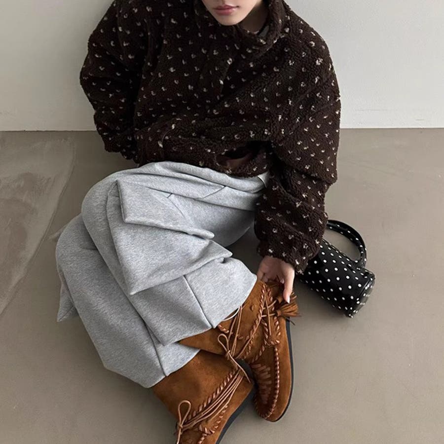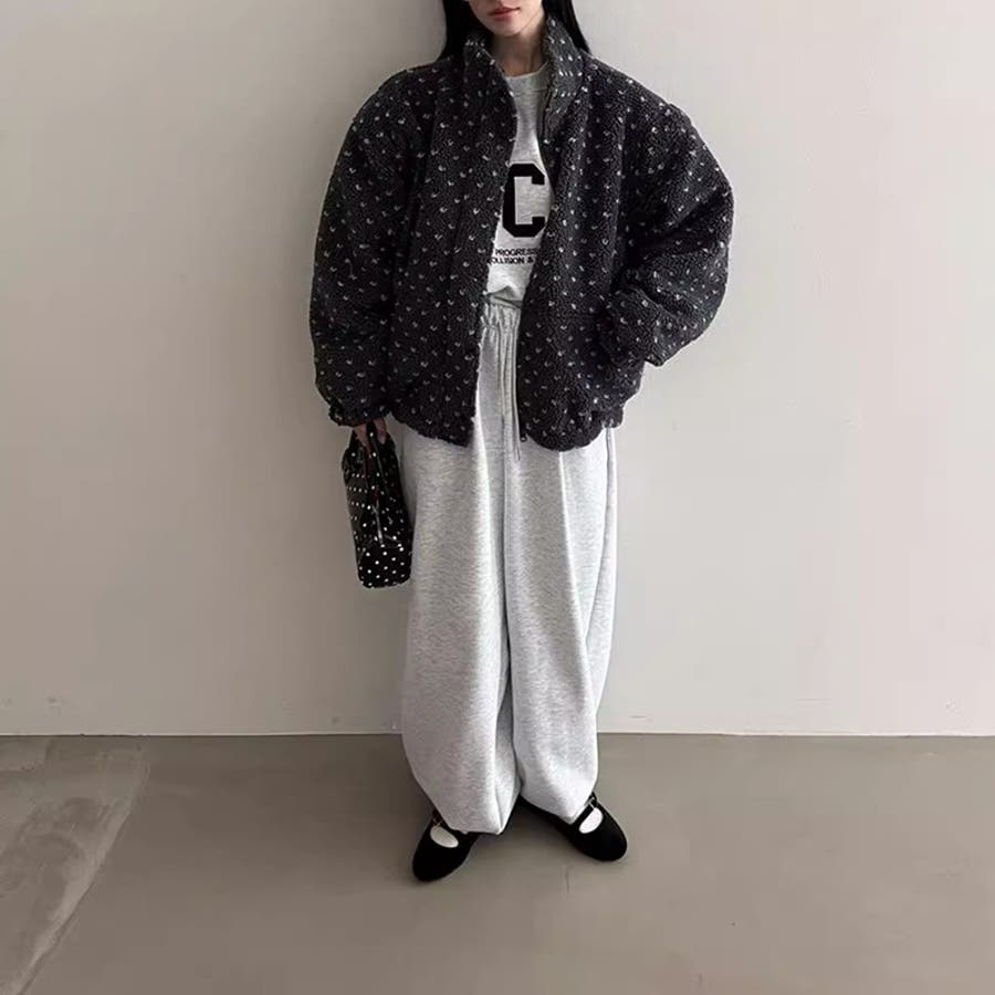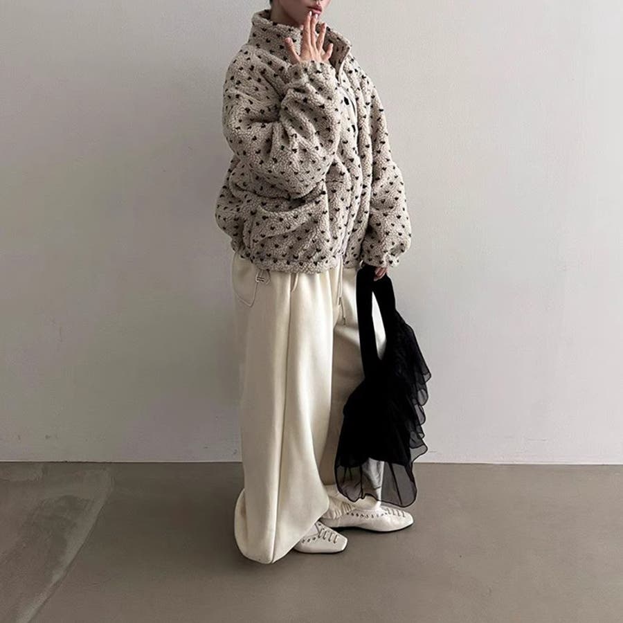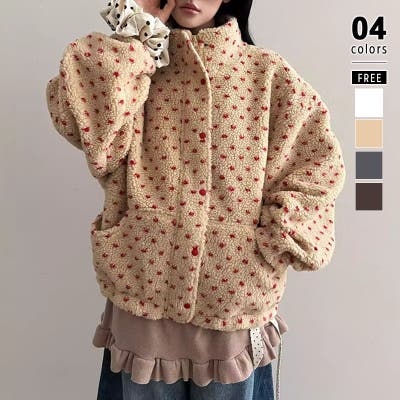 暖かなボア素材を使用した ドットボアブルゾン。 裾にはドロスト付きで シルエットの調整も自由自在。 便利なポケット付きで日常の ちょっとしたお出かけにも最適です。 フロントはジップアップ仕様で スタンドカラーで首元まで防寒し、 韓国っぽコーデにも活躍する一枚です。