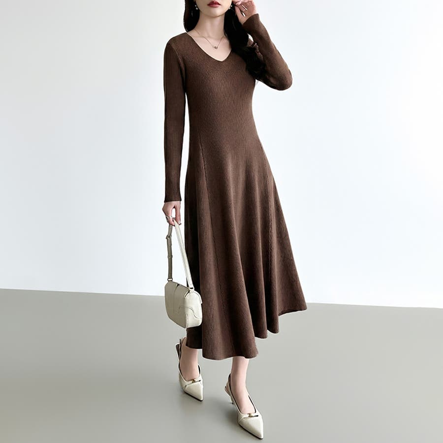 ニットワンピース フレア ワンピース 長袖 ニット レディース ロング きれいめ aライン vネック フレアワンピース ニットワンピ ロングワンピース aラインワンピース カジュアル くびれ きれいめワンピース Vネック Vネックワンピース ハイウエスト ロングワンピ ニットワンピ ロング丈 ワンピ ミモレ 丈 Aライン シンプル ロング丈ワンピース シンプルワンピース おしゃれ 無地 楽ちんワンピース 楽ちん 楽 軽い 伸縮性 着痩せ 着痩せワンピース 着痩せワンピ 細見え 袖 温かい 暖かい あたたかい あったか 長袖ワンピース 膝下 ひざ下 1枚で決まる シワになりにくい お出かけ おでかけ 旅行 オフィス オフィスカジュアル オフィスカジュアル秋冬 きれい め 綺麗 大人 かわいい 可愛い 大人可愛い オトナ女子 オシャレ 女性 女子 母 母親 ママ ママコーデ プチプラ トレンド ヒット 商品 おすすめ 服 ファッション コーデ コーディネート フリーサイズ フリー サイズ ライトブラウン ダークブラウン ブラウン 茶色 ワイン レッド 赤 ネイビー 紺 紺色 ブラック 黒 カラー 黒ワンピース 黒ワンピースレディース 赤ワンピース ネイビーワンピース 紺色ワンピース ネイビーワンピース ワンピース春 ワンピース秋 ワンピース冬 秋冬ワンピース 秋冬ワンピ ワンピース秋冬 ワンピースレディース ロングワンピースレディース 長袖ワンピース秋 長袖ワンピースレディース 長袖ワンピースロング 体型カバーワンピース 大人可愛いワンピース Aラインワンピース長袖 大人カジュアル ニットワンピース50代 きれいめワンピース秋冬 新作 秋冬 春 秋 冬 春服 秋服 冬服 秋物 冬物 春用 秋用 冬用 春物 秋物 冬物 韓国 韓国ファッション 10代 20代 30代 40代 50代 60代 70代 cocomomo ココモモ