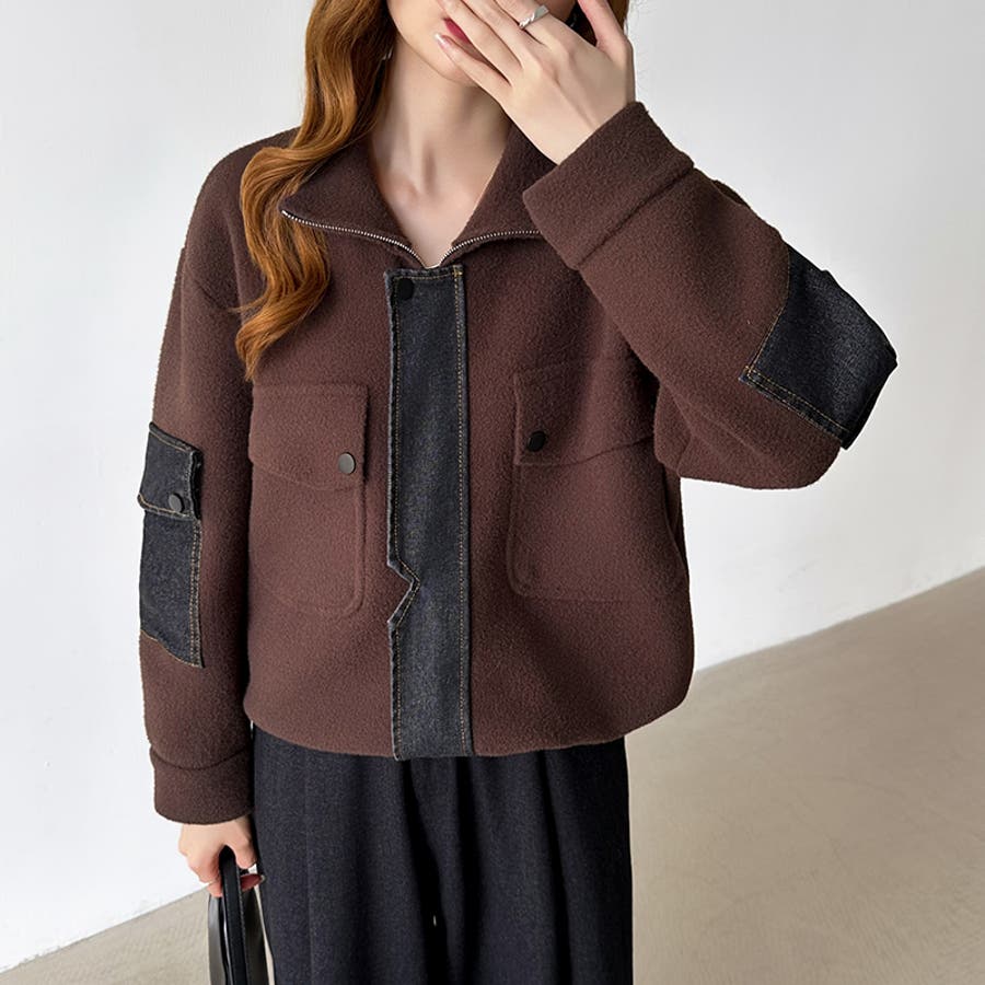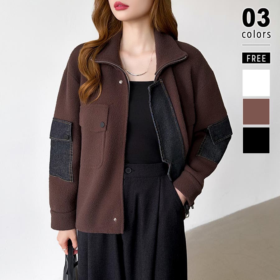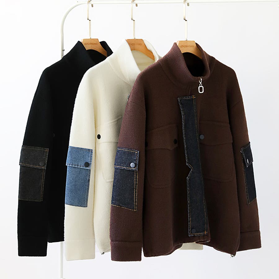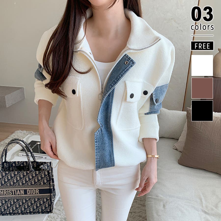 ブルゾン デニムドッキング 切り替え デニム アウター レディース ボア 異素材 ドッキング ジャケット ニット ポケット ドロスト パッチワーク ジップアップ ジップアップブルゾン デニム切替 裾 裾ドローコード 裾ドロスト ジップ アップ ファスナー ジップブルゾン ボアブルゾン メルトン ハイネック ライトアウター ショート ショート丈 丈 クロップド クロップド丈 羽織り フードなし ハイネック ハイネックアウター 長袖 暖かい 羽織 羽織りもの tops 着回し 無地 前開き 暖 温かい 暖か あったかい あったか あたたかい おでかけ お出かけ 旅行 カジュアル アメカジ 韓国風 韓国服 大人 大人可愛い 大人かわいい かわいい 可愛い 大人カジュアル きれいめ おしゃれ オシャレ 女性 プチプラ 高見え トレンド ヒット 商品 おすすめ 服 服装 ファッション コーデ コーディネート ホワイト 白 ダークブラウン ブラウン 茶色 ブラック 黒 カラー レディース秋冬 レディース秋 レディース冬 レディース秋物 羽織りものレディース トップスレディース トップスレディース長袖 レディーストップス 長袖レディース 二ットレディース ニットカーディガンレディース アウターレディース秋 アウターレディース冬 アウターレディース ニットブルゾンレディース ボアブルゾンレディース 新作 秋冬 秋 冬 秋服 冬服 秋物 冬物 秋用 冬用 韓国 韓国ファッション 10代 20代 30代 40代 50代 60代 70代 cocomomo ココモモ