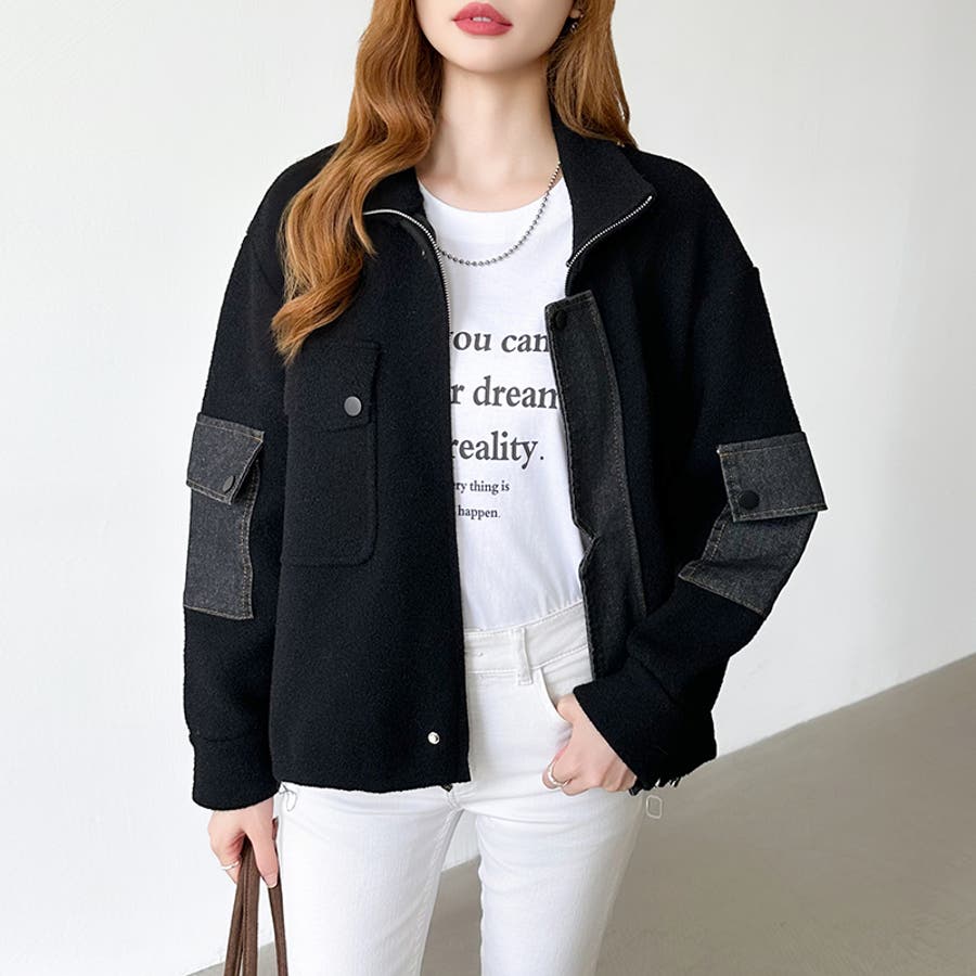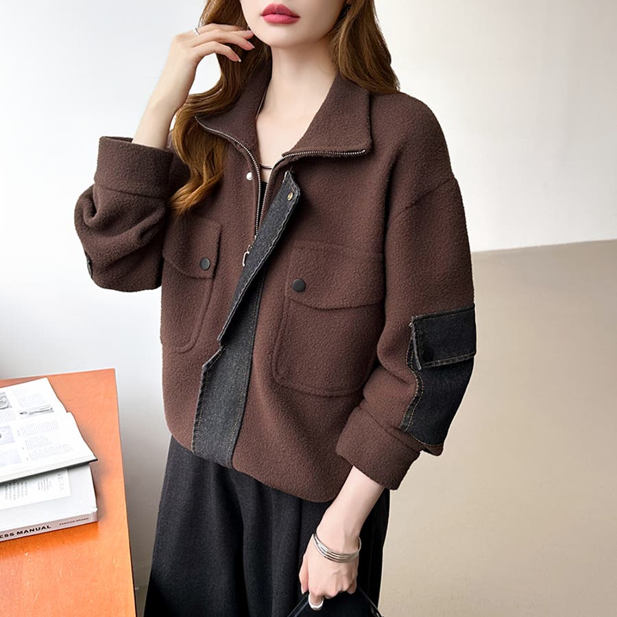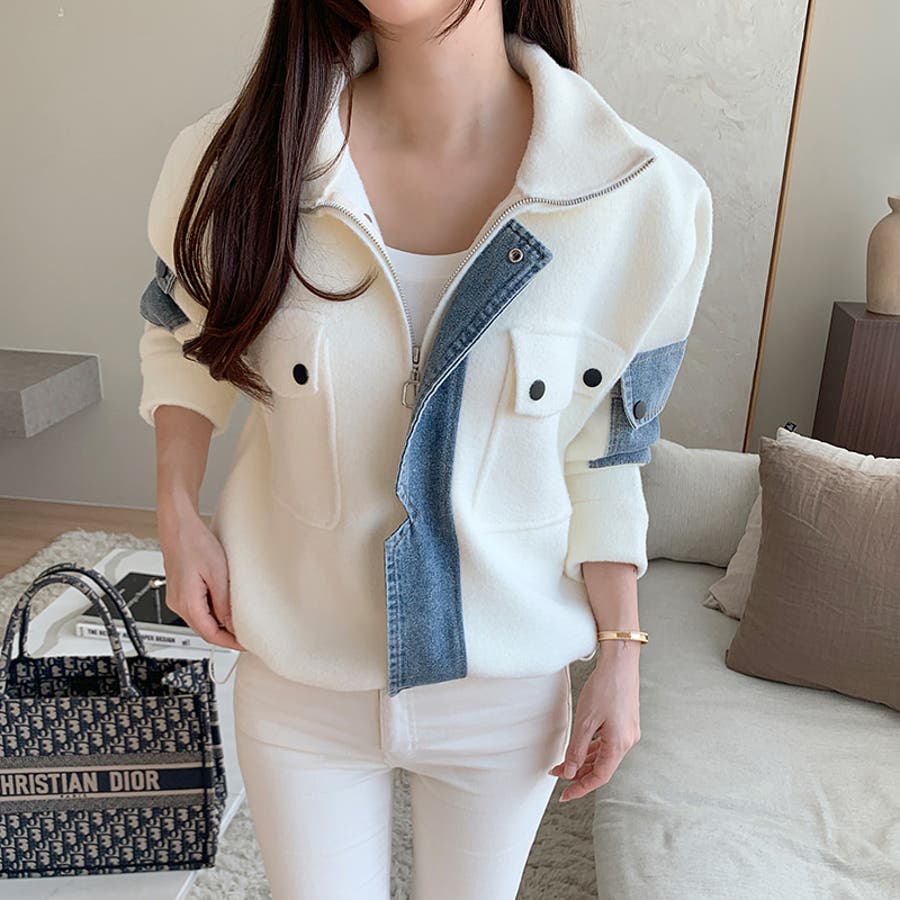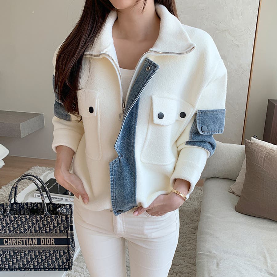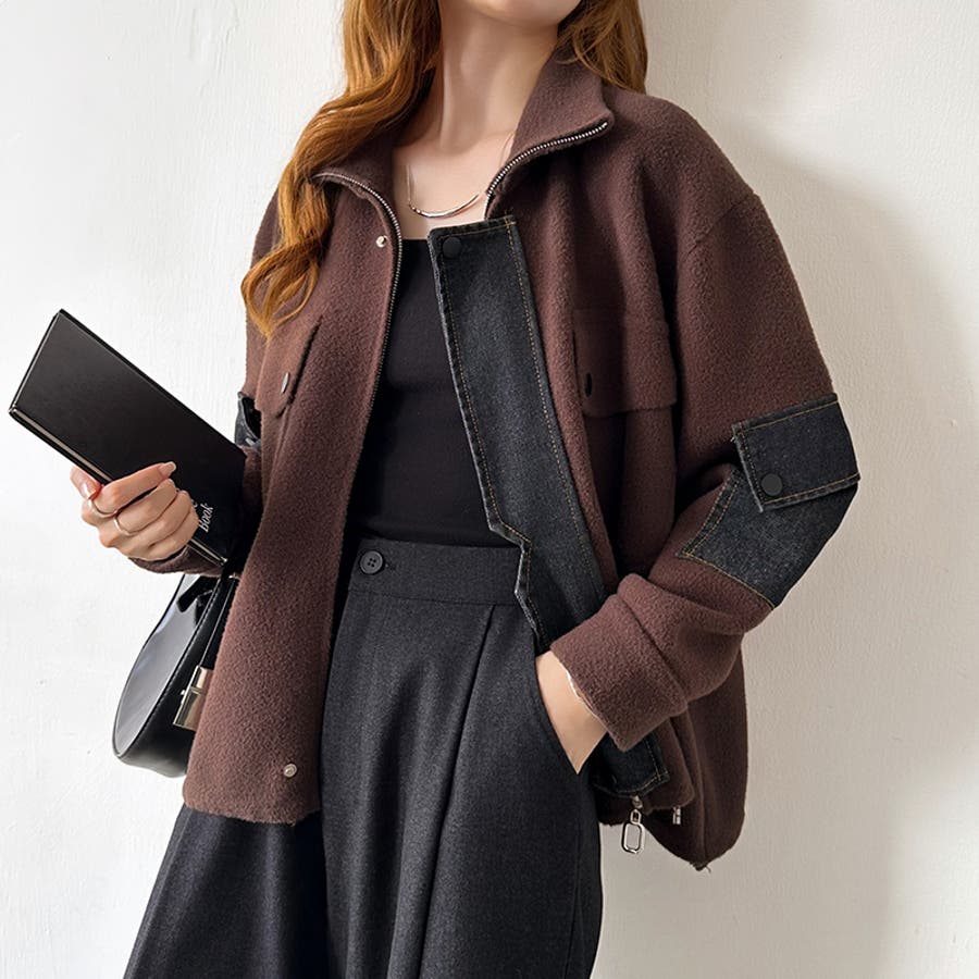 ブルゾン デニムドッキング 切り替え デニム アウター レディース ボア 異素材 ドッキング ジャケット ニット ポケット ドロスト パッチワーク ジップアップ ジップアップブルゾン デニム切替 裾 裾ドローコード 裾ドロスト ジップ アップ ファスナー ジップブルゾン ボアブルゾン メルトン ハイネック ライトアウター ショート ショート丈 丈 クロップド クロップド丈 羽織り フードなし ハイネック ハイネックアウター 長袖 暖かい 羽織 羽織りもの tops 着回し 無地 前開き 暖 温かい 暖か あったかい あったか あたたかい おでかけ お出かけ 旅行 カジュアル アメカジ 韓国風 韓国服 大人 大人可愛い 大人かわいい かわいい 可愛い 大人カジュアル きれいめ おしゃれ オシャレ 女性 プチプラ 高見え トレンド ヒット 商品 おすすめ 服 服装 ファッション コーデ コーディネート ホワイト 白 ダークブラウン ブラウン 茶色 ブラック 黒 カラー レディース秋冬 レディース秋 レディース冬 レディース秋物 羽織りものレディース トップスレディース トップスレディース長袖 レディーストップス 長袖レディース 二ットレディース ニットカーディガンレディース アウターレディース秋 アウターレディース冬 アウターレディース ニットブルゾンレディース ボアブルゾンレディース 新作 秋冬 秋 冬 秋服 冬服 秋物 冬物 秋用 冬用 韓国 韓国ファッション 10代 20代 30代 40代 50代 60代 70代 cocomomo ココモモ