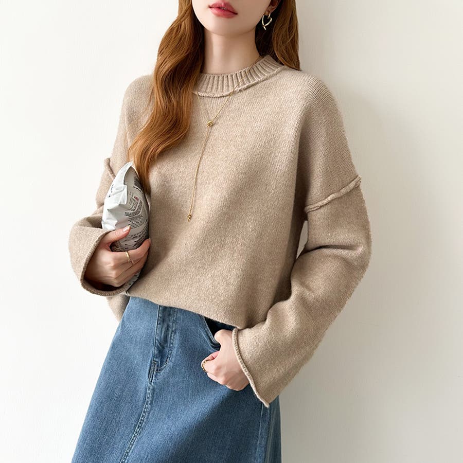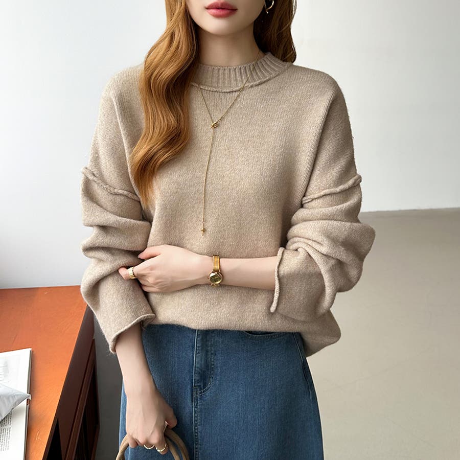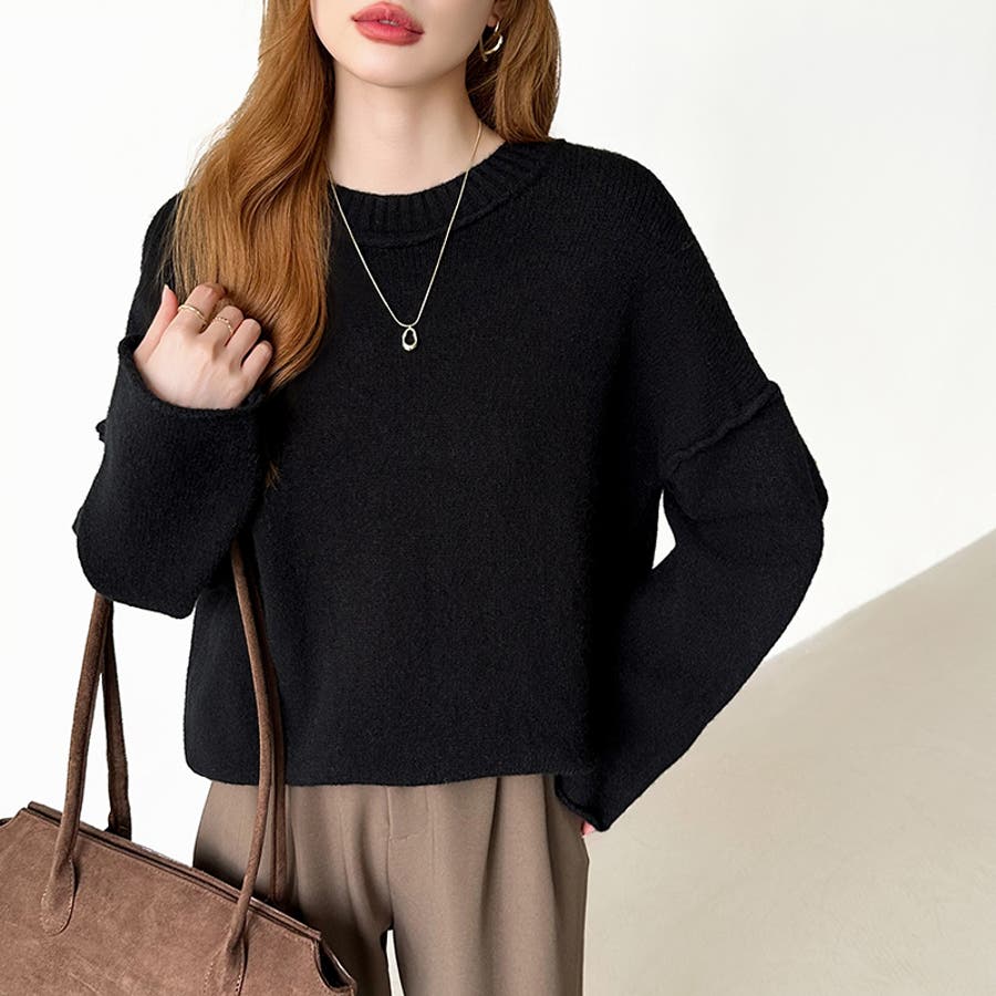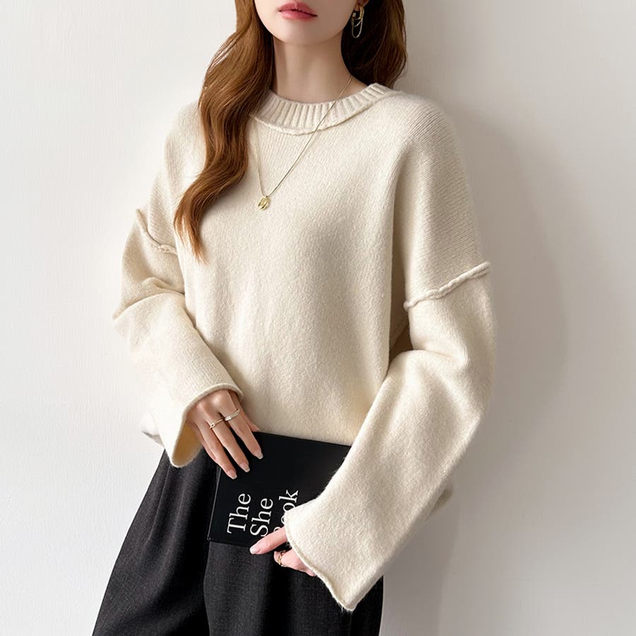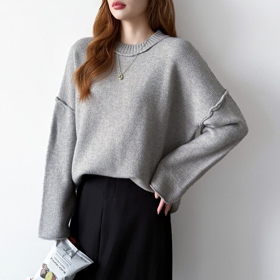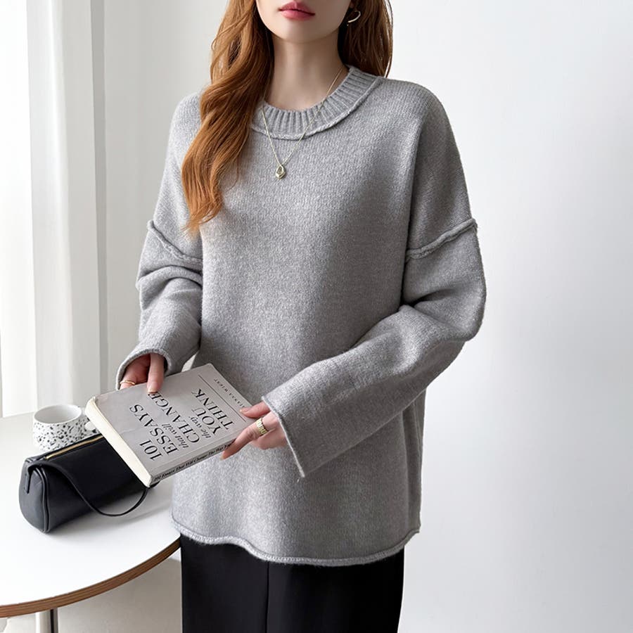 肩から袖にかけて入った 切替ラインがアクセントを添える シームラインニット。 ゆったりシルエットで、 抜け感のある大人カジュアルを 楽しめる一枚。 ヒップにかかる丈感でパンツや スカートどちらにも合わせやすい 万能アイテムです。
