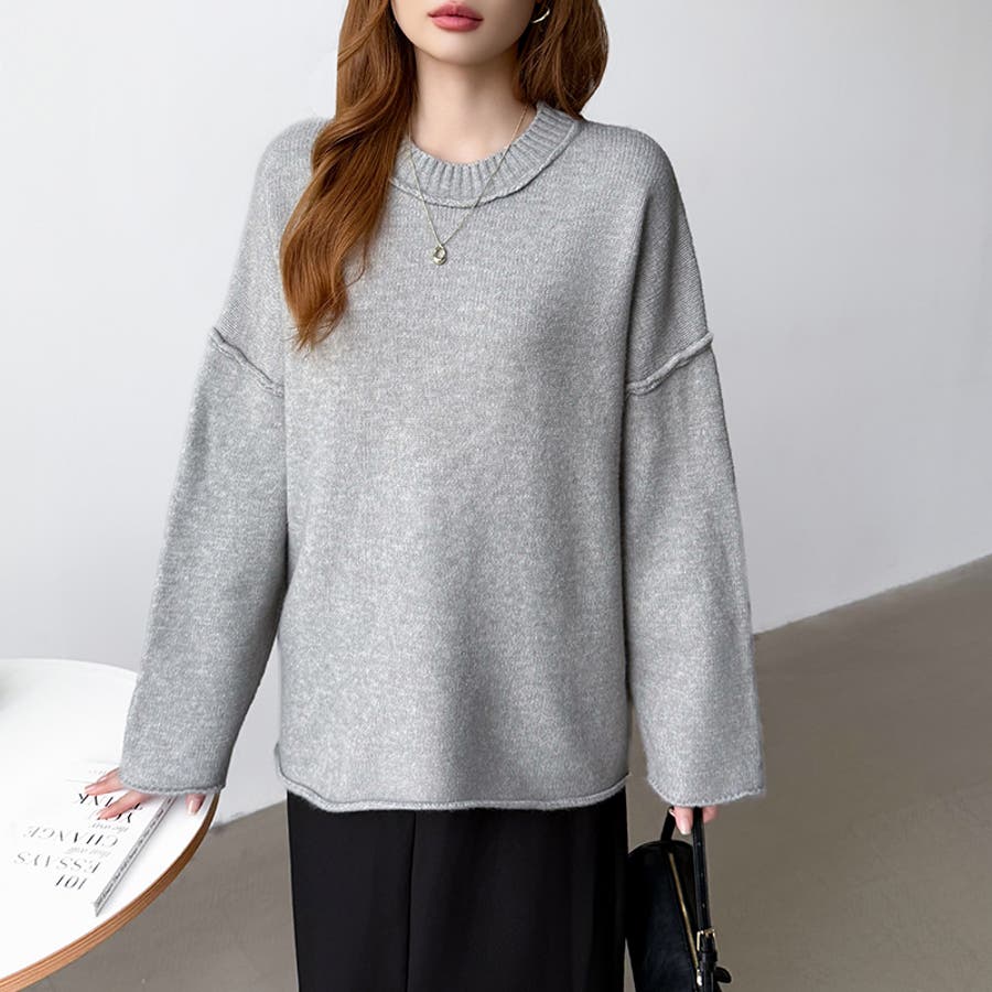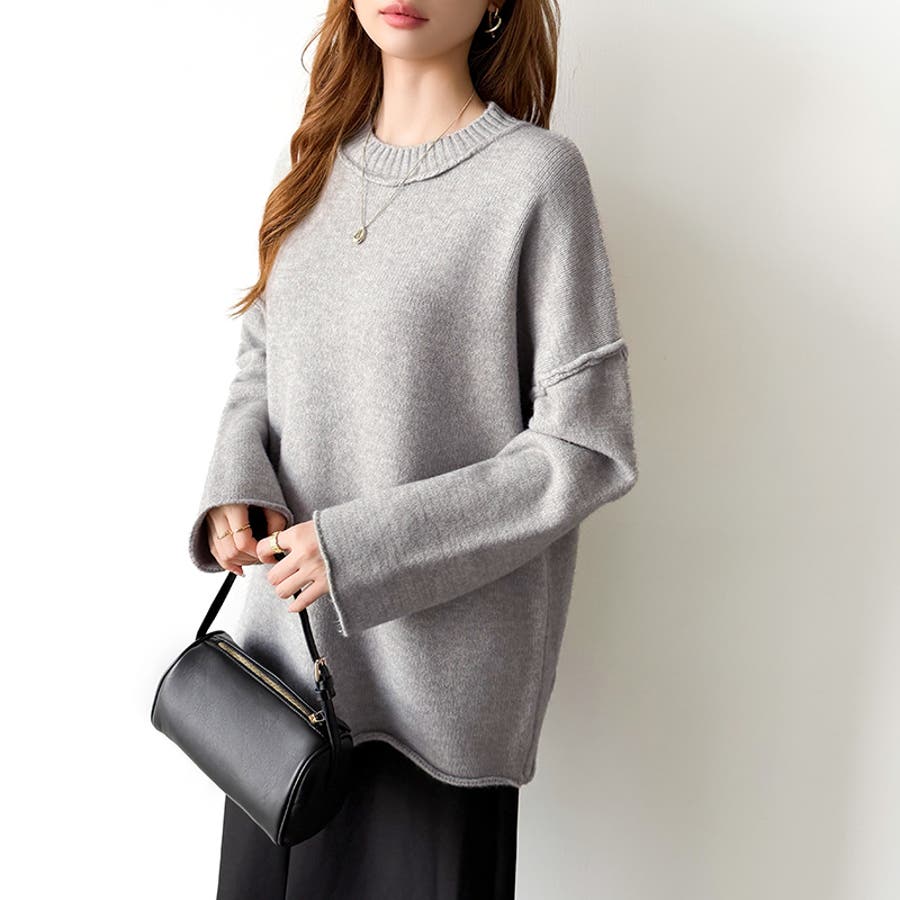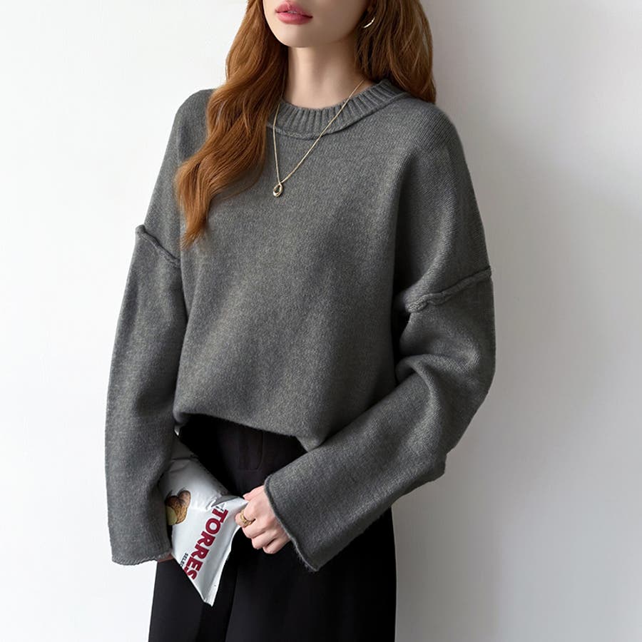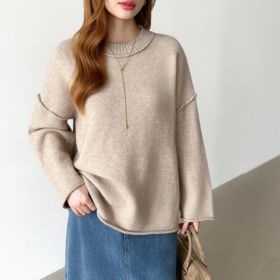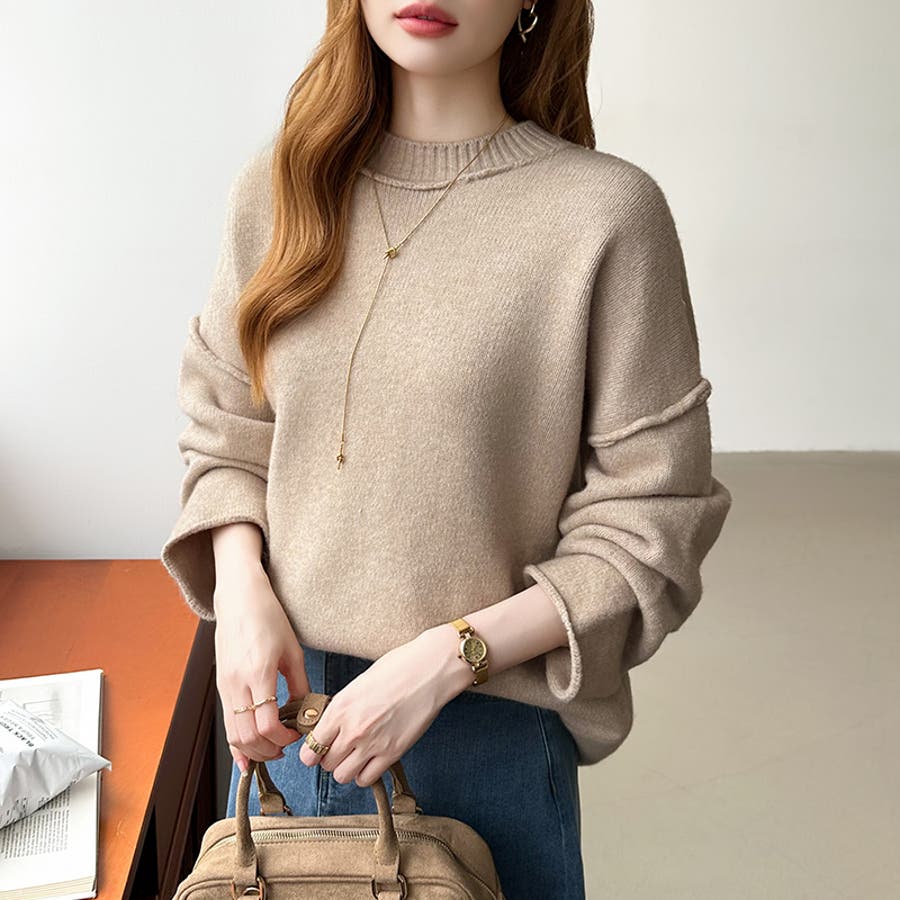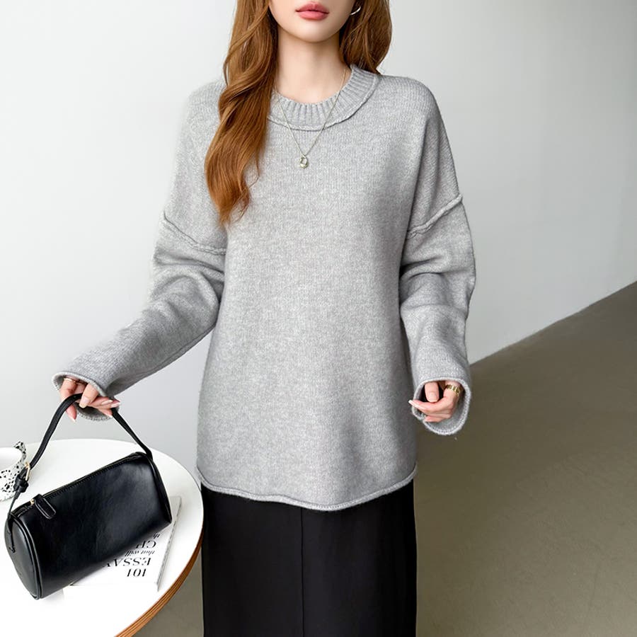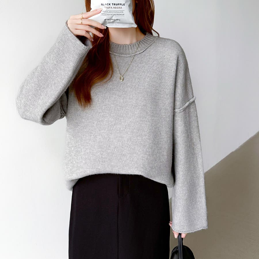 肩から袖にかけて入った 切替ラインがアクセントを添える シームラインニット。 ゆったりシルエットで、 抜け感のある大人カジュアルを 楽しめる一枚。 ヒップにかかる丈感でパンツや スカートどちらにも合わせやすい 万能アイテムです。