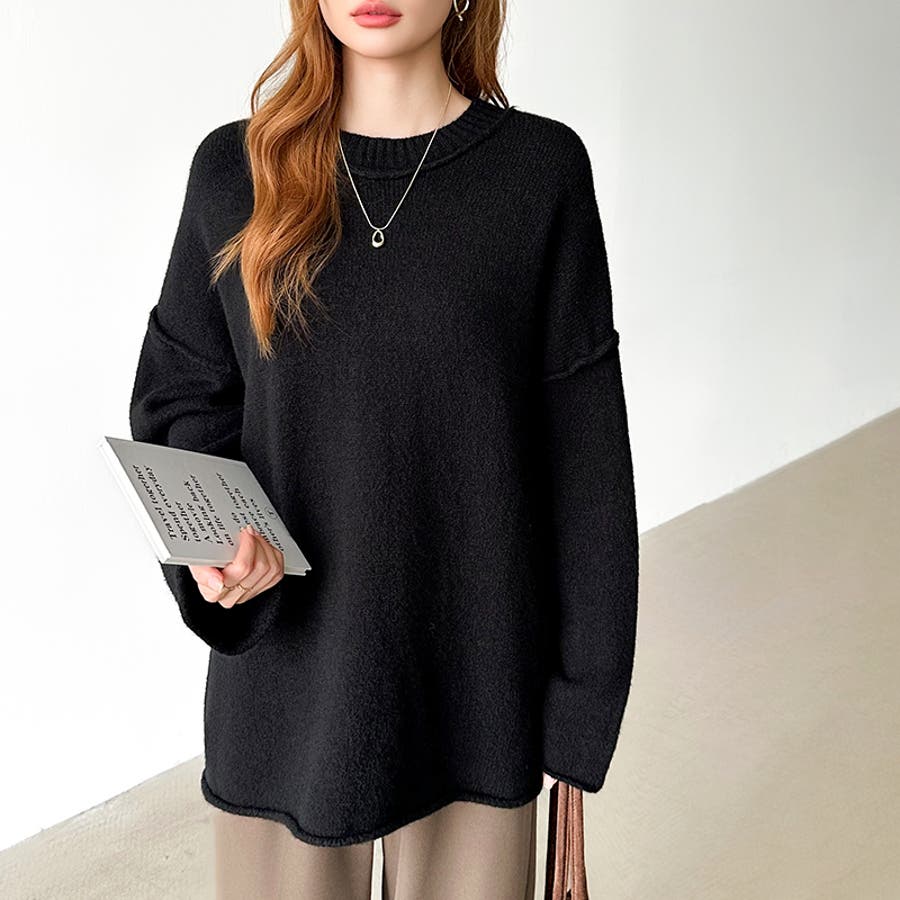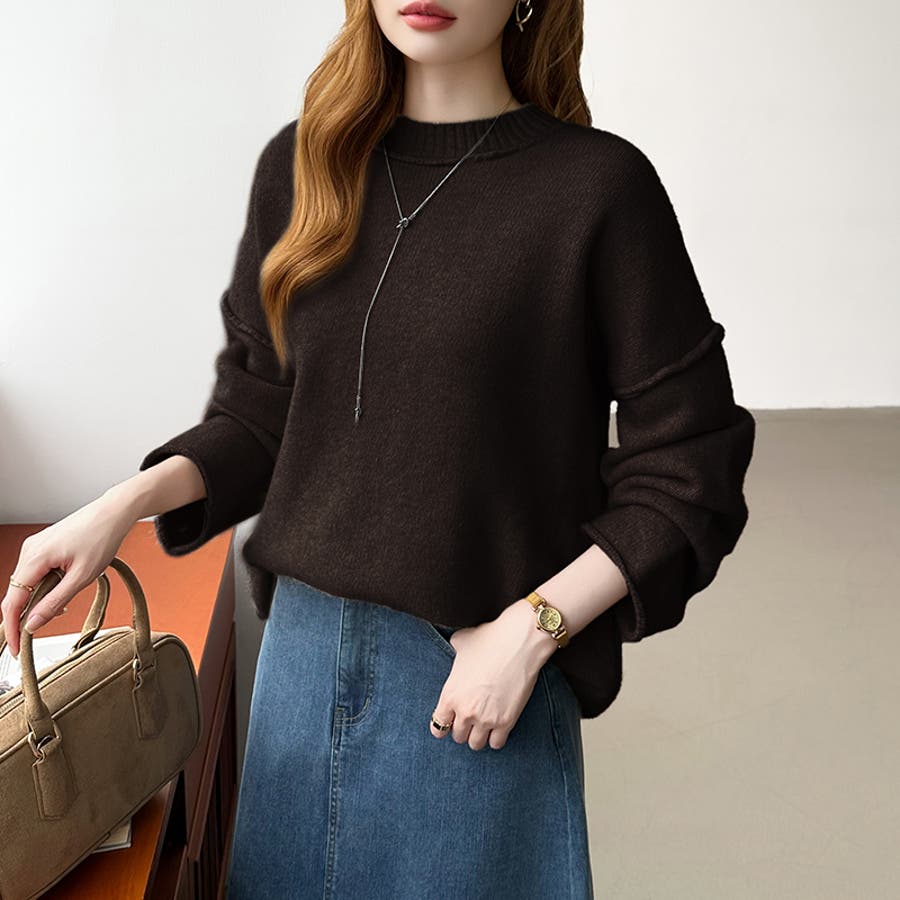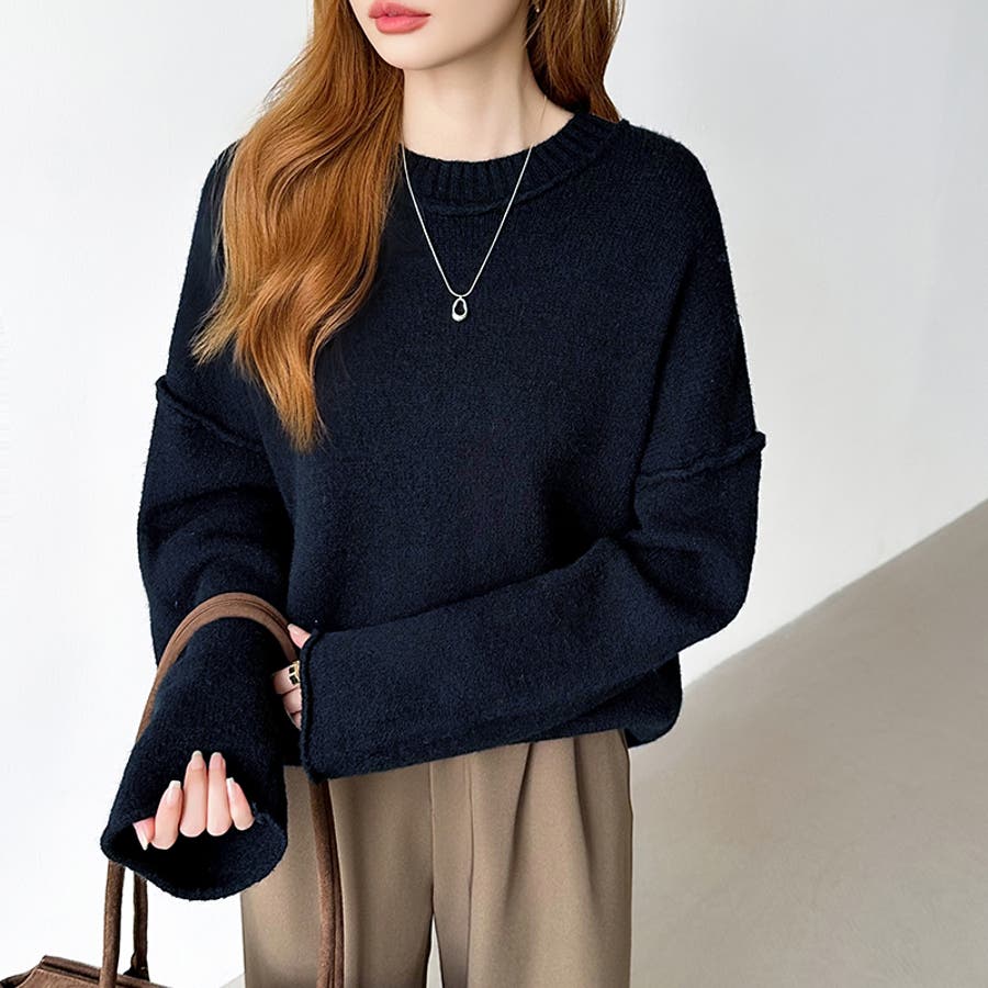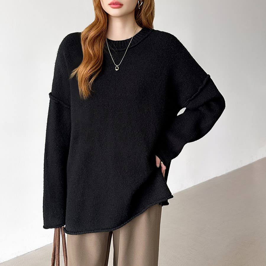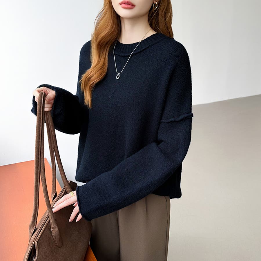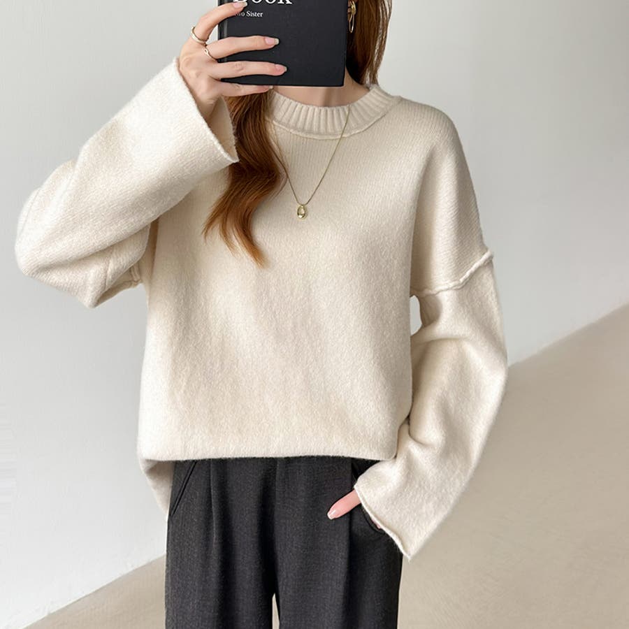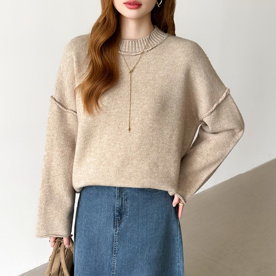 肩から袖にかけて入った 切替ラインがアクセントを添える シームラインニット。 ゆったりシルエットで、 抜け感のある大人カジュアルを 楽しめる一枚。 ヒップにかかる丈感でパンツや スカートどちらにも合わせやすい 万能アイテムです。
