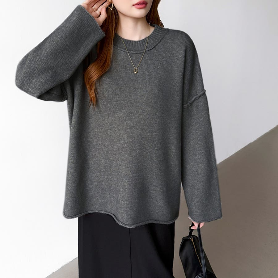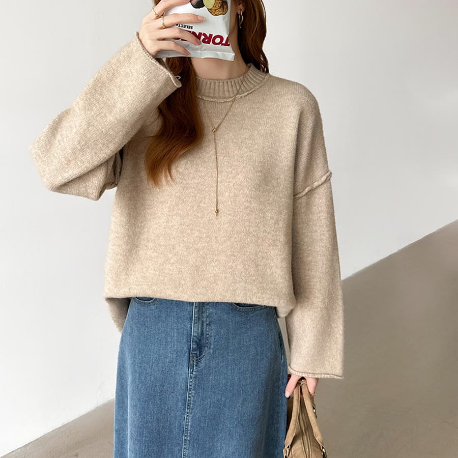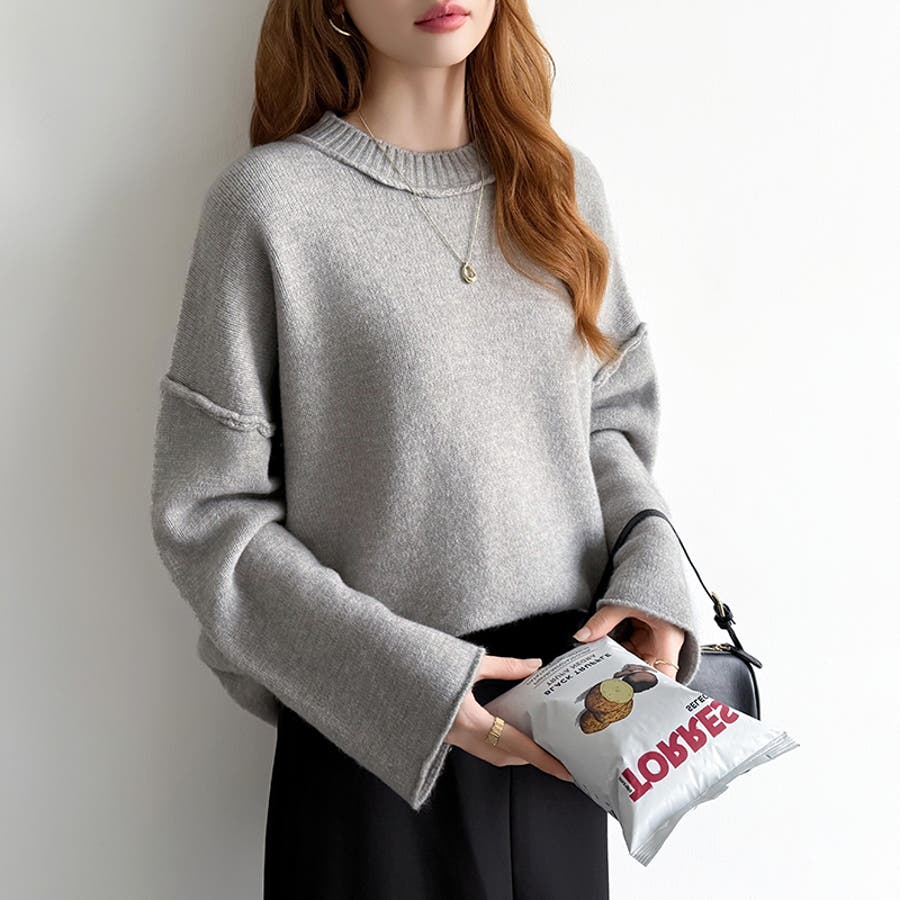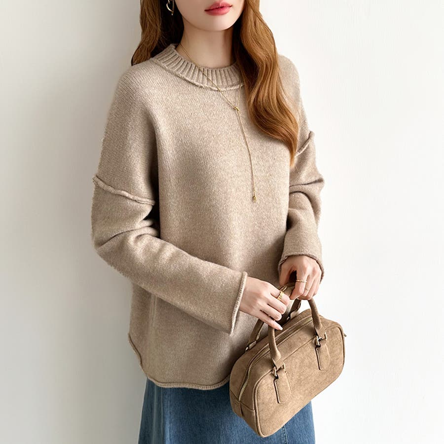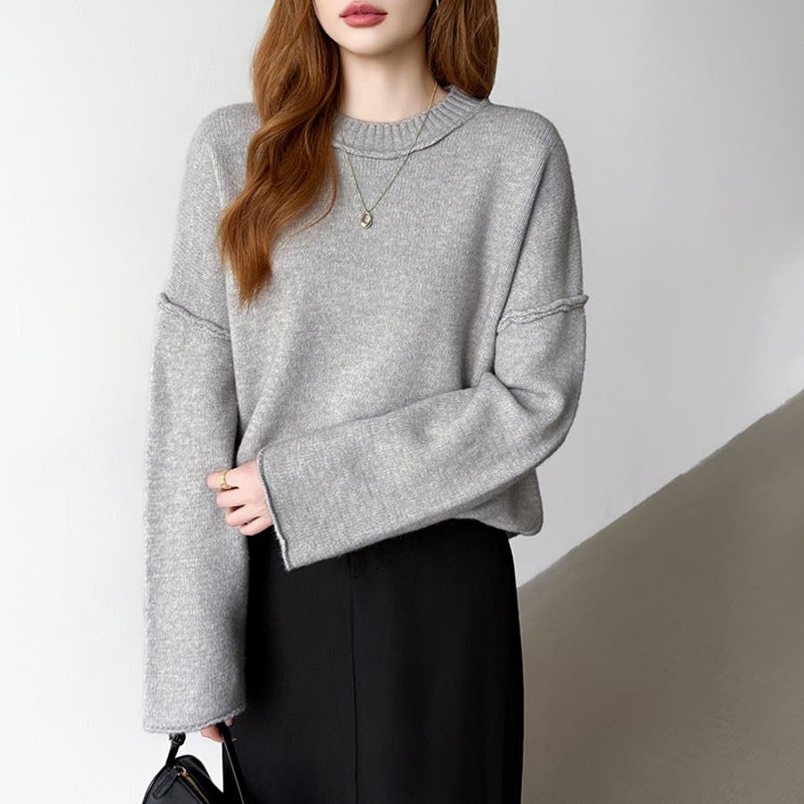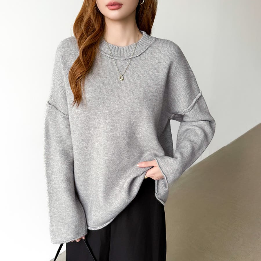 肩から袖にかけて入った 切替ラインがアクセントを添える シームラインニット。 ゆったりシルエットで、 抜け感のある大人カジュアルを 楽しめる一枚。 ヒップにかかる丈感でパンツや スカートどちらにも合わせやすい 万能アイテムです。