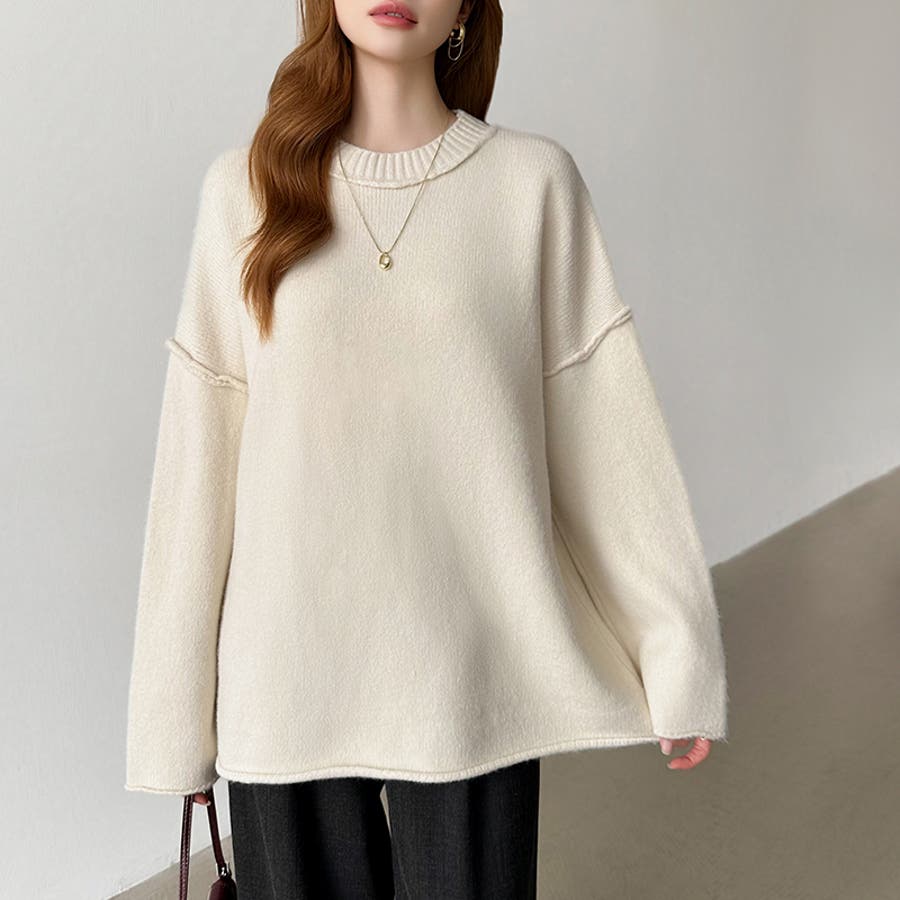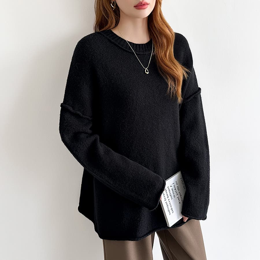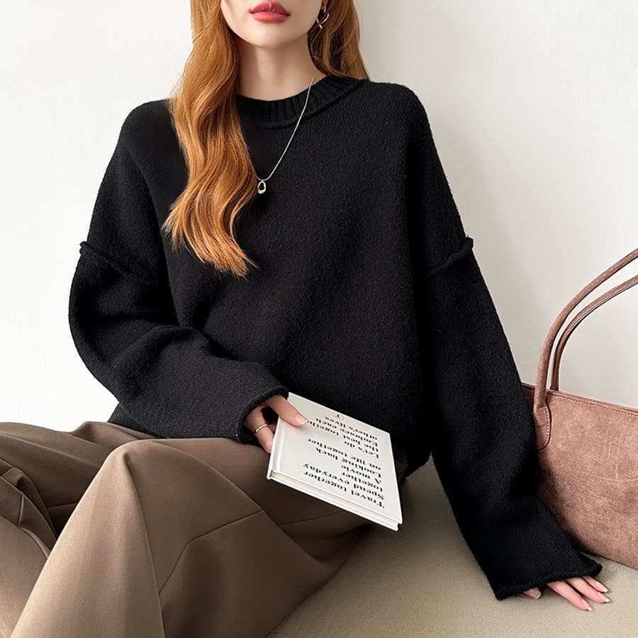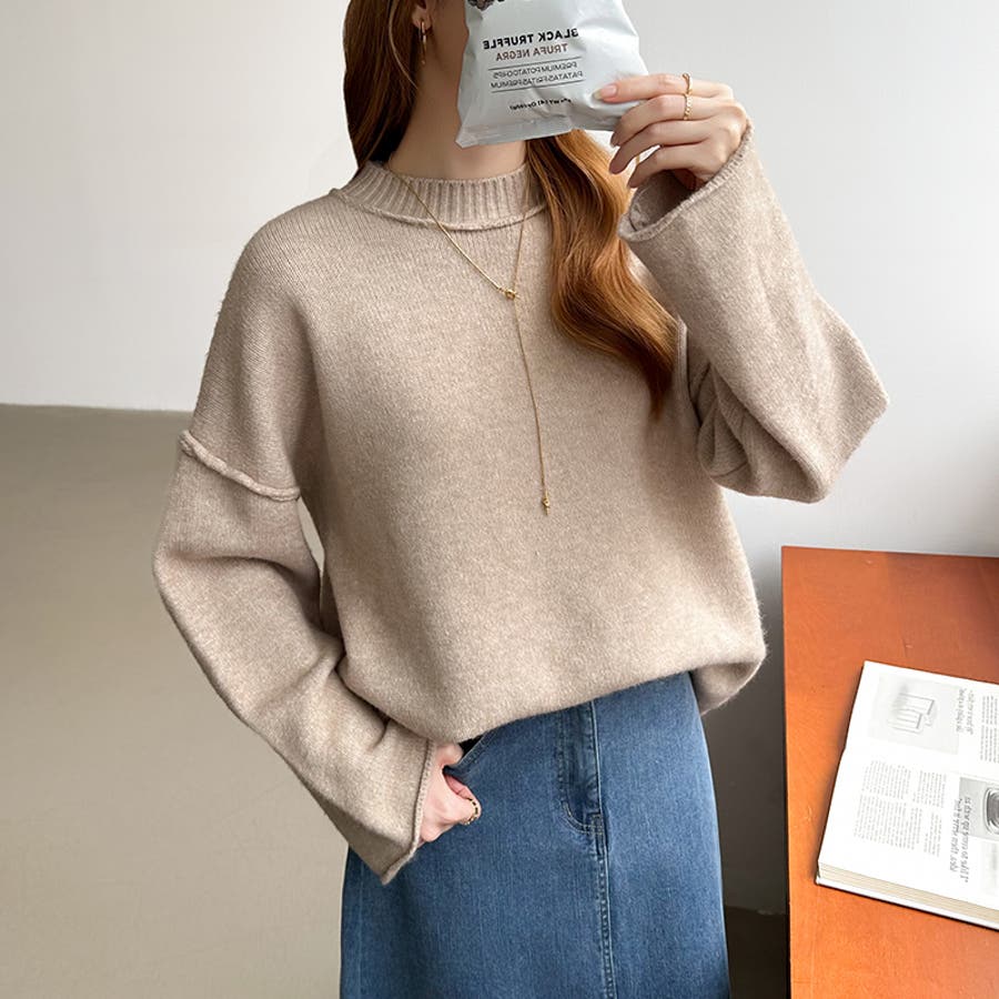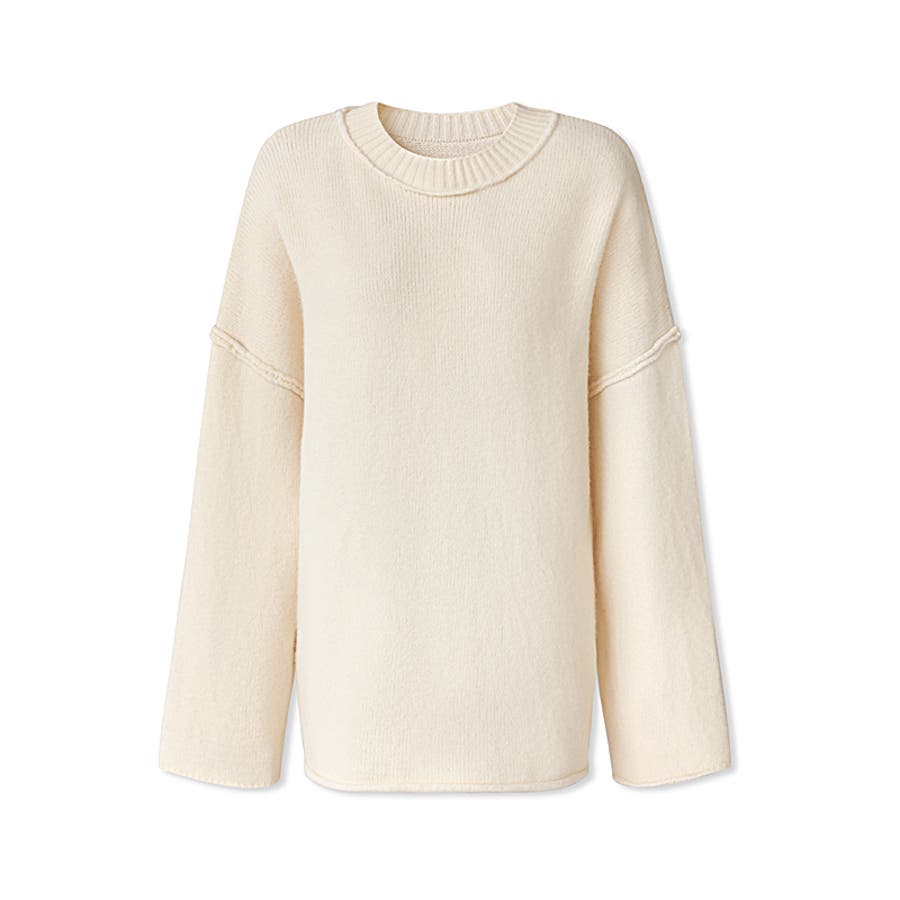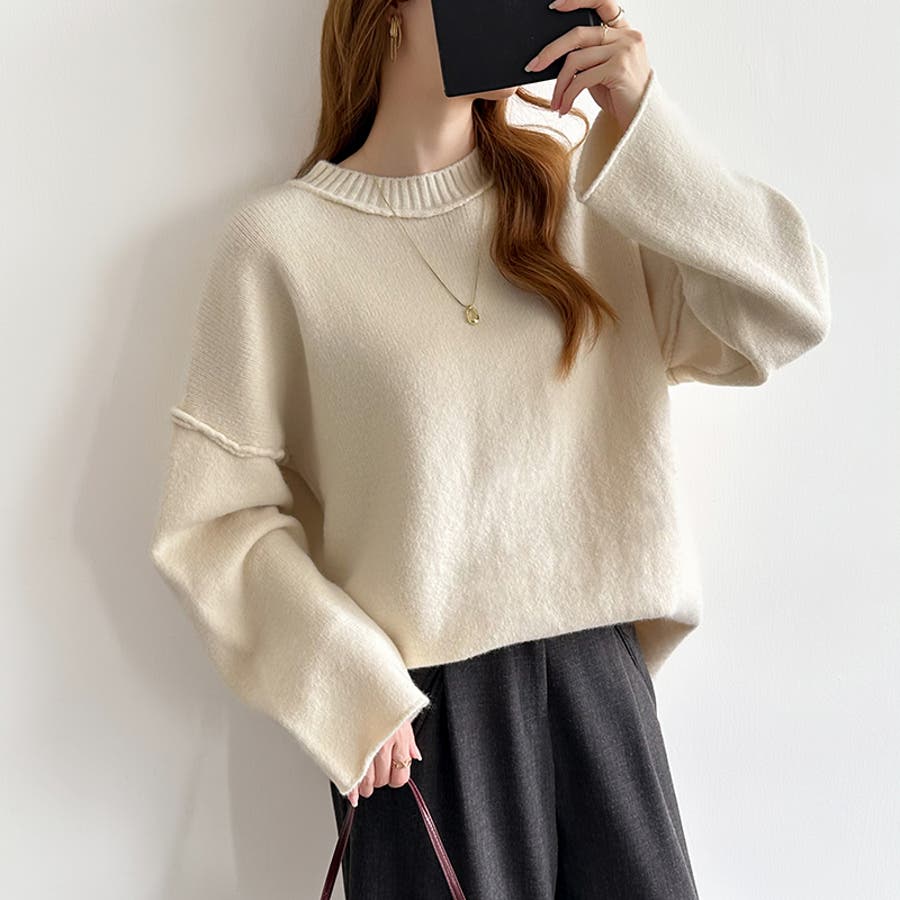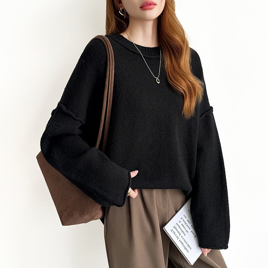 肩から袖にかけて入った 切替ラインがアクセントを添える シームラインニット。 ゆったりシルエットで、 抜け感のある大人カジュアルを 楽しめる一枚。 ヒップにかかる丈感でパンツや スカートどちらにも合わせやすい 万能アイテムです。