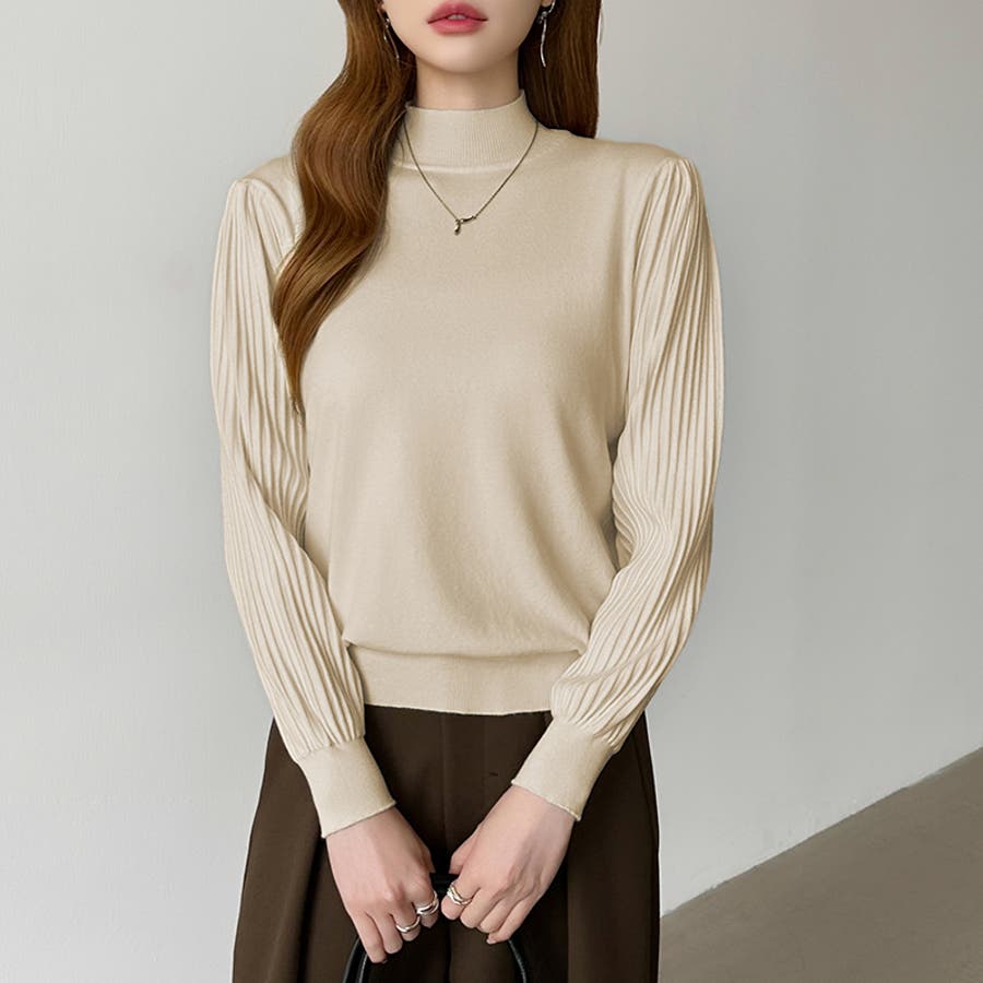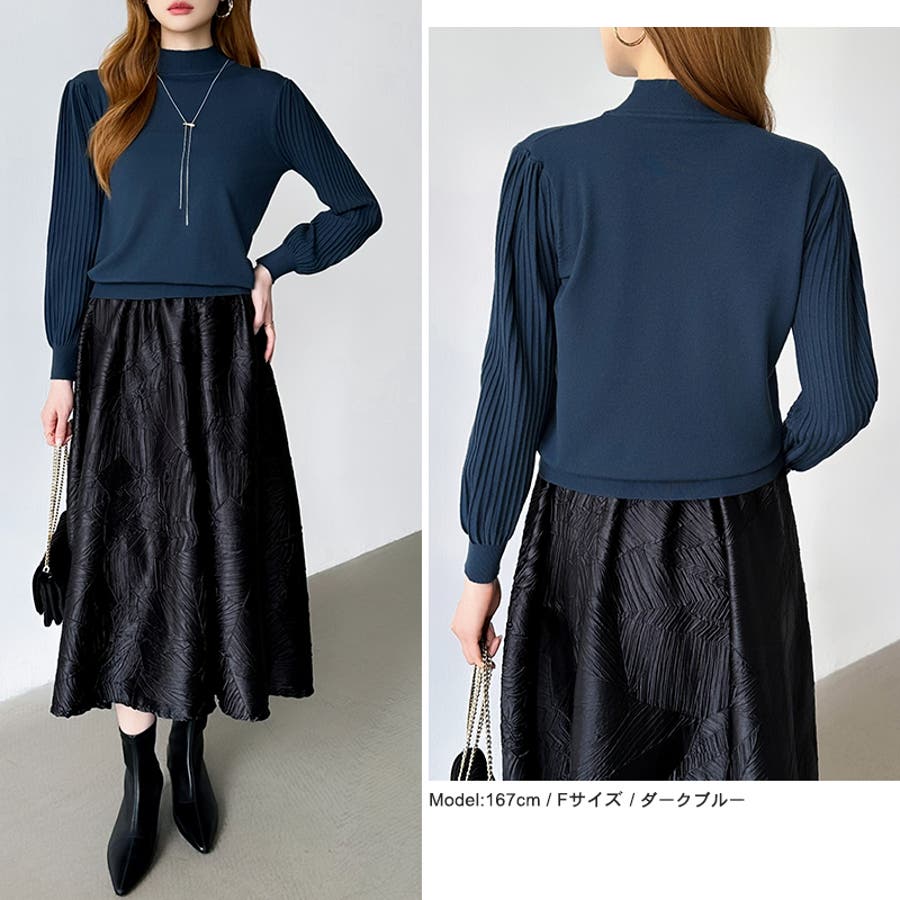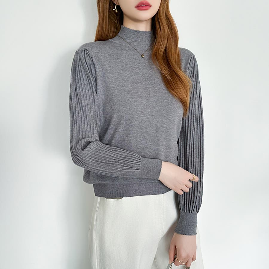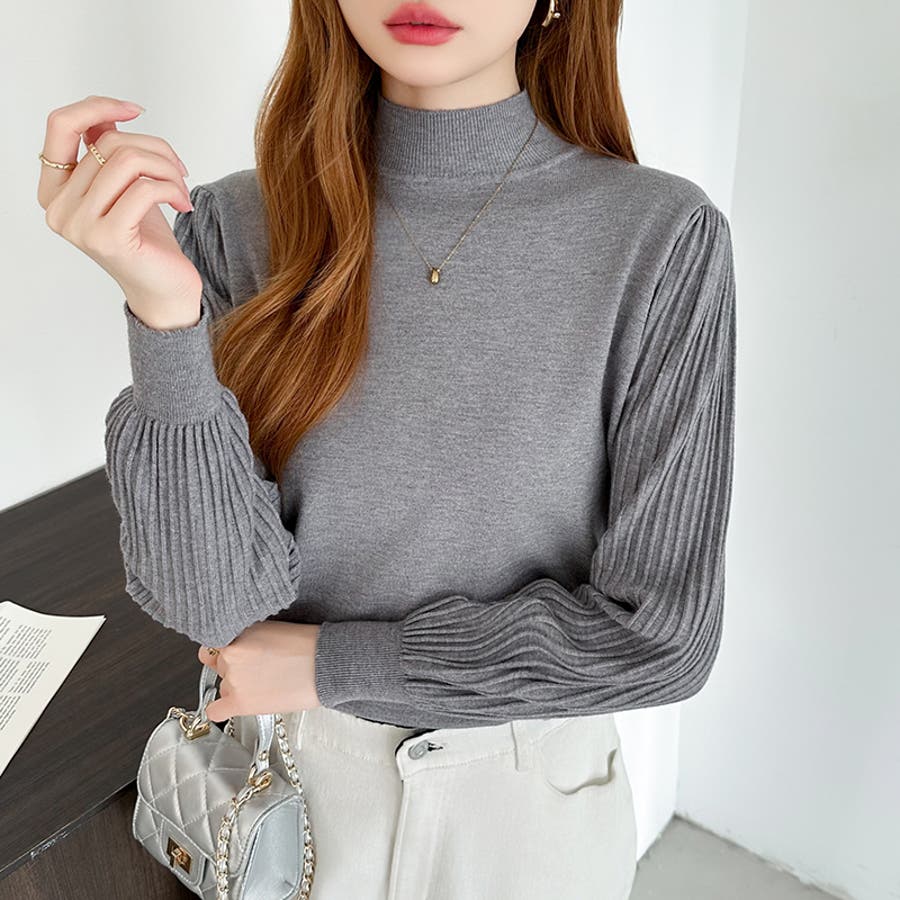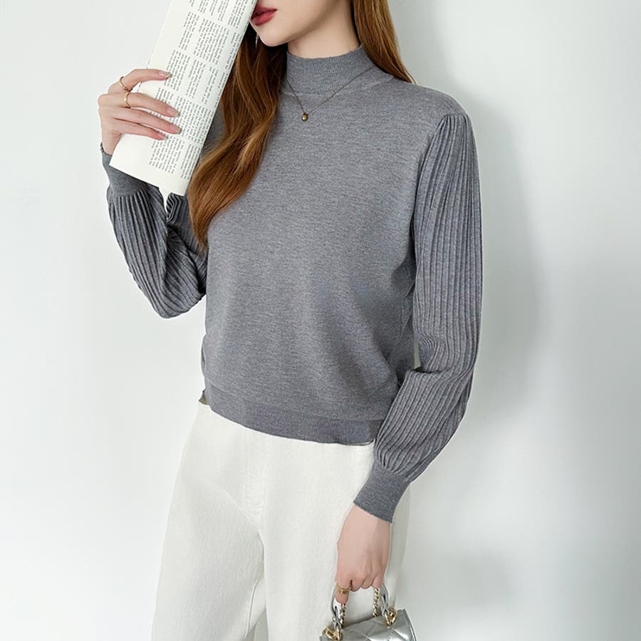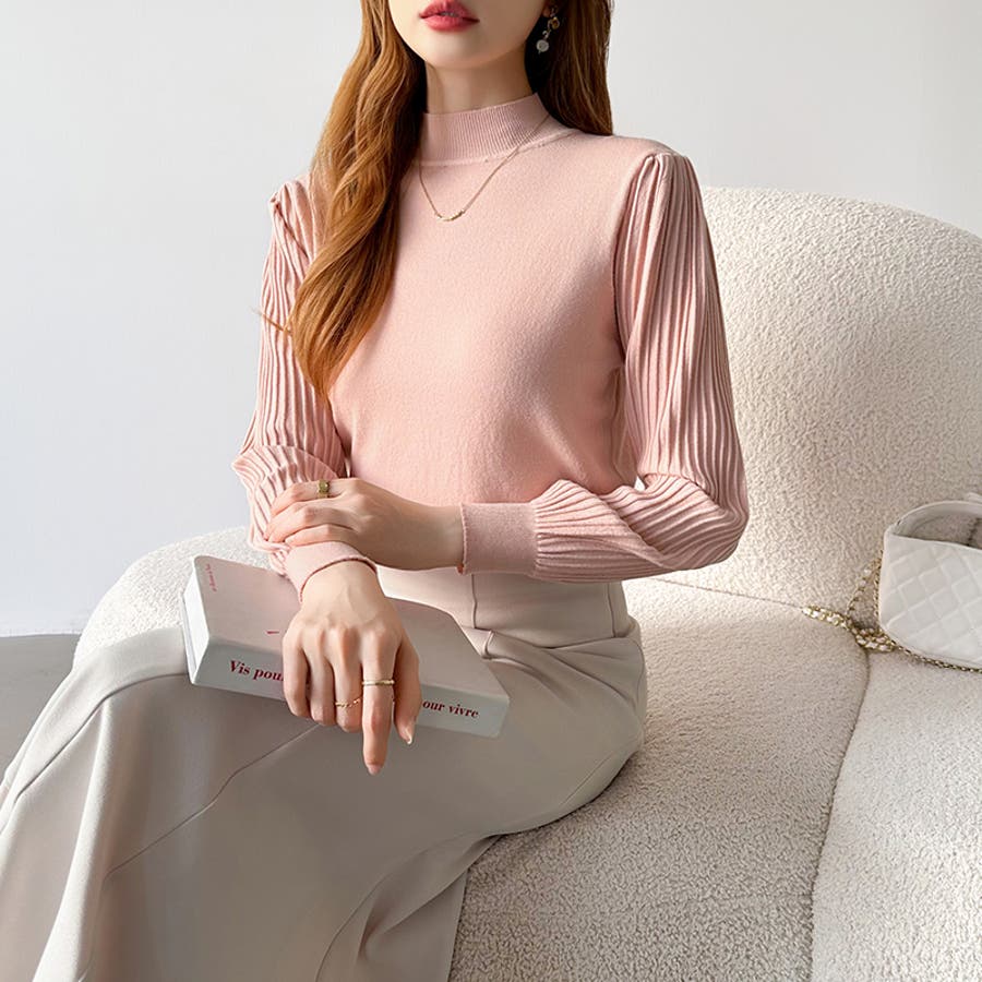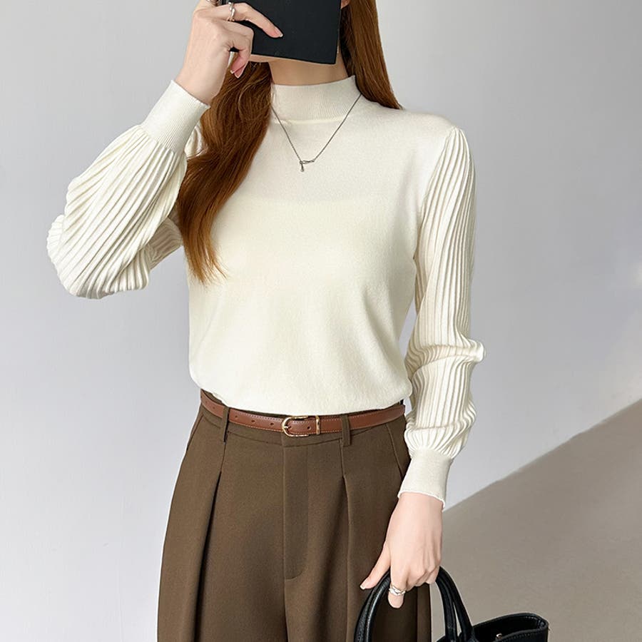 プリーツスリーブニット ボリューム袖ニット ハイネック