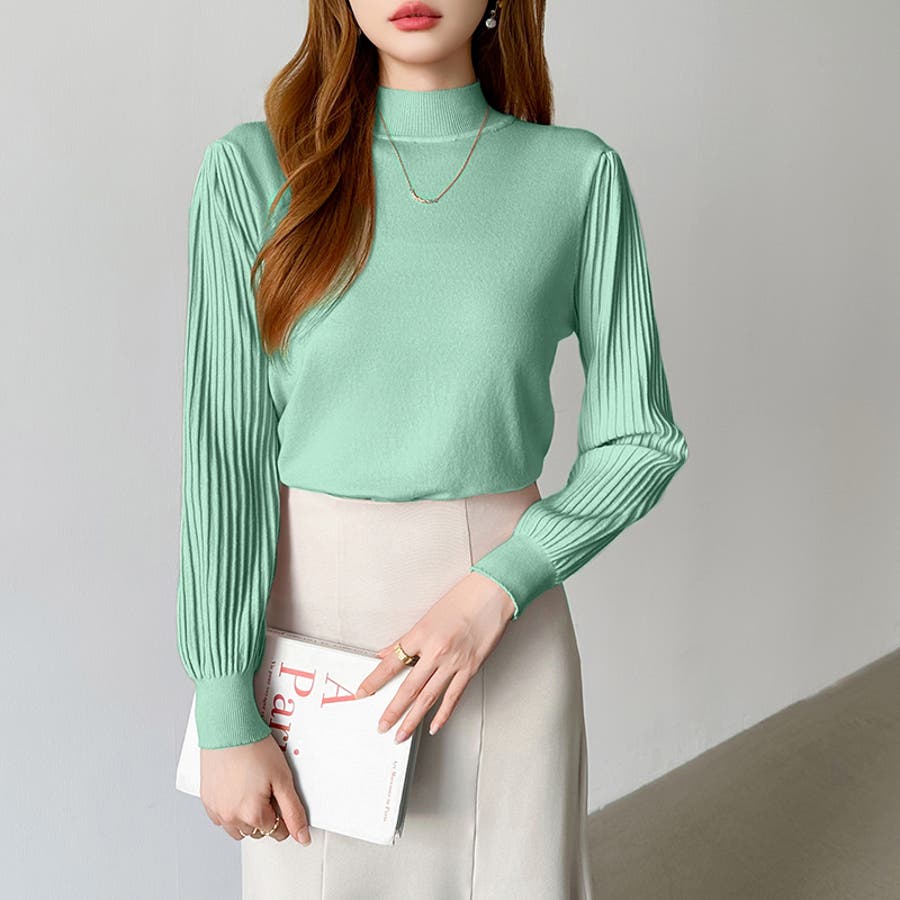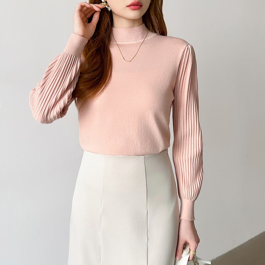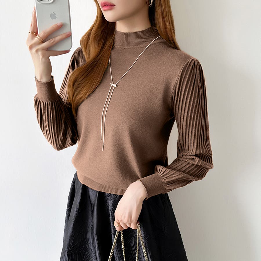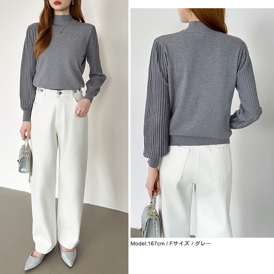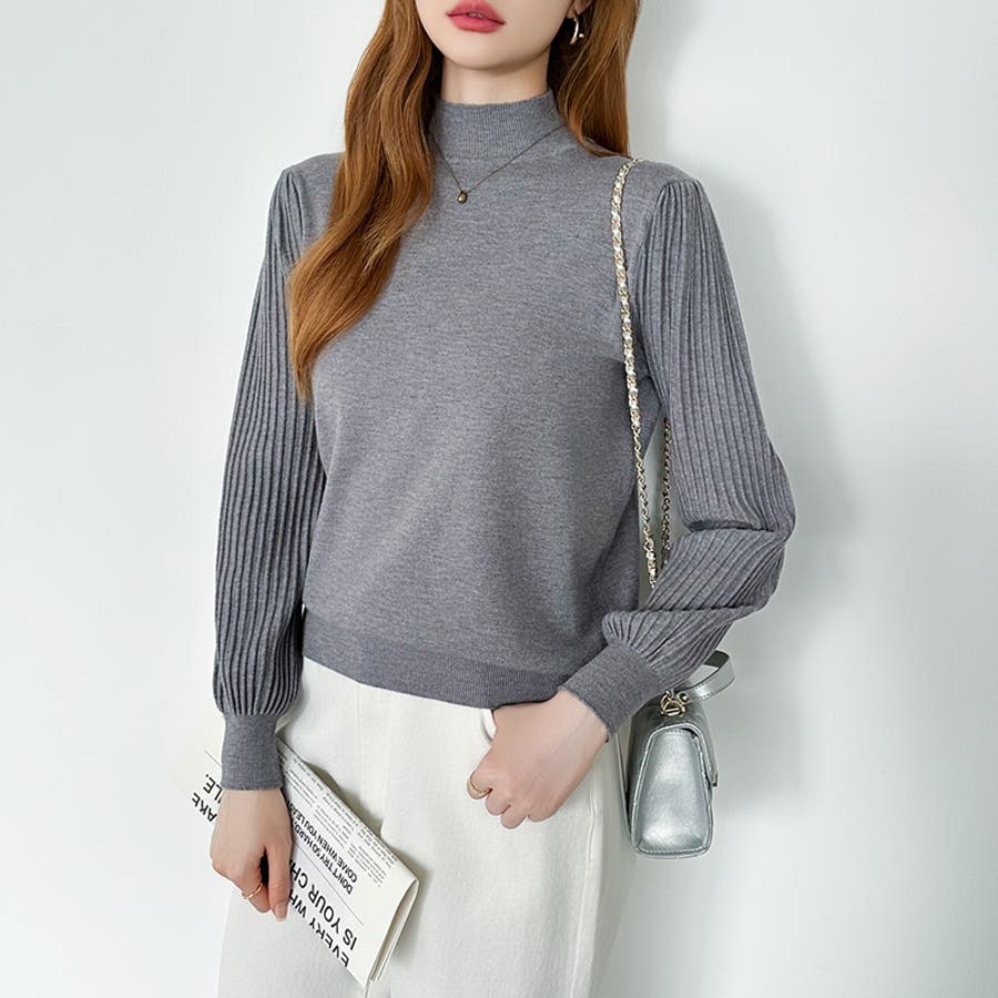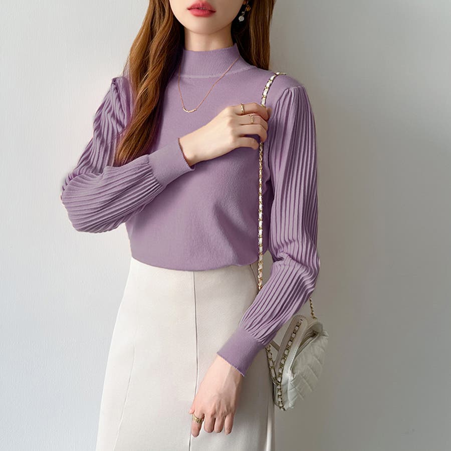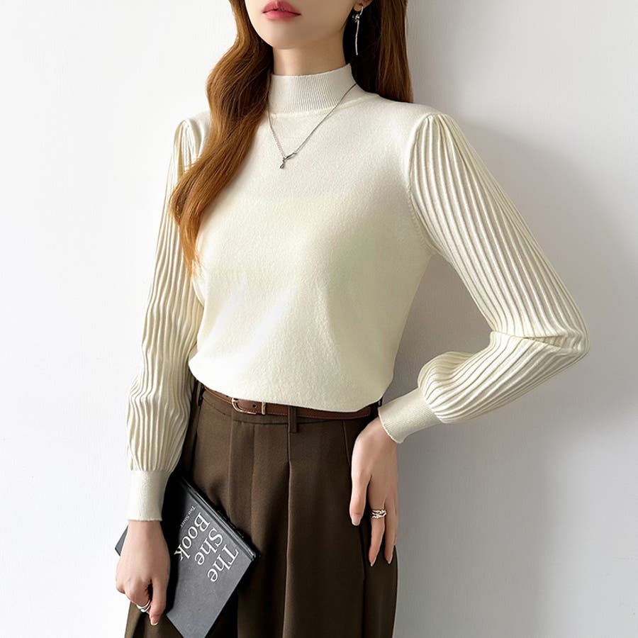 プリーツスリーブニット ボリューム袖ニット ハイネック