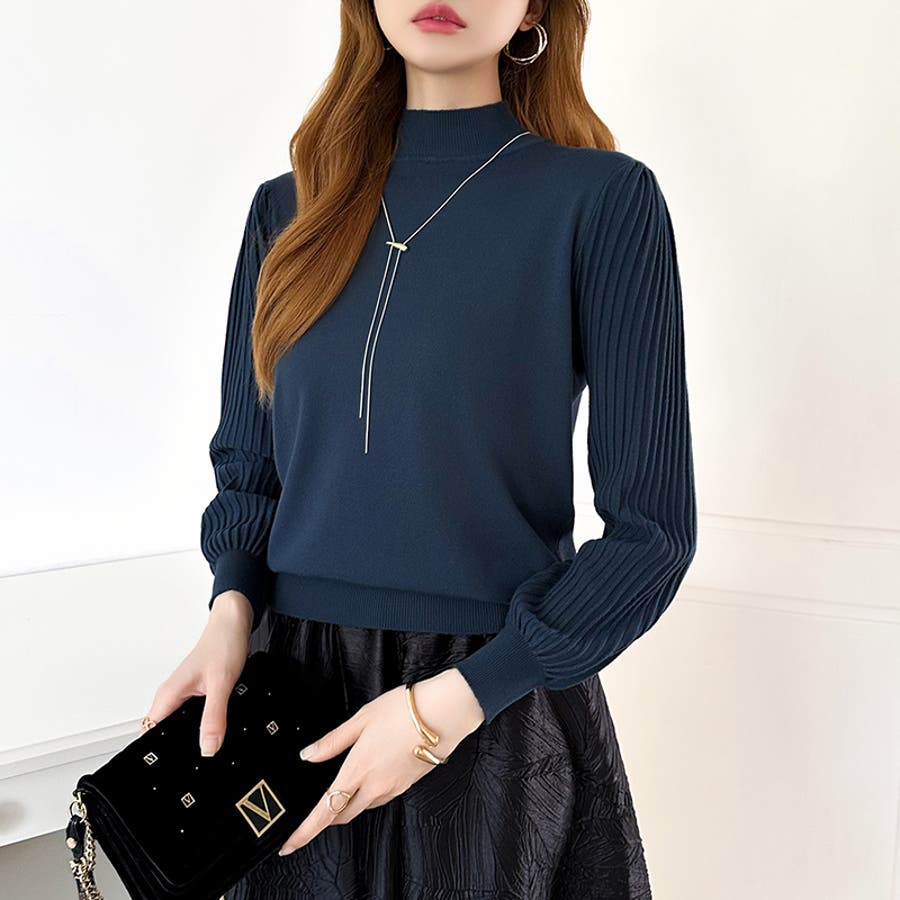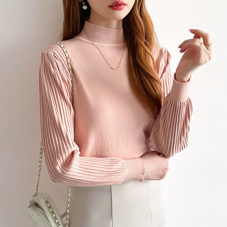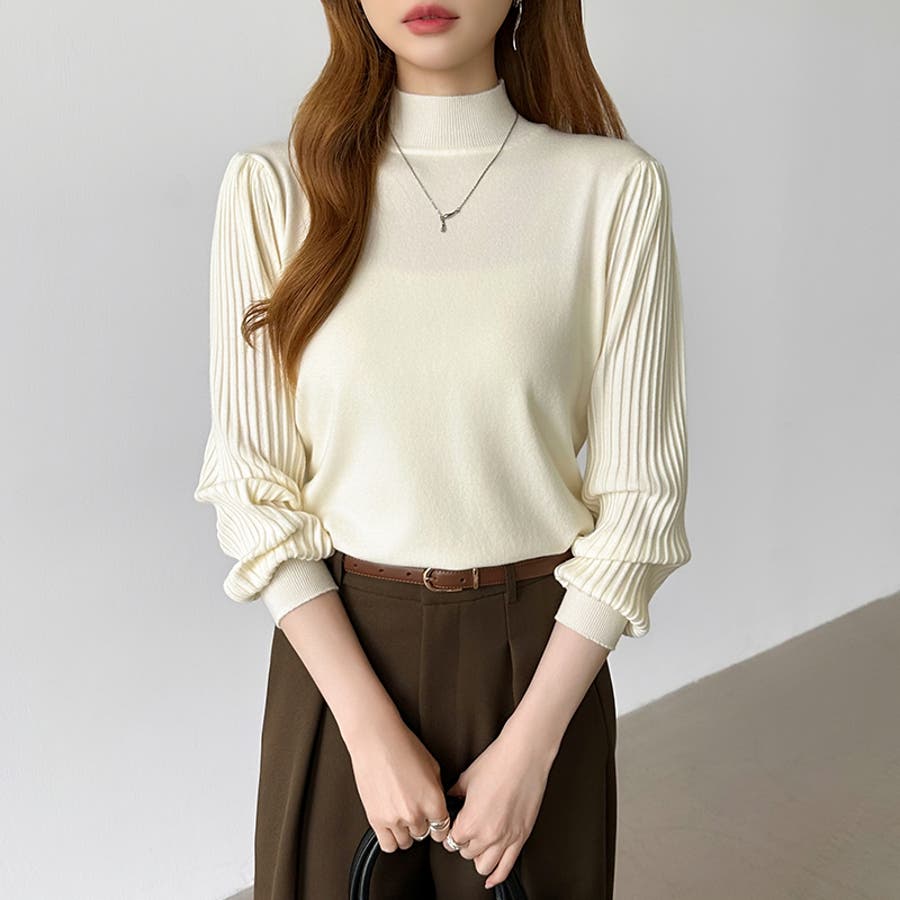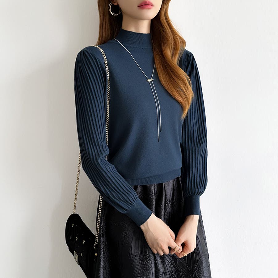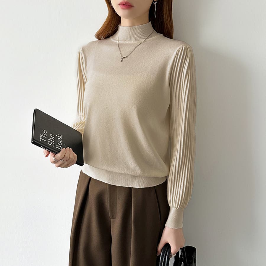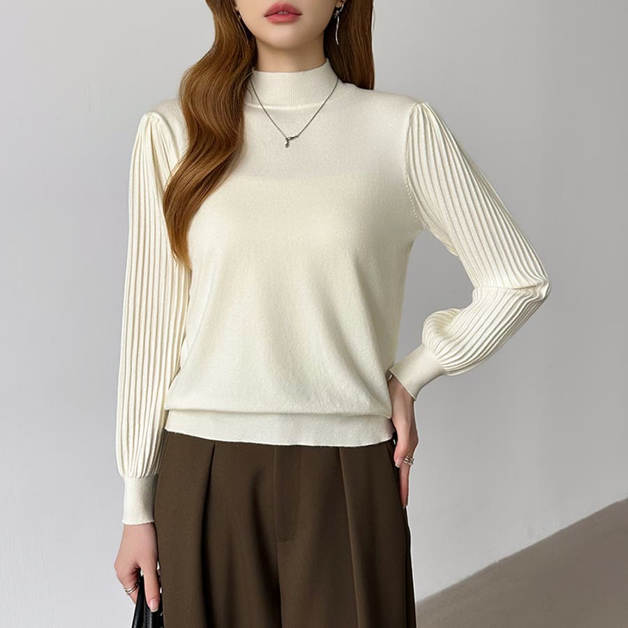 プリーツスリーブニット ボリューム袖ニット ハイネック