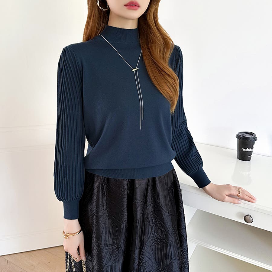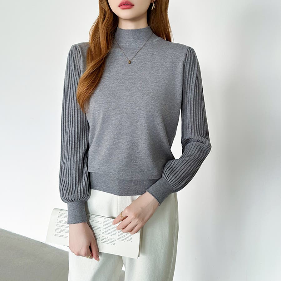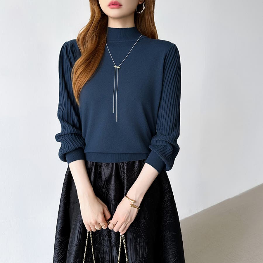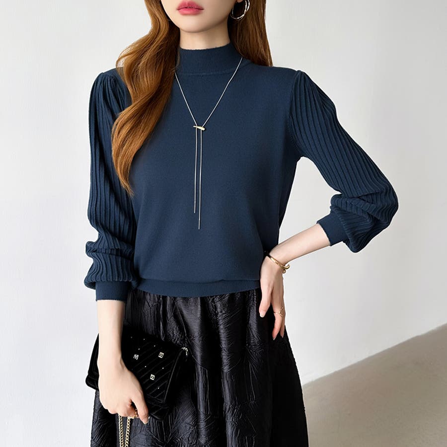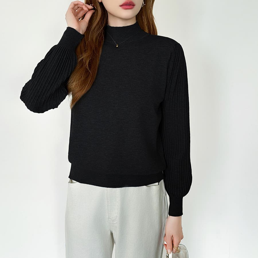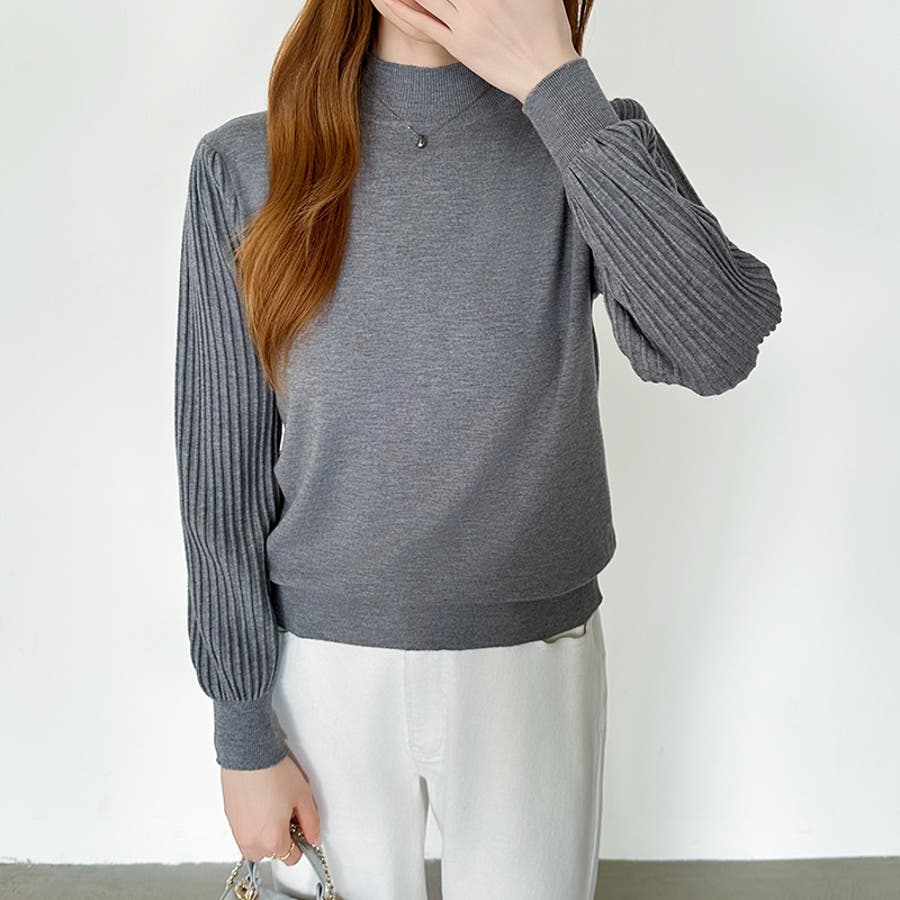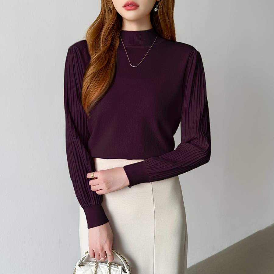 プリーツスリーブニット ボリューム袖ニット ハイネック