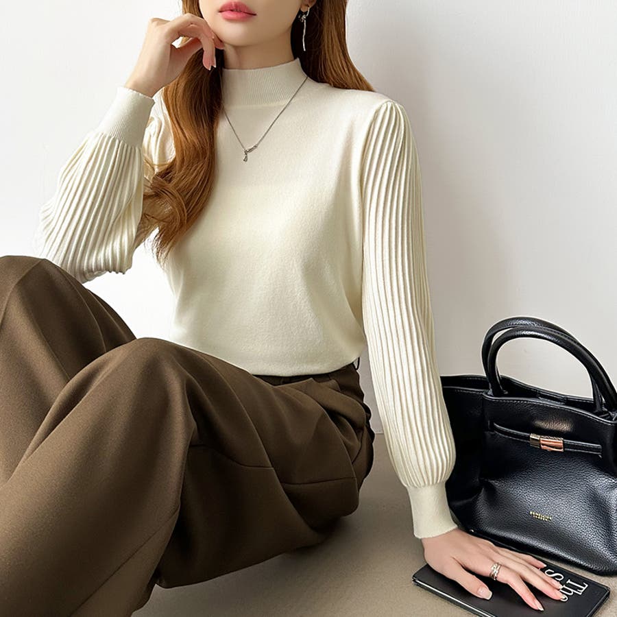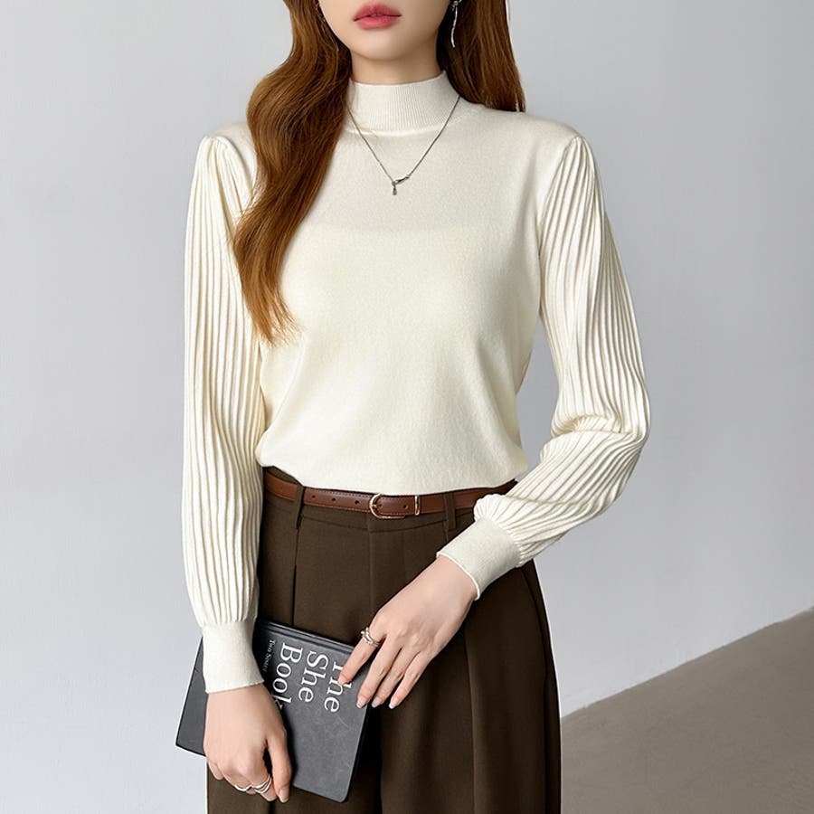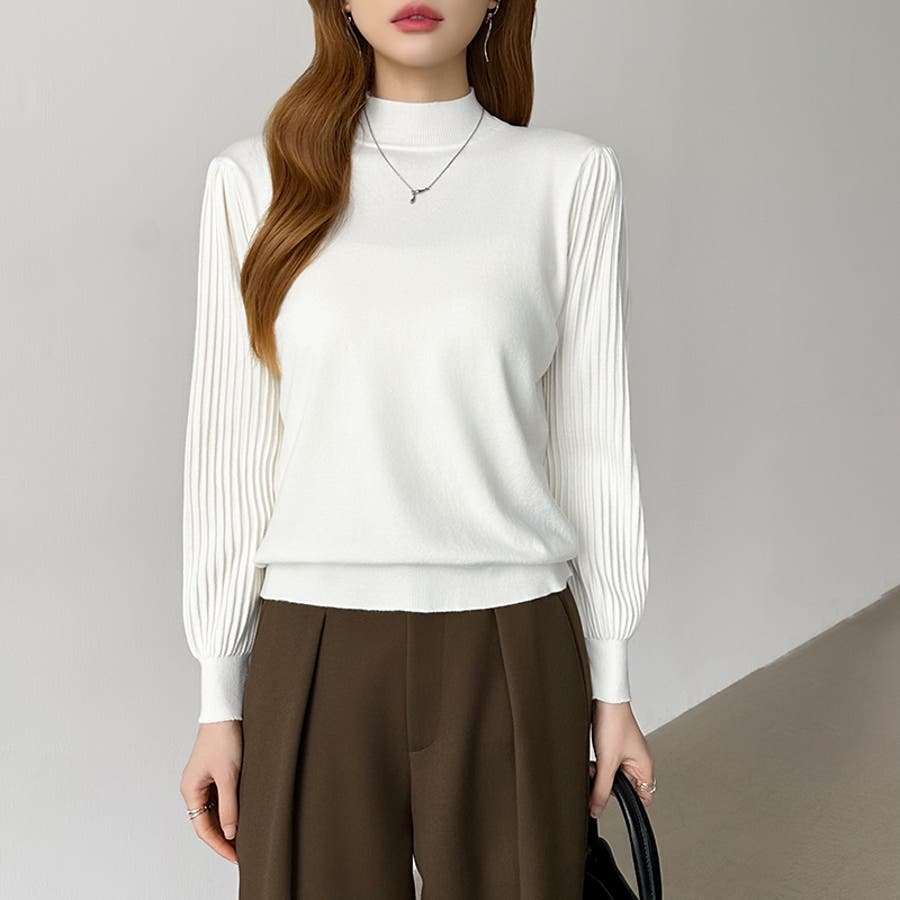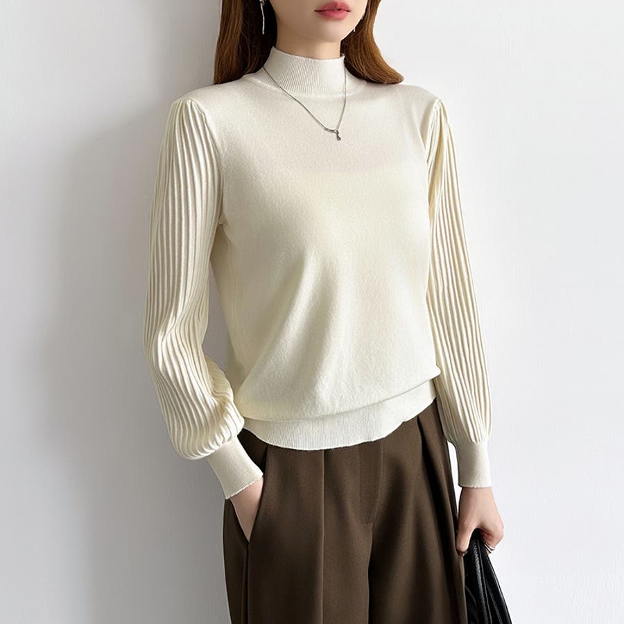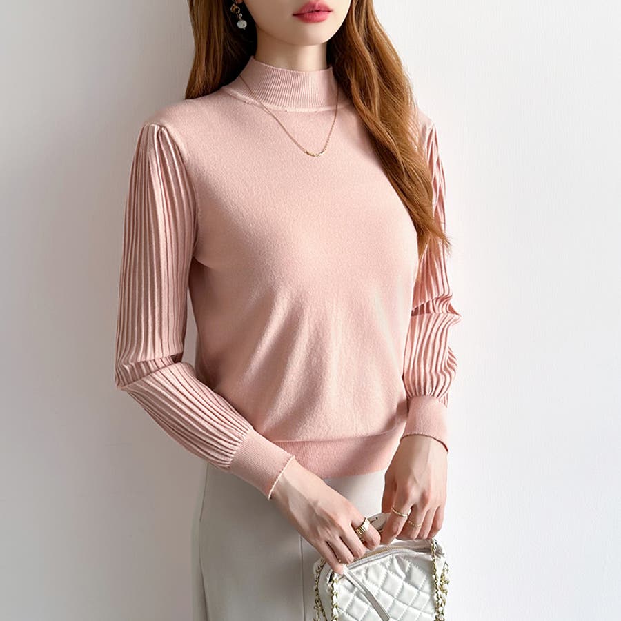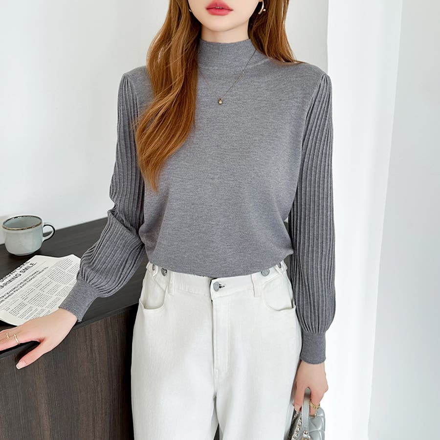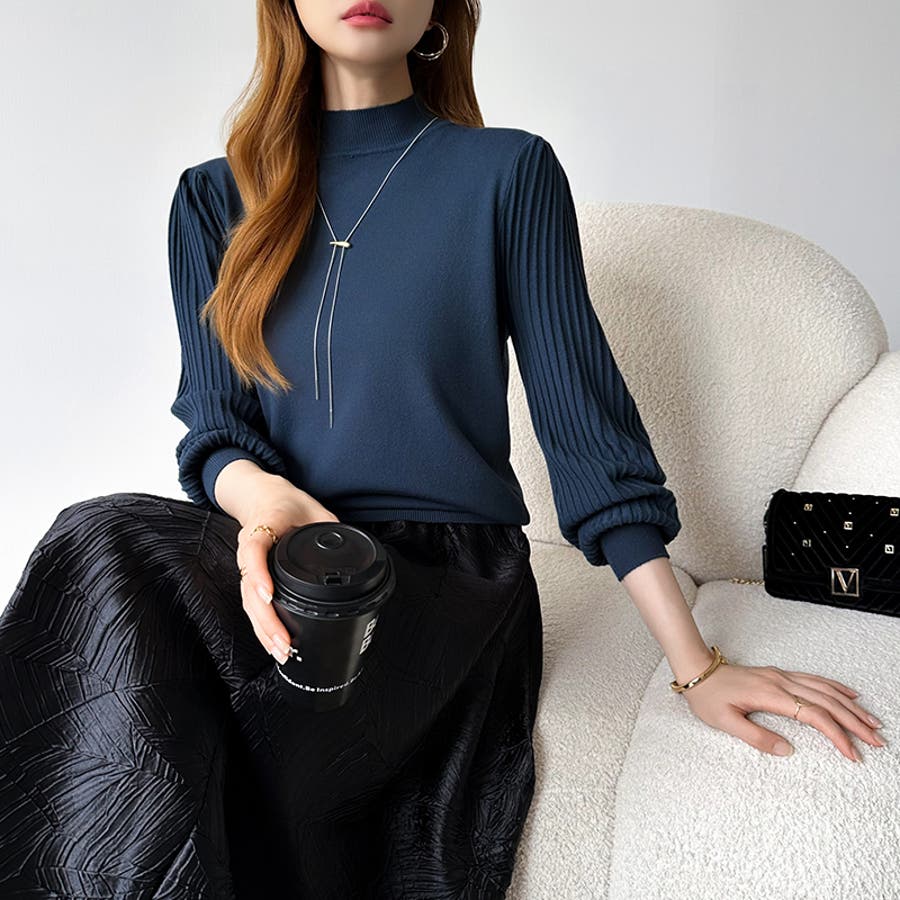プリーツスリーブニット ボリューム袖ニット ハイネック