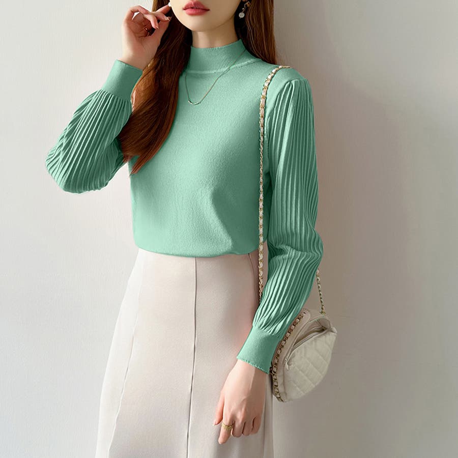 ニット ボリューム袖 プリーツ ハイネック レディース 長袖 トップス きれいめ プリーツスリーブ ハイネックニット ゆったり ボリュームスリーブニット ニットセーター オフィス オフィスカジュアル ボリュームスリーブ 袖 プリーツ袖 きれいめニット 袖コンシャス ニットトップス プルオーバー シンプル セーター ハイネックニットプルオーバー プチハイネック モックネック プチハイネックニット モックネックニット 無地 tops 着回し 着まわし 袖長め 長め 長い 伸縮性 ストレッチ 細見え 華奢見え 柔らかい やわらかい やわらか 洗える 手洗い 手洗い可能 洗濯できる 洗濯 洗濯可能 洗濯可 あたたかい あったか 暖かい 暖か 通勤 通学 会社 仕事 OL オフィスカジュアル秋冬 オフィカジ フェミニン エレガント 華やか 上品 カジュアル 大人 オトナ 大人女子 オトナ女子 かわいい 可愛い 大人かわいい 大人可愛い きれい め キレイめ 綺麗 おしゃれ オシャレ 女 女性 母 母親 ママ ママコーデ ママ服 ママファッション プチプラ 高見え トレンド ヒット 商品 おすすめ 服 洋服 ファッション コーデ コーディネート フリーサイズ フリー サイズ ホワイト 白 アイボリー ベージュ ピンク グリーン 緑 パープル 紫 グレー 灰色 ブラウン 茶色 ダークブルー 青 ブラック 黒 カラー 白ニット 黒ニット オフィスニット 春ニット 秋ニット 冬ニット 春トップス 秋トップス 冬トップス 春トップスレディース 秋トップスレディース 冬トップスレディース レディース春 レディース秋 レディース冬 レディース秋冬 レディース秋物 レディース秋冬トップス 長袖トップスレディース 長袖トップスおしゃれ トップスレディース トップスレディース長袖 レディーストップス 長袖レディース 長袖トップスおしゃれ 二ットレディース 薄手ニットレディース ハイネックニットレディース 新作 春秋 秋冬 春 秋 冬 春服 秋服 冬服 春物 秋物 冬物 春用 秋用 冬用 韓国 韓国ファッション 10代 20代 30代 40代 50代 60代 70代 cocomomo ココモモ