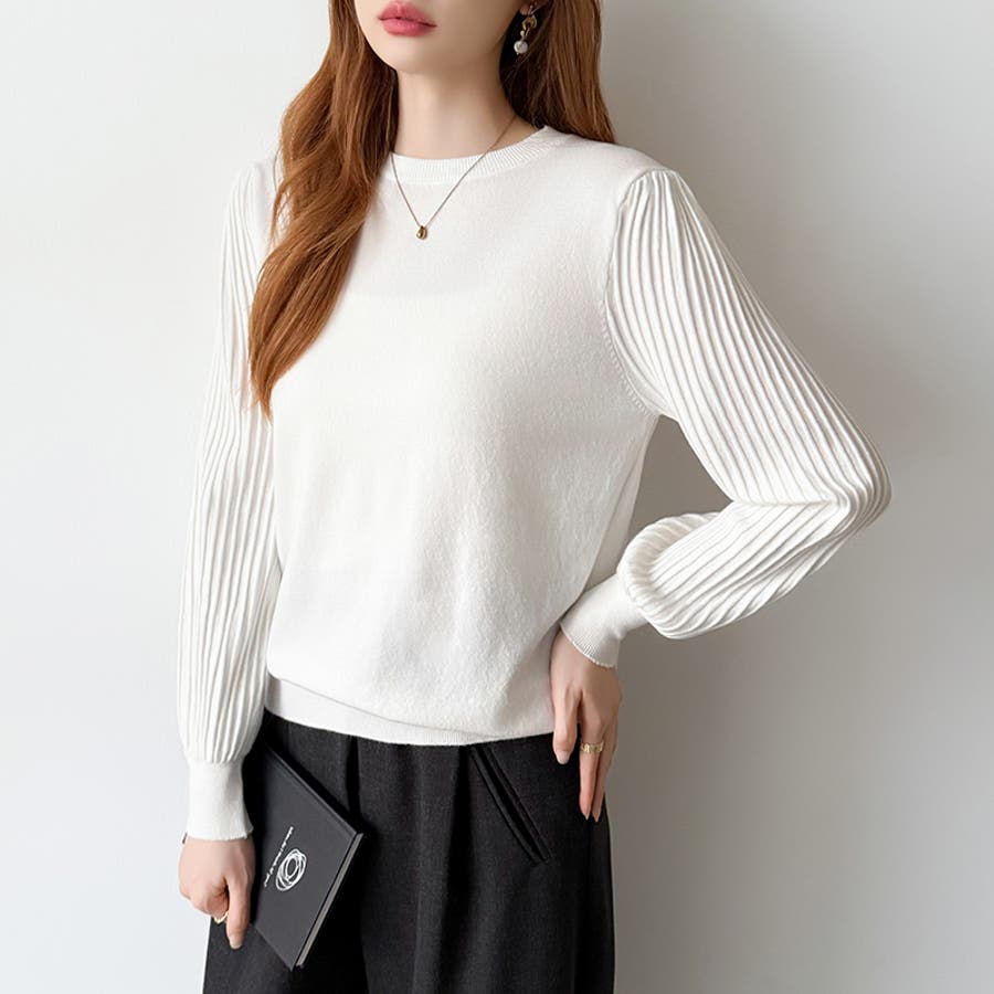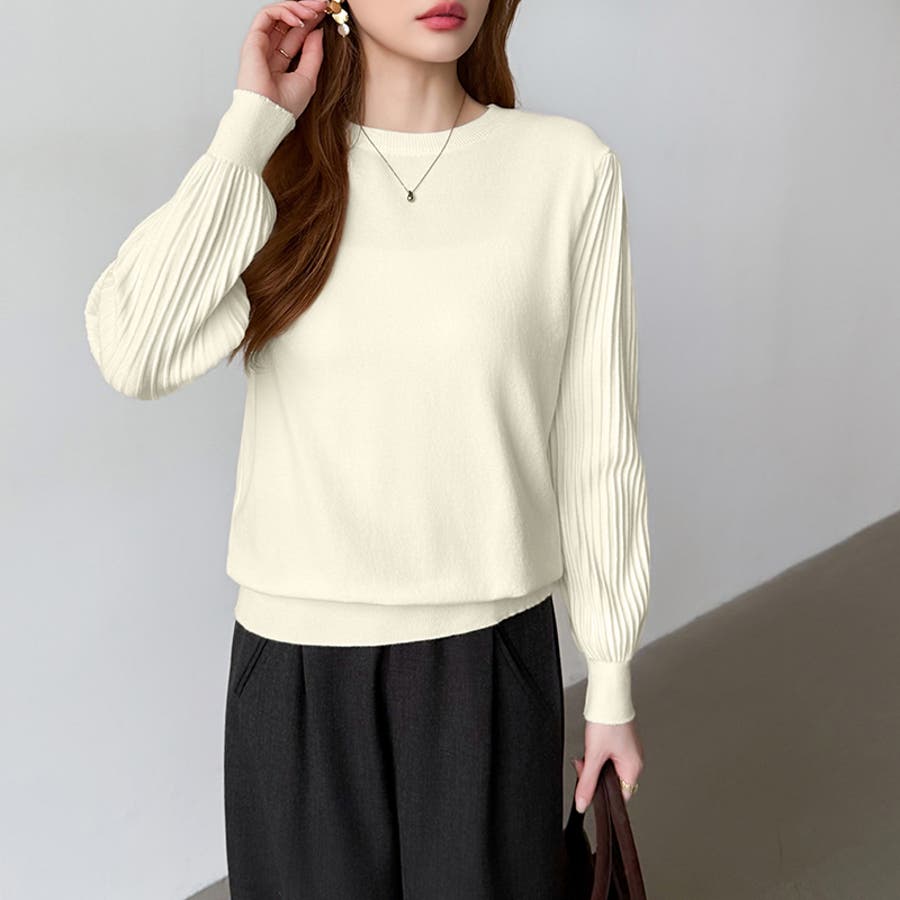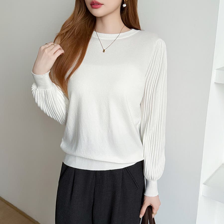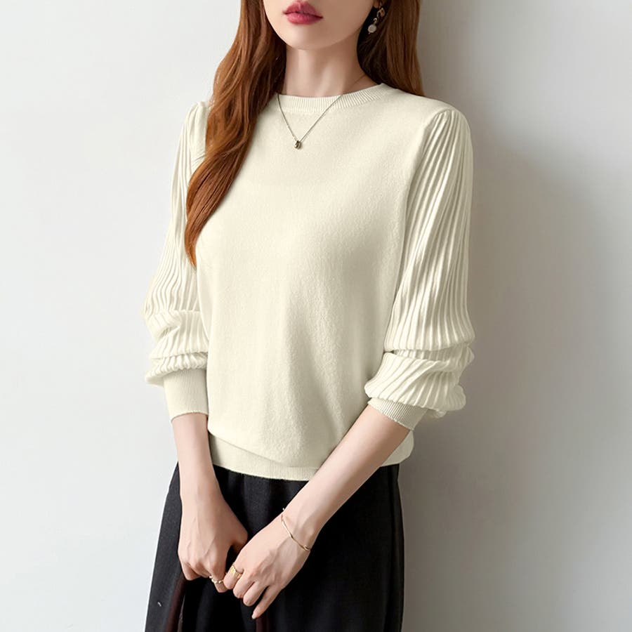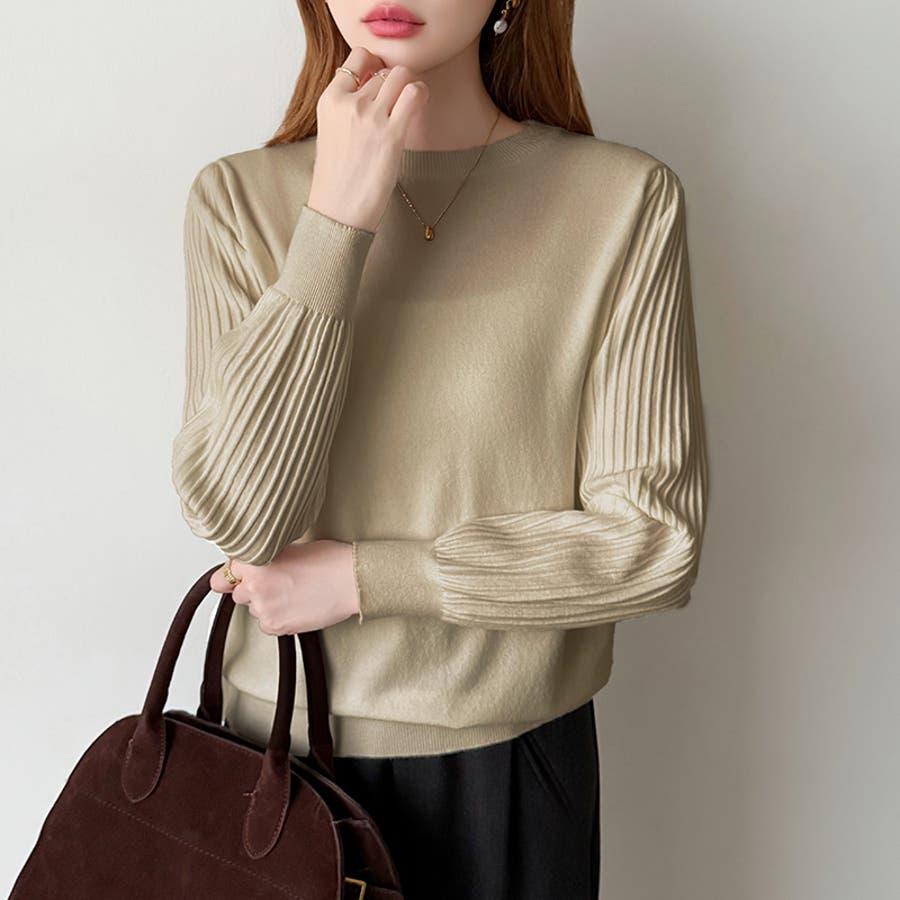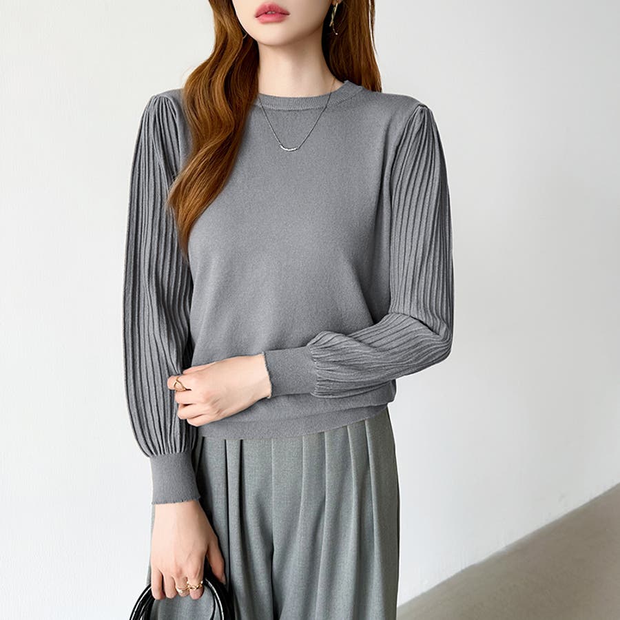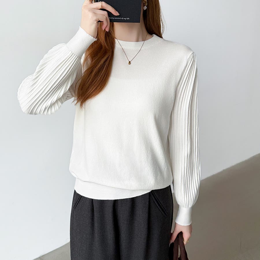 シンプルなのに印象的。プリーツスリーブニット ニット ボリューム袖