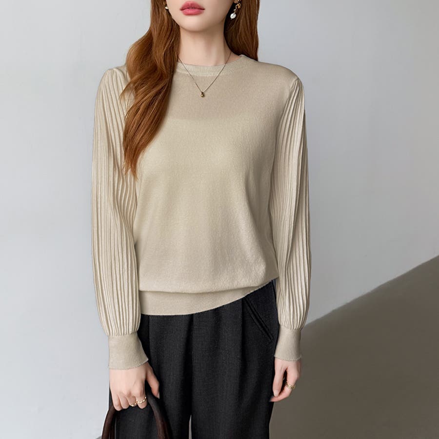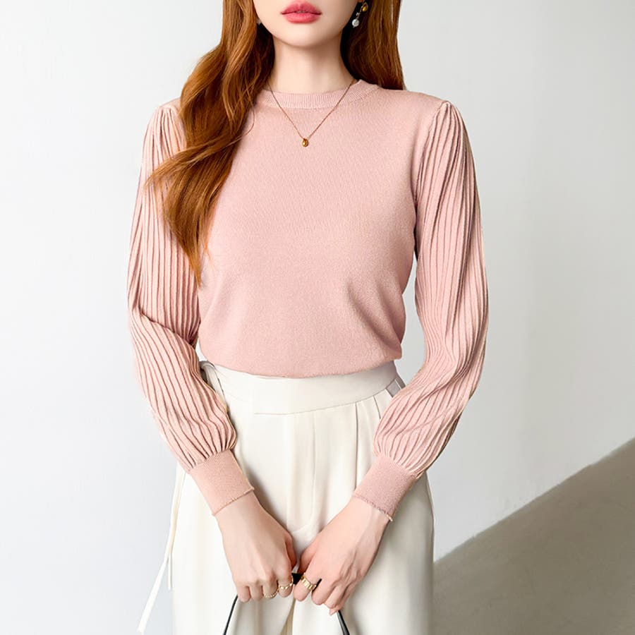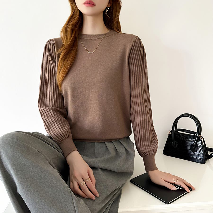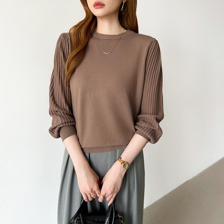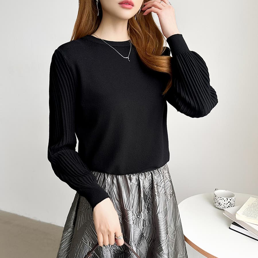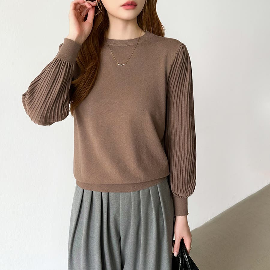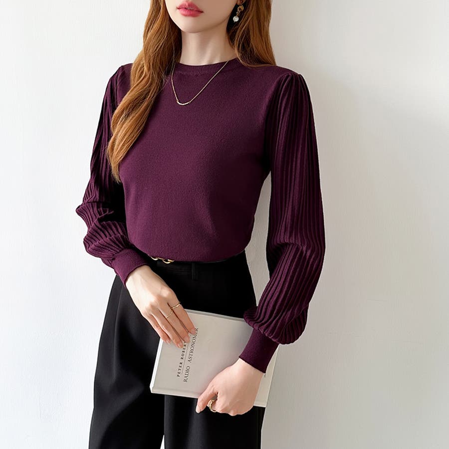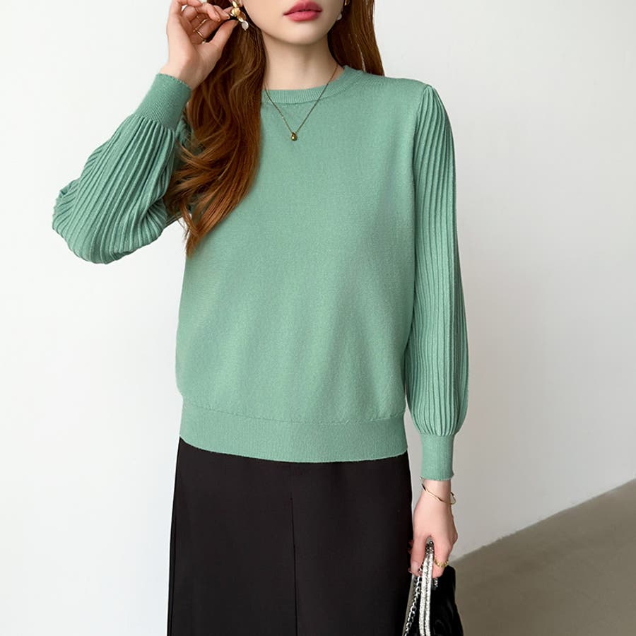 シンプルなのに印象的。プリーツスリーブニット ニット ボリューム袖