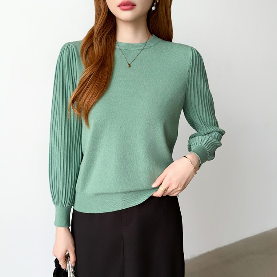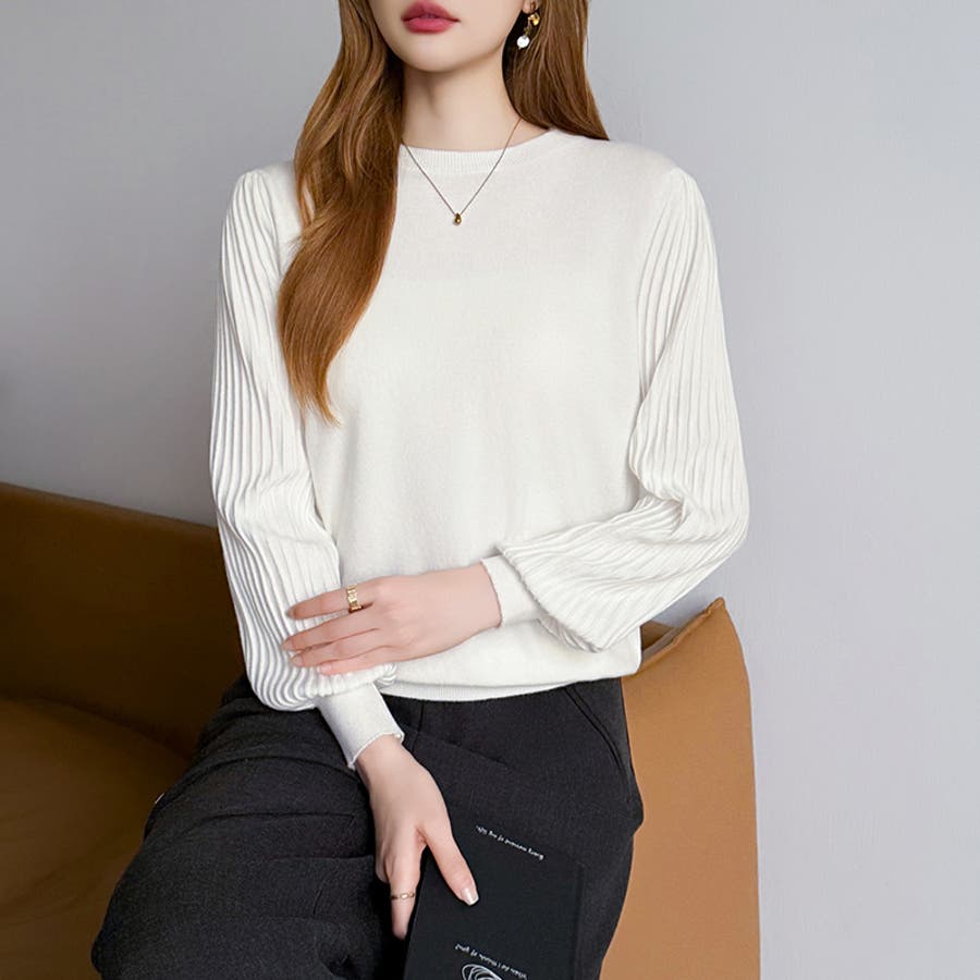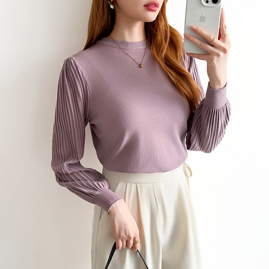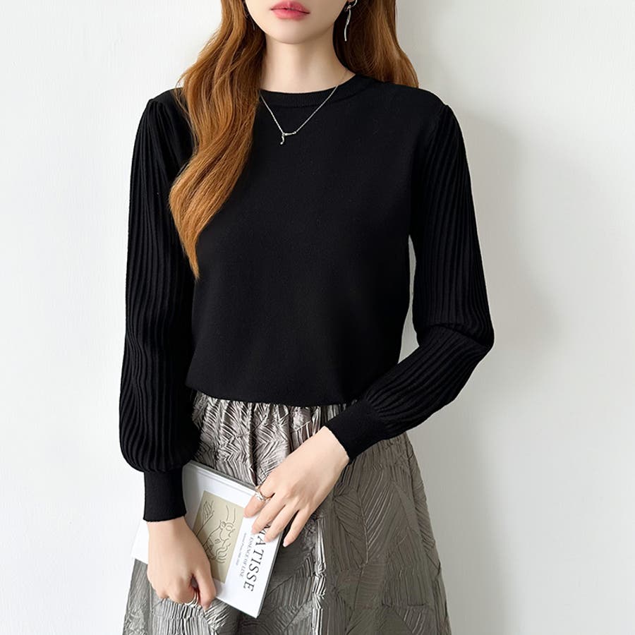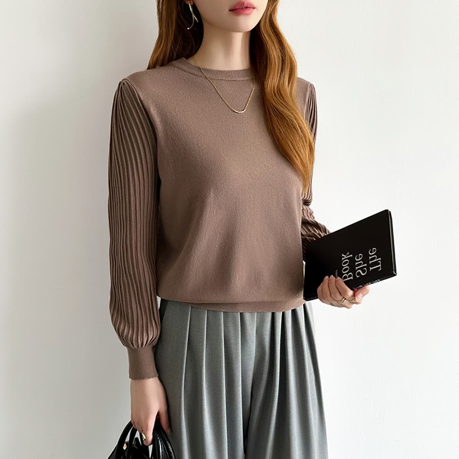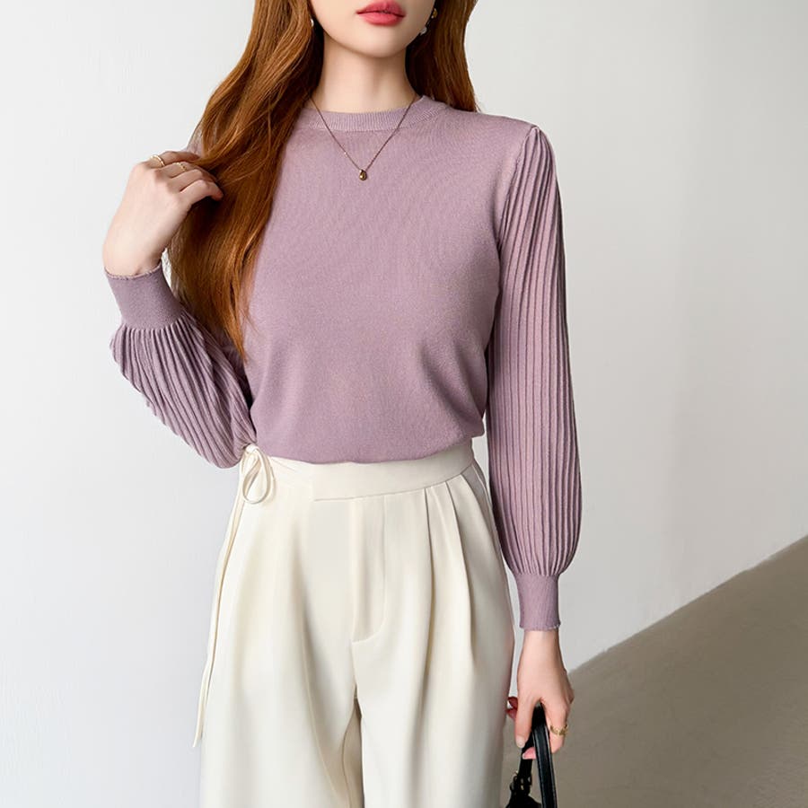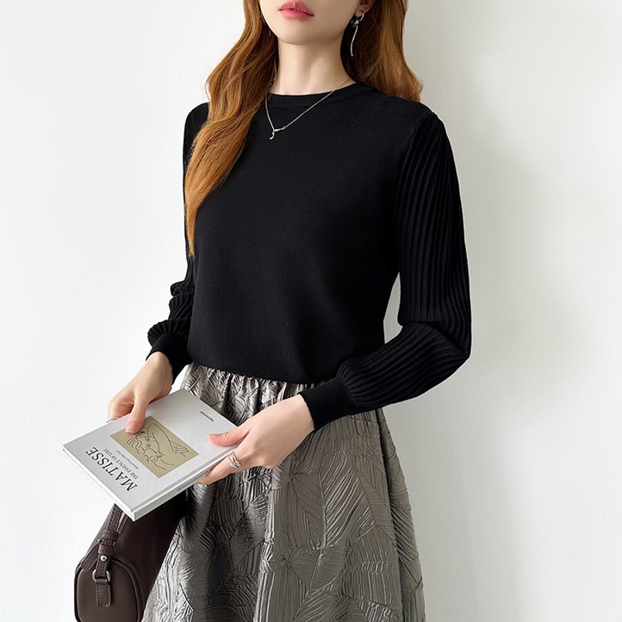 シンプルなのに印象的。プリーツスリーブニット ニット ボリューム袖