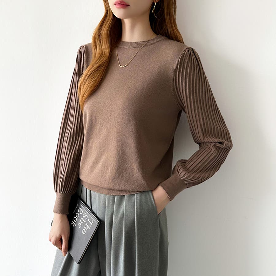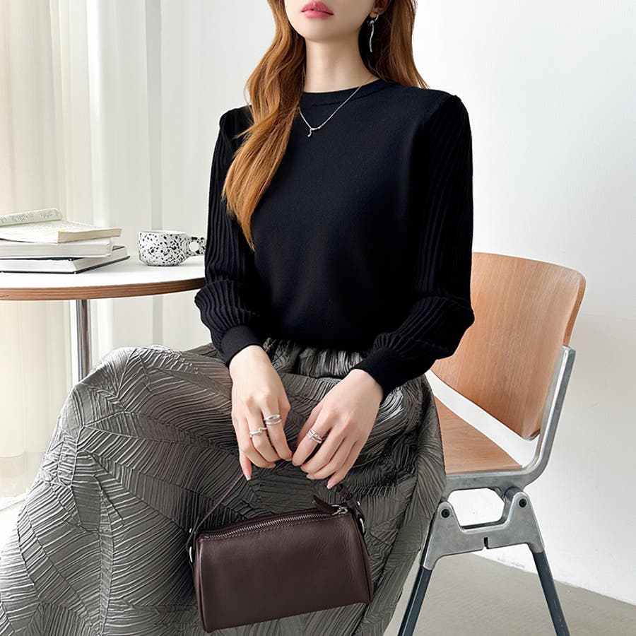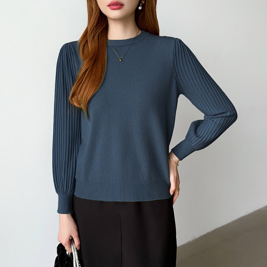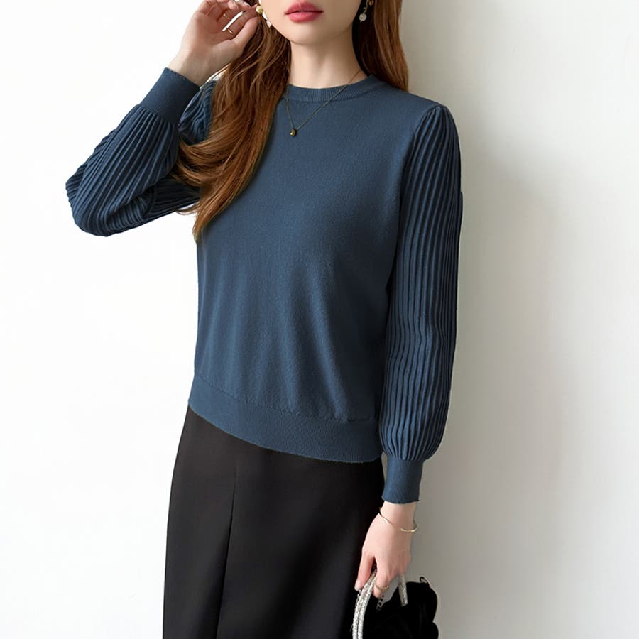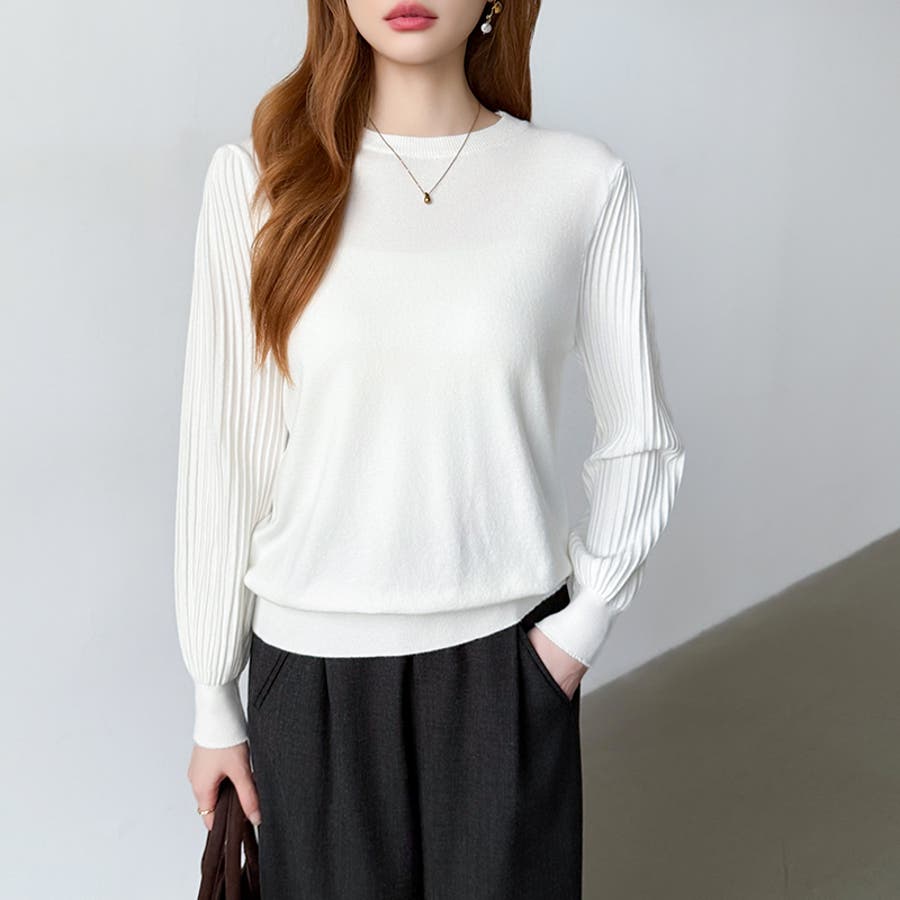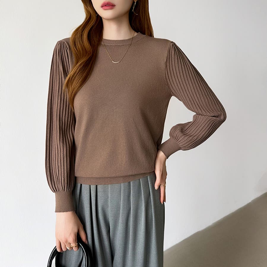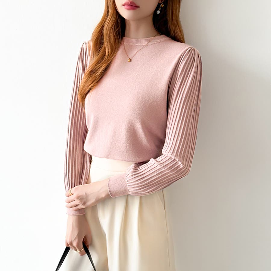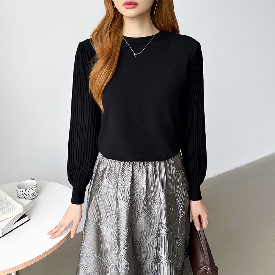 シンプルなのに印象的。プリーツスリーブニット ニット ボリューム袖