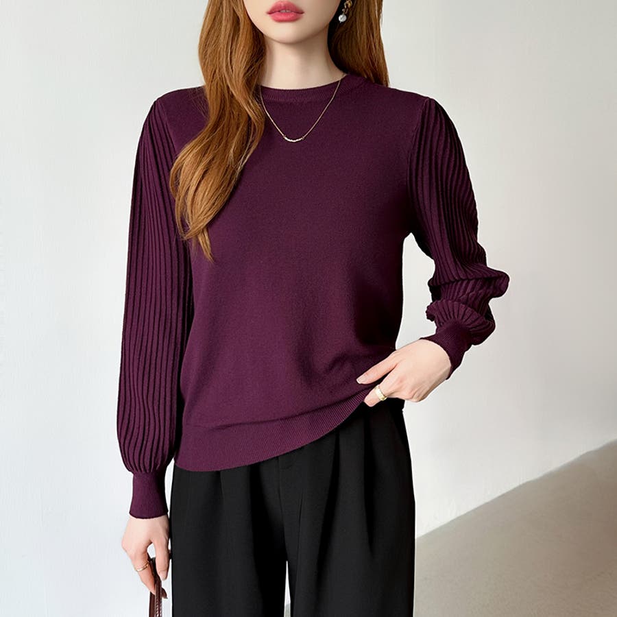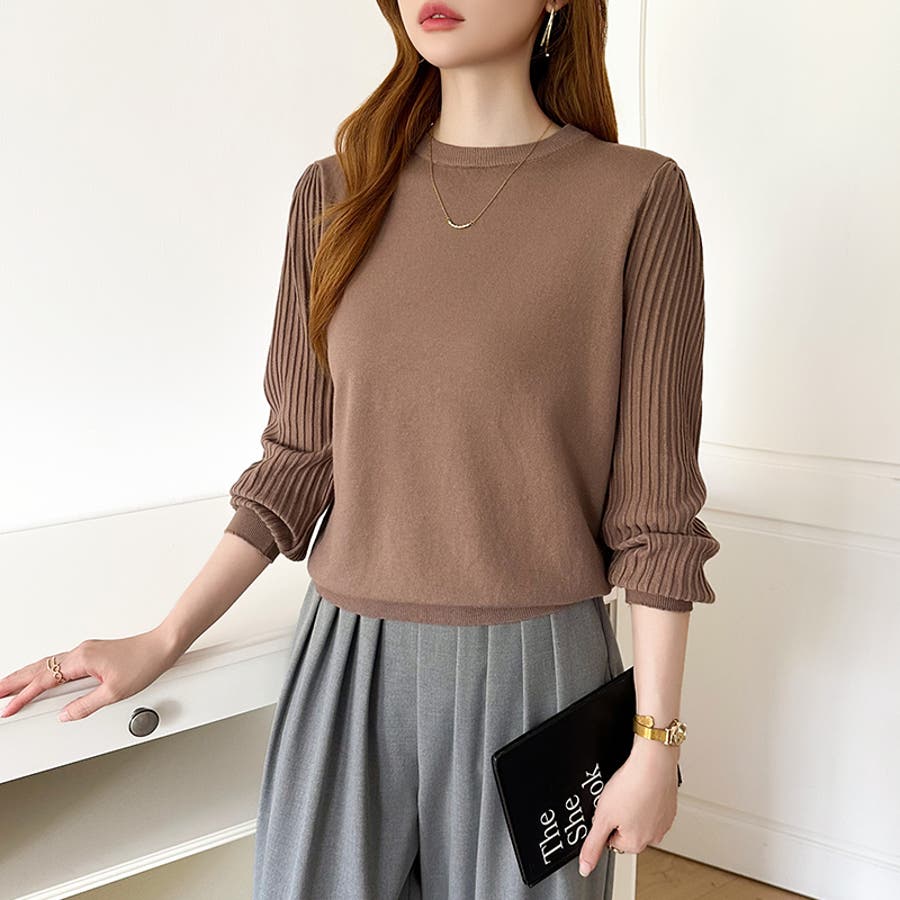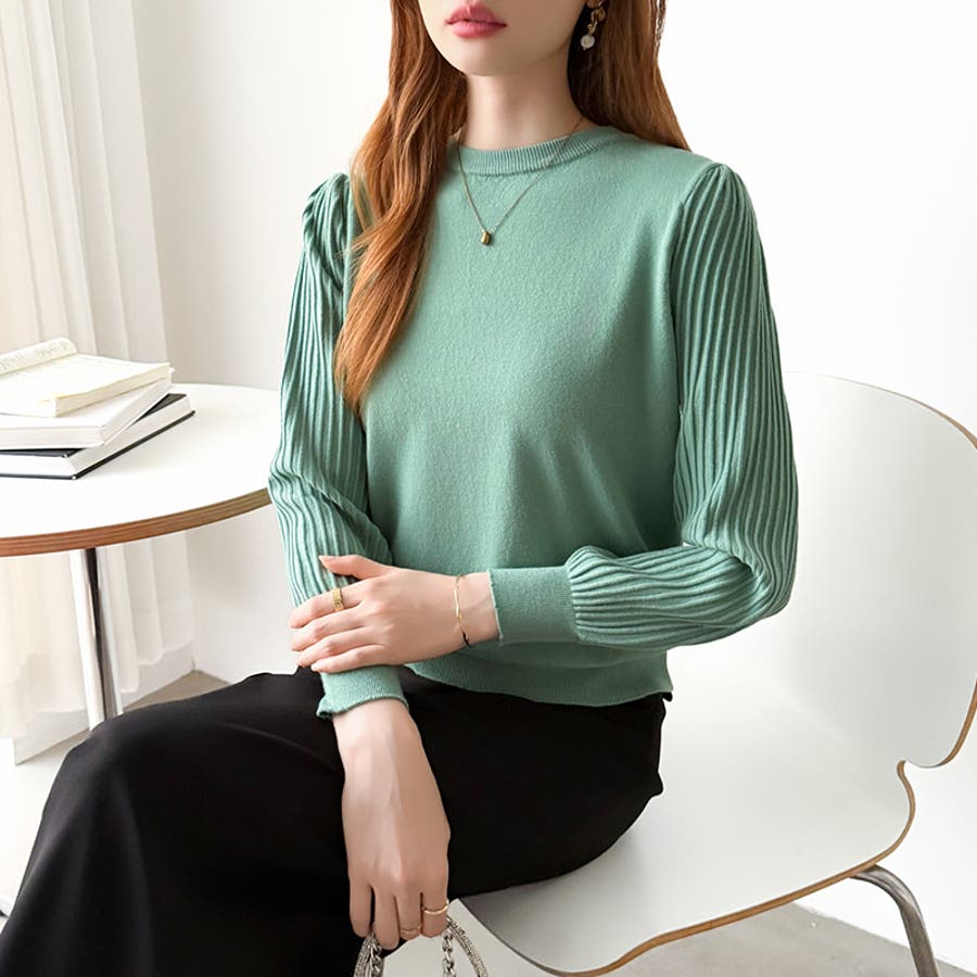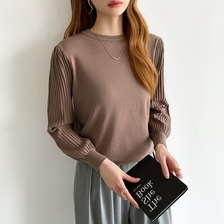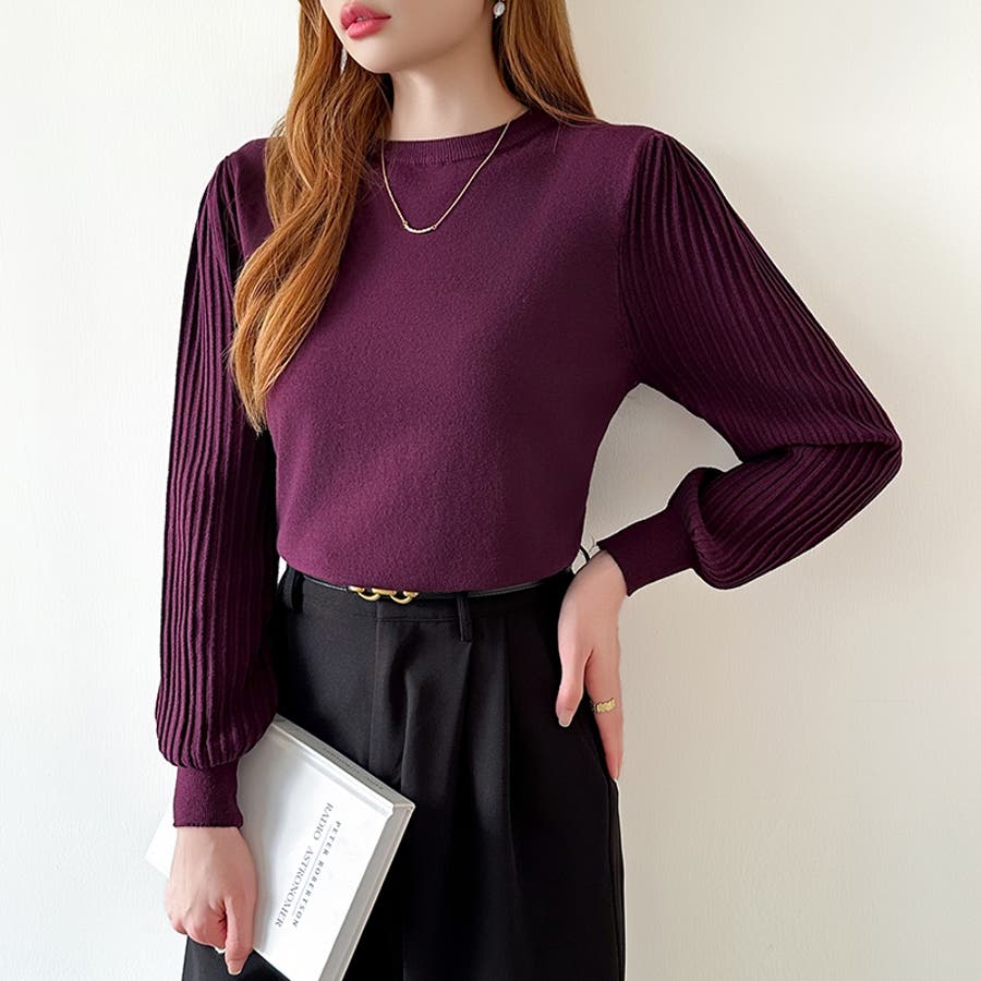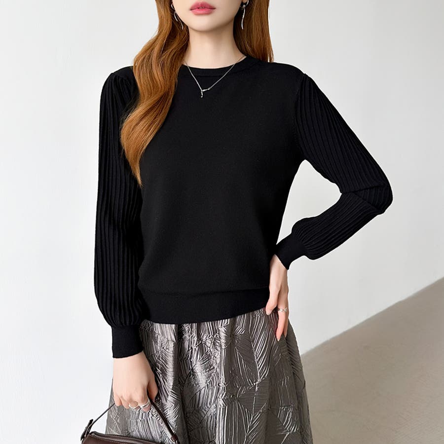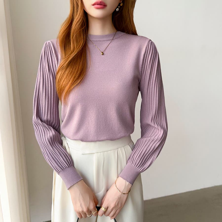 シンプルなのに印象的。プリーツスリーブニット ニット ボリューム袖