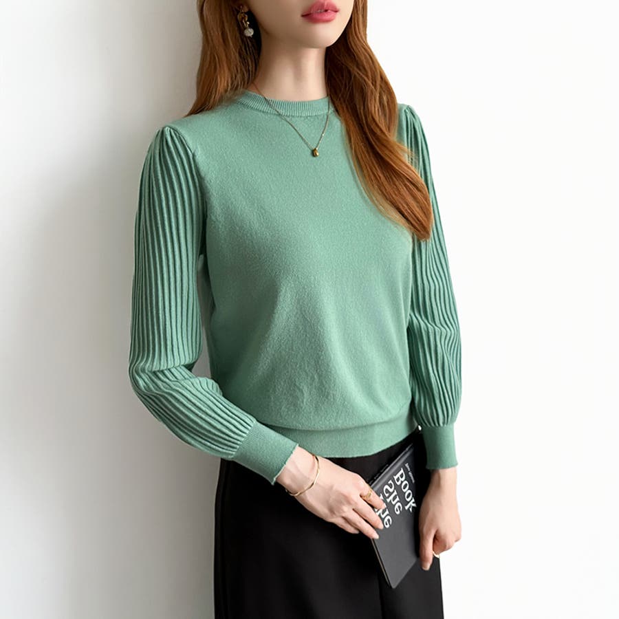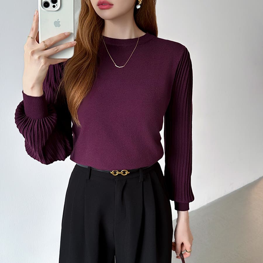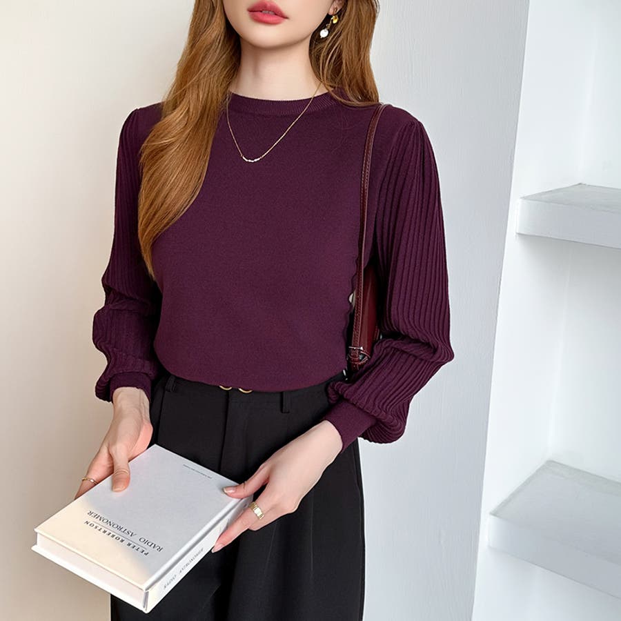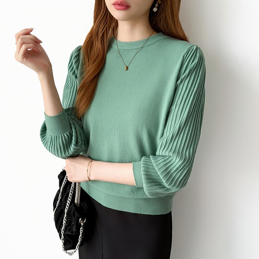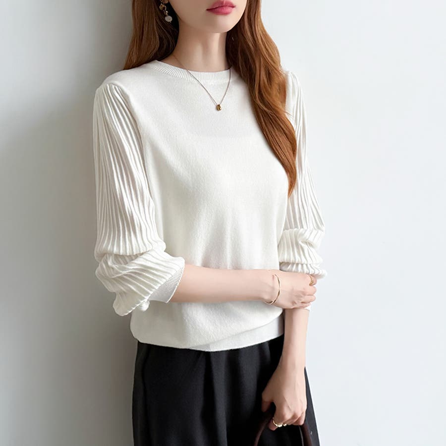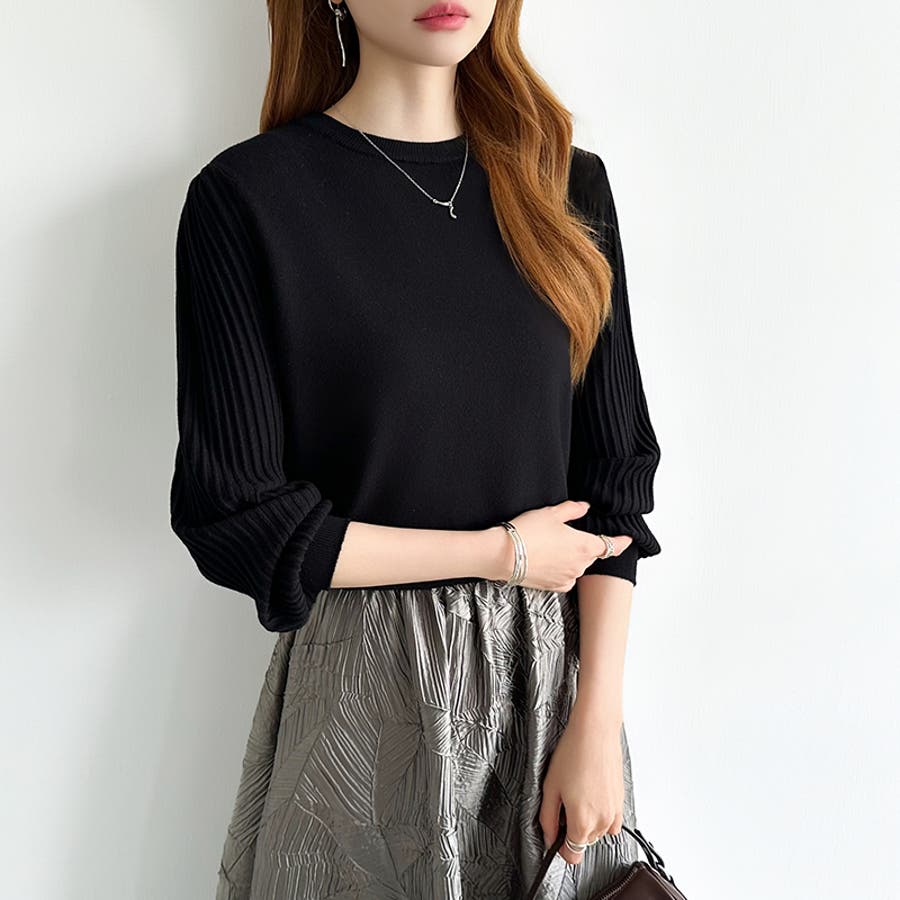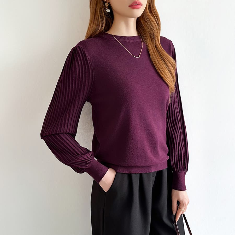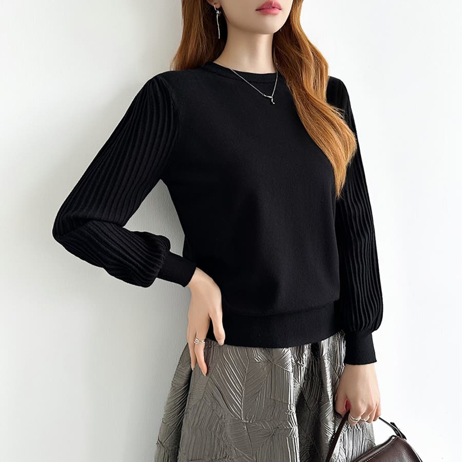 シンプルなのに印象的。プリーツスリーブニット ニット ボリューム袖