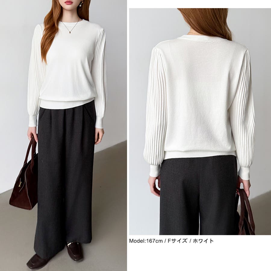 ニット ボリューム袖 プリーツ クルーネック レディース 長袖 トップス きれいめ プリーツスリーブニット プリーツスリーブ ゆったり ボリュームスリーブニット ニットセーター オフィス オフィスカジュアル ボリュームスリーブ 袖 プリーツ袖 きれいめニット 袖コンシャス ニットトップス プルオーバー シンプル セーター クルーネックニット ぽわん袖 ポワン袖ニット バルーン袖 バルーン袖ニット 無地 tops 伸縮性 ストレッチ 細見え 華奢見え 柔らかい やわらかい やわらか 洗える 手洗い 手洗い可能 洗濯できる 洗濯 洗濯可能 洗濯可 あたたかい あったか 暖かい 暖か 通勤 通学 会社 仕事 OL オフィスカジュアル秋冬 オフィカジ フェミニン エレガント 華やか 上品 カジュアル 大人 オトナ 大人女子 オトナ女子 かわいい 可愛い 大人かわいい 大人可愛い きれい め キレイめ 綺麗 おしゃれ オシャレ 女 女性 母 母親 ママ ママコーデ ママ服 ママファッション プチプラ 高見え トレンド ヒット 商品 おすすめ 服 洋服 ファッション コーデ コーディネート フリーサイズ フリー サイズ ホワイト 白 アイボリー ベージュ ピンク グリーン 緑 パープル ダークパープル 紫 グレー 灰色 ブラウン 茶色 ダークブルー ブルー 青 ブラック 黒 カラー 白ニット 黒ニット オフィスニット 春ニット 秋ニット 冬ニット 春トップス 秋トップス 冬トップス 春トップスレディース 秋トップスレディース 冬トップスレディース レディース春 レディース秋 レディース冬 レディース秋冬 レディース秋物 レディース秋冬トップス 長袖トップスレディース 長袖トップスおしゃれ トップスレディース トップスレディース長袖 レディーストップス 長袖レディース 長袖トップスおしゃれ 二ットレディース 薄手ニットレディース 新作 春秋 秋冬 春 秋 冬 春服 秋服 冬服 春物 秋物 冬物 春用 秋用 冬用 韓国 韓国ファッション 10代 20代 30代 40代 50代 60代 70代 cocomomo ココモモ