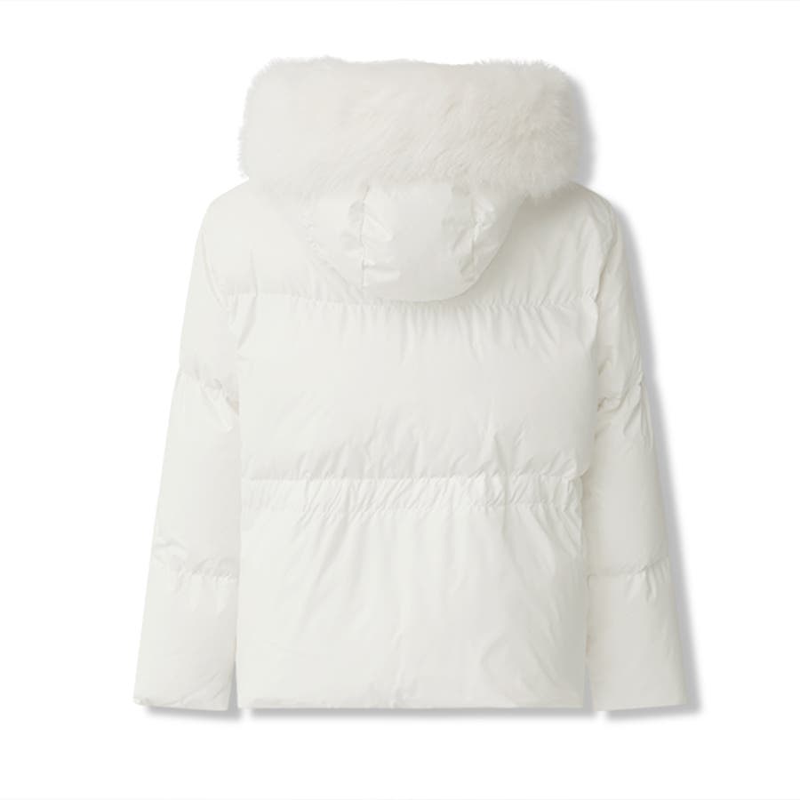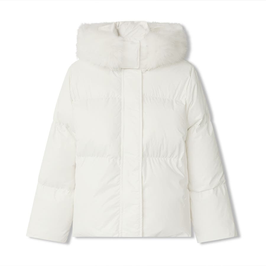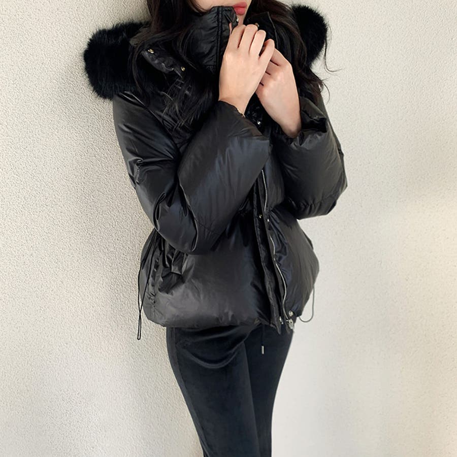ウエストを絞ってメリハリ美人。 ファーフード付き中綿ジャケット。 ふんわりボリュームのある中綿で あたたかく軽い着心地でファーフードが 顔周りに華やかさを添えます。 ウエストにはドローコード付き。 キュッと絞ることでウエストラインに メリハリをつけ、女性らしい立体的な シルエットに調整できます。