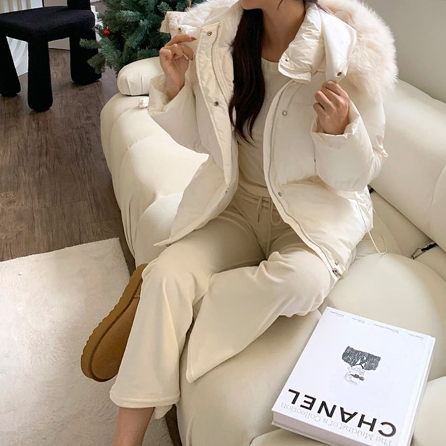 ファー付き中綿ジャケット フェイクダウンジャケット アウター