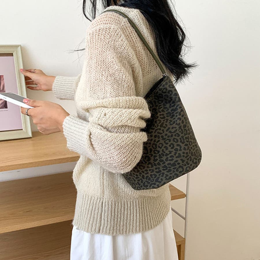上品なスエード調素材と 存在感を放つヒョウ柄が魅力の スエード調バケツバッグ。 柔らかな手触りとマットな質感が、 大人のこなれ感をプラスします。 普段使いやちょっとしたお出かけにも 使いやすいサイズ感に、アクセントを 添えるバッグチャーム付き。