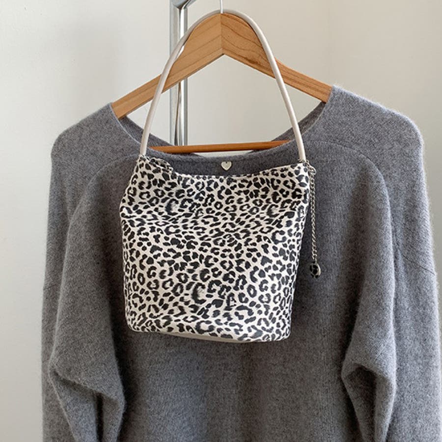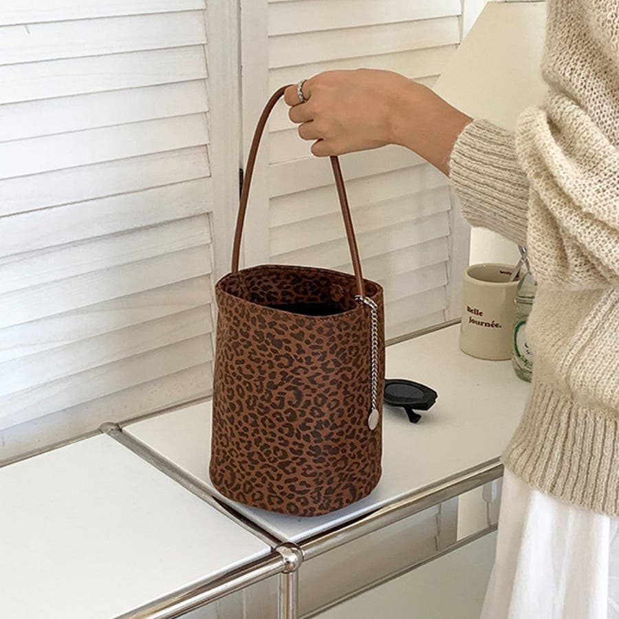 スエード調ヒョウ柄バッグ スエードバッグ バケツ型バッグ