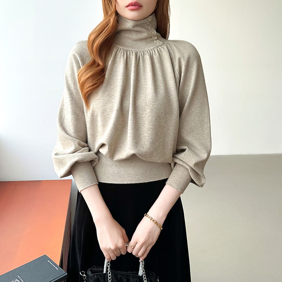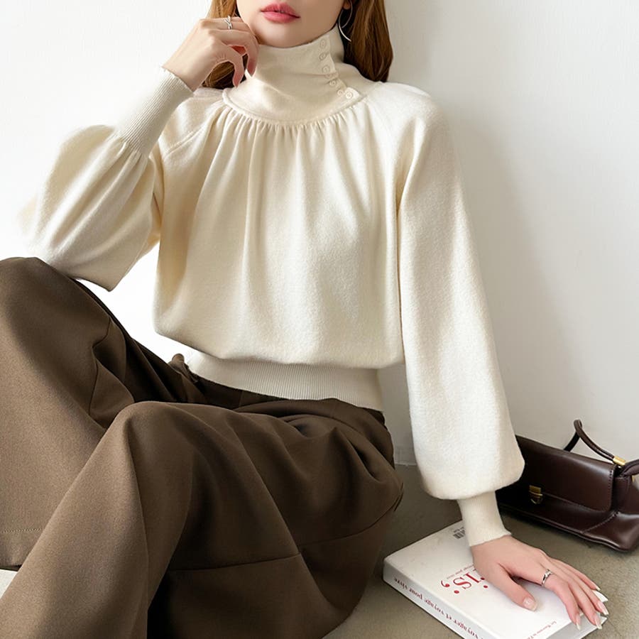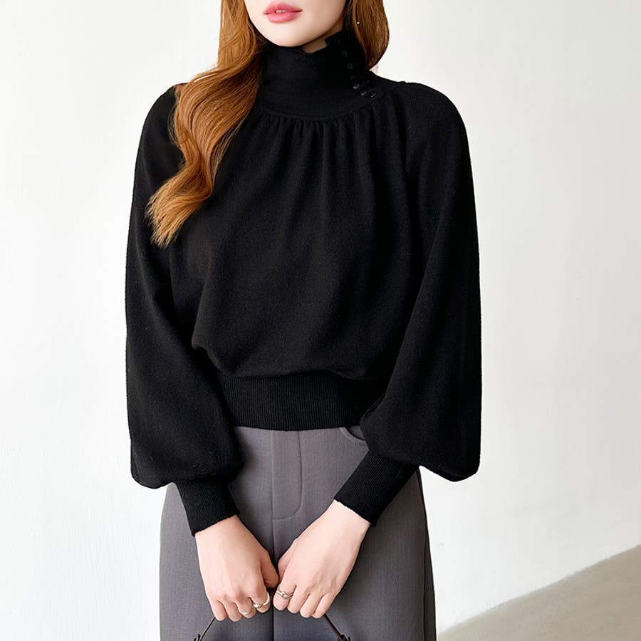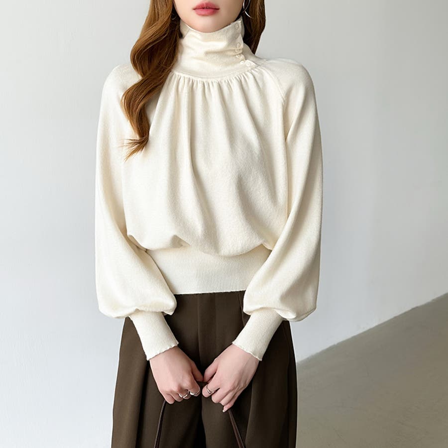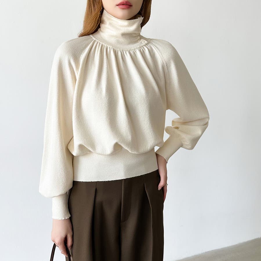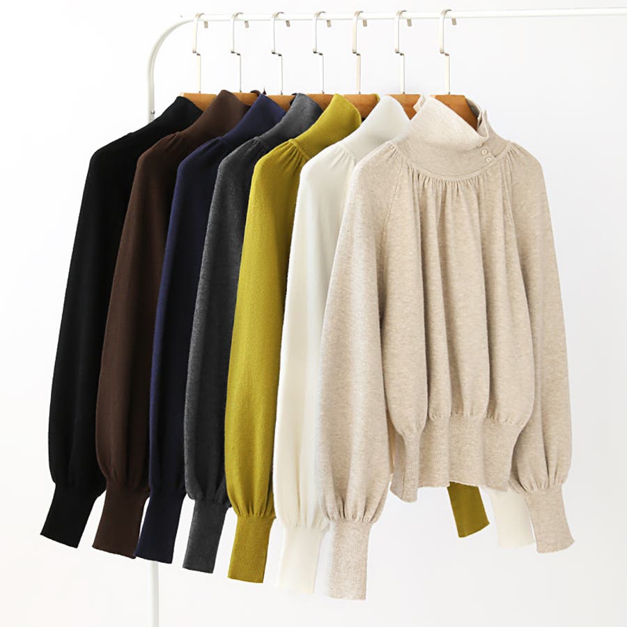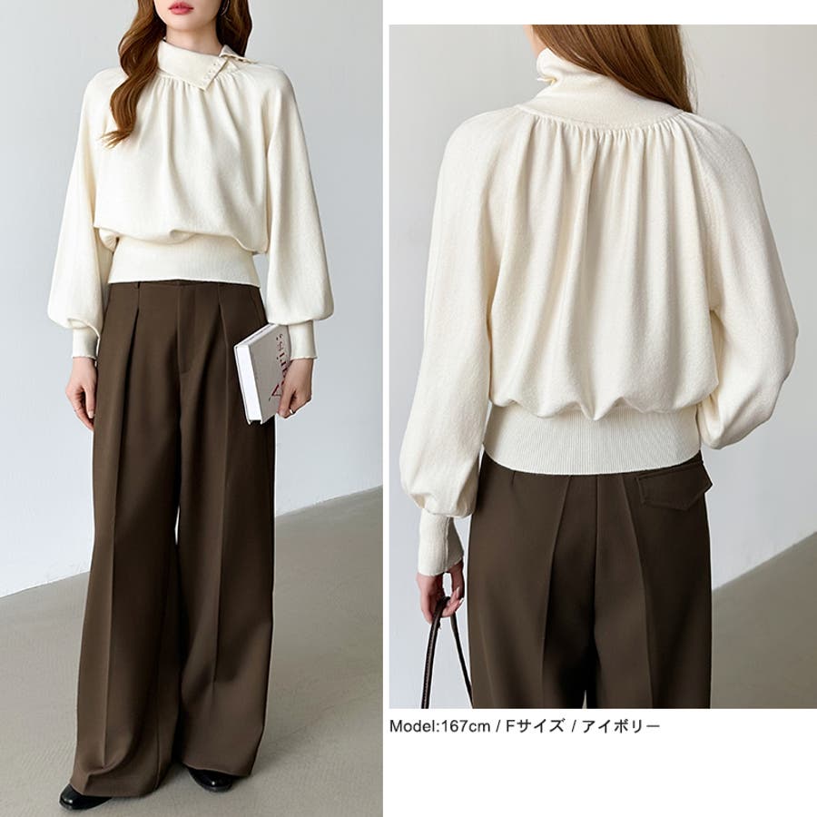 2wayネックバルーンスリーブニット ハイネック ニット