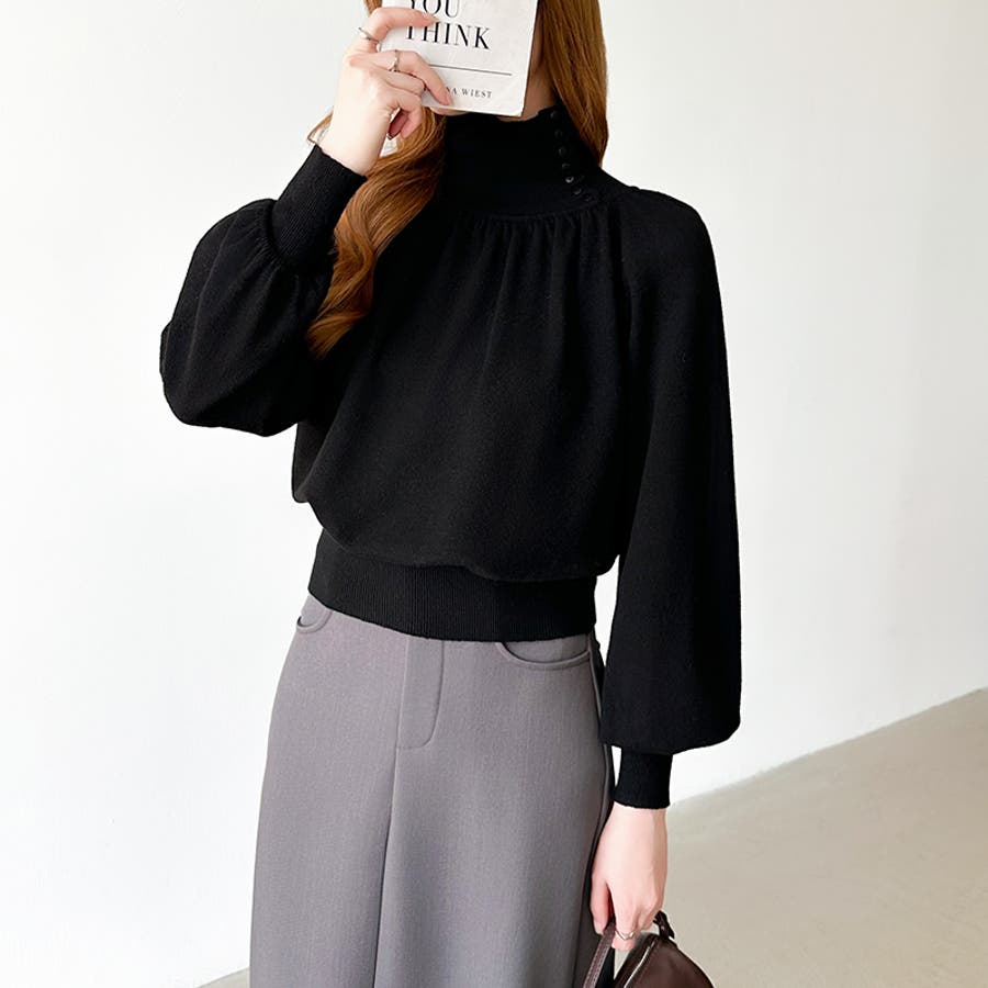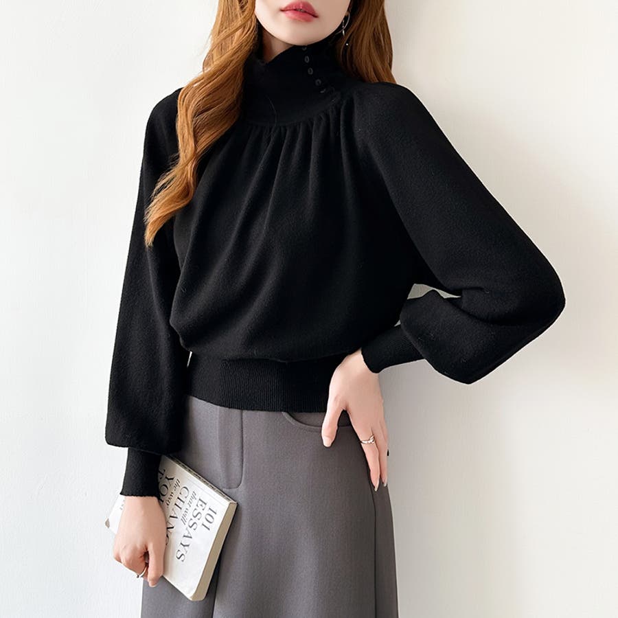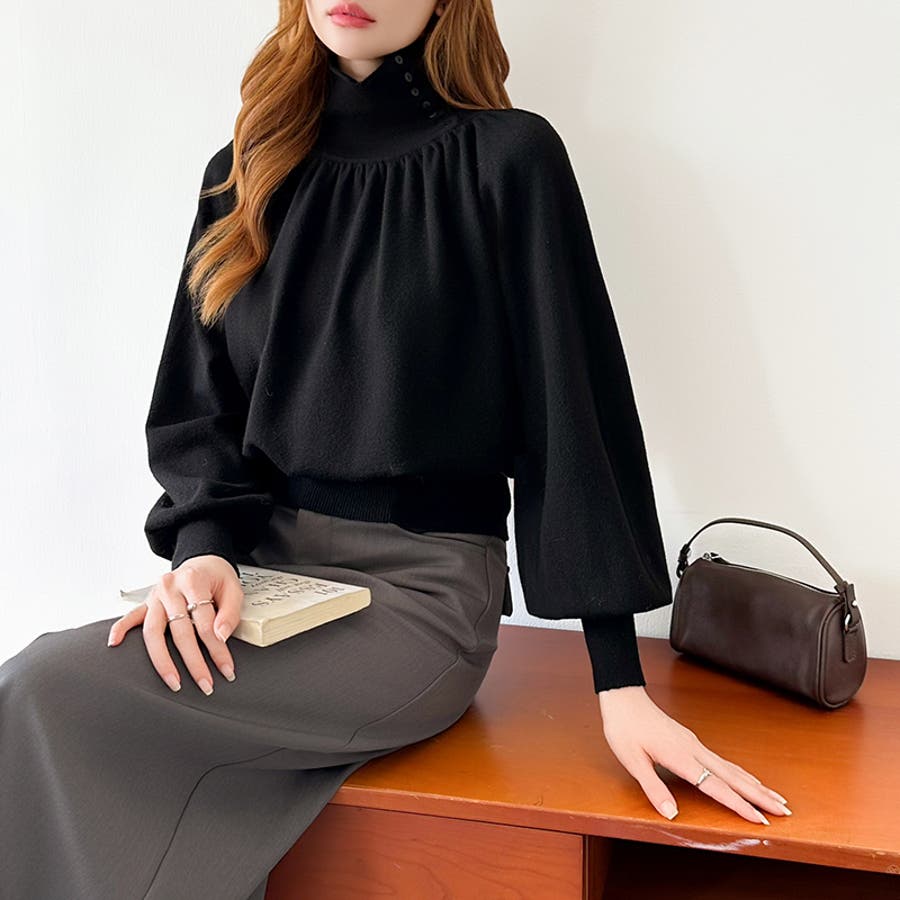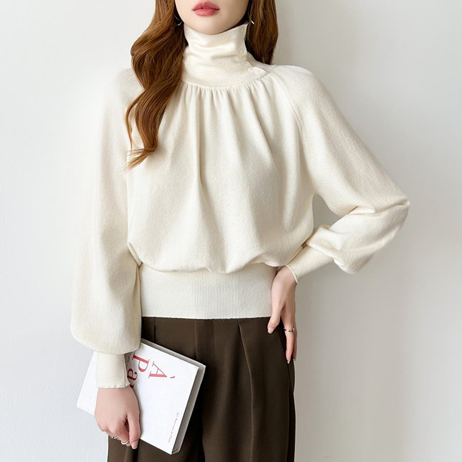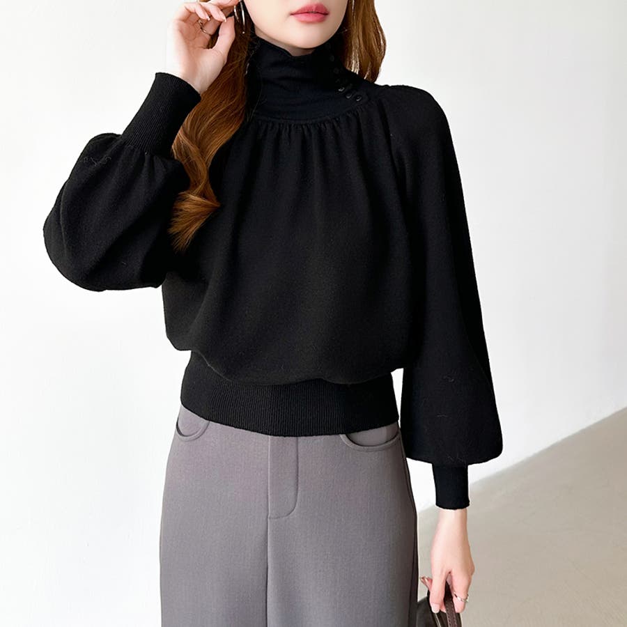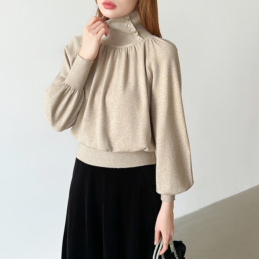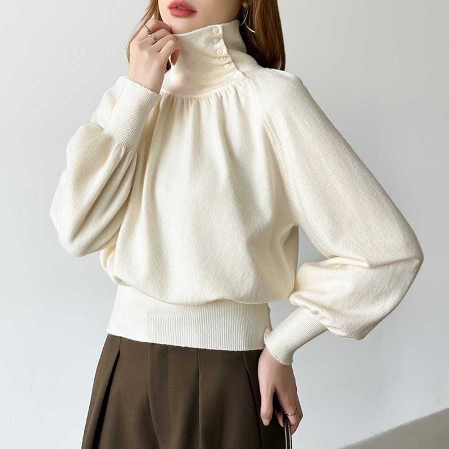 2wayネックバルーンスリーブニット ハイネック ニット