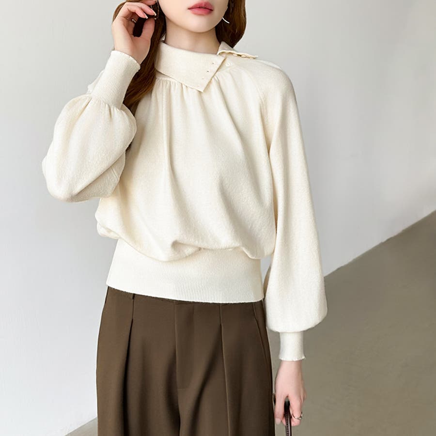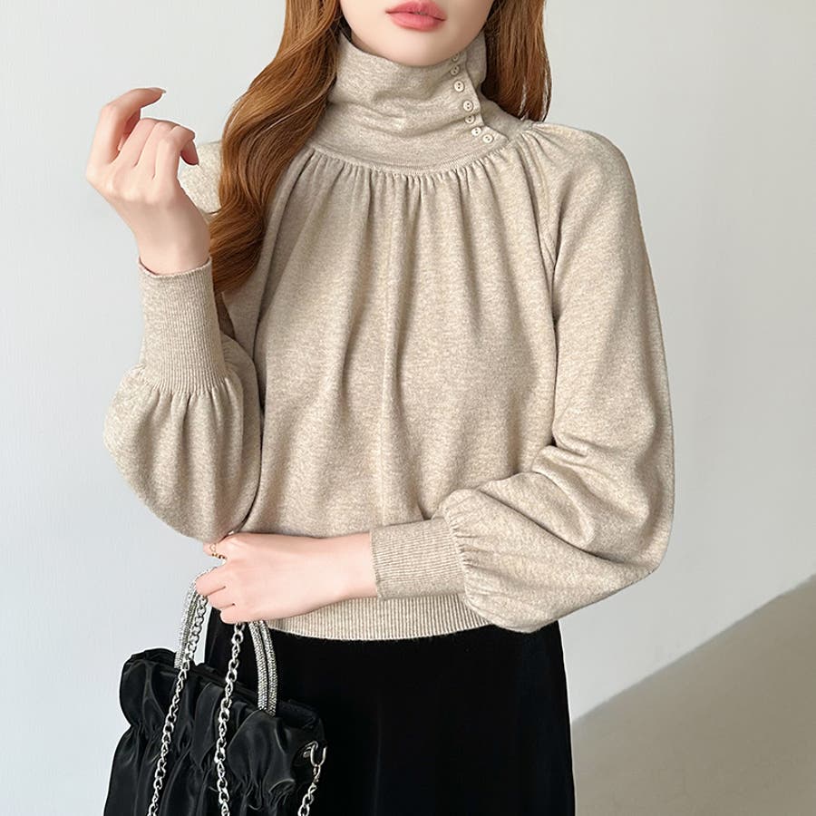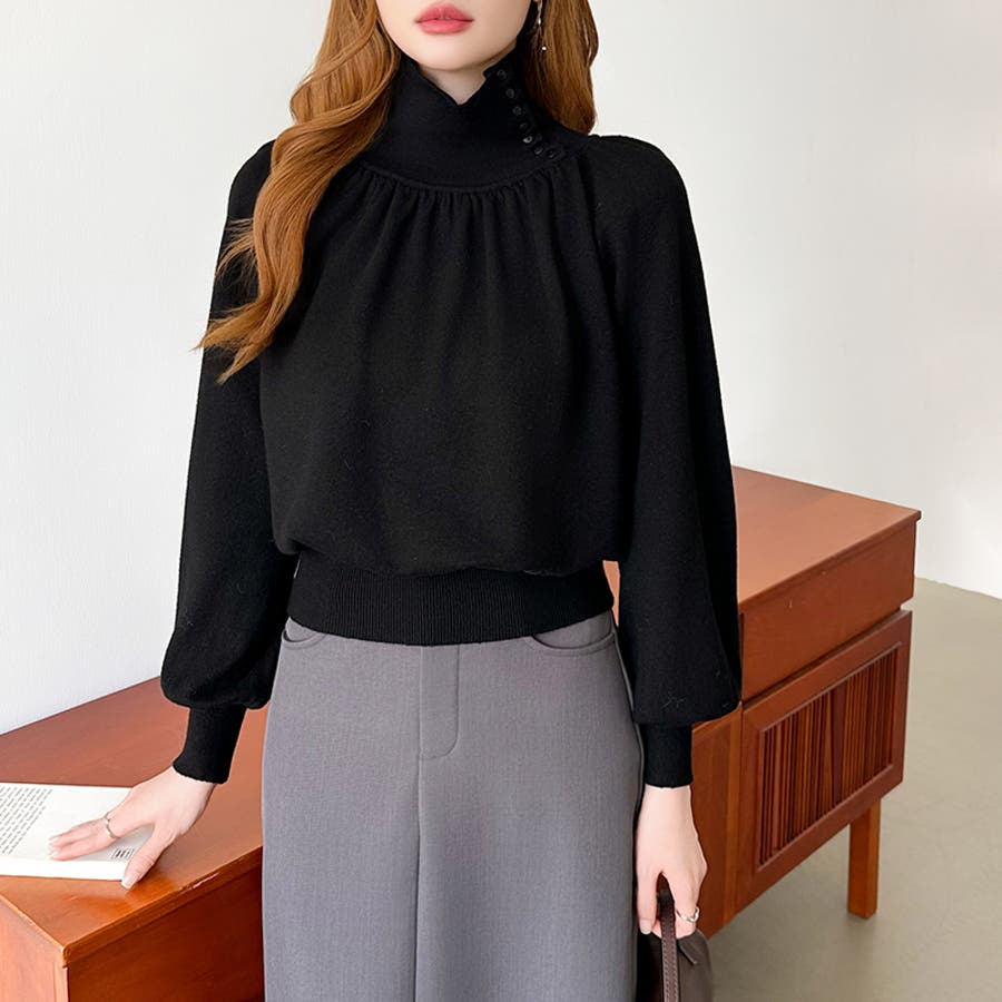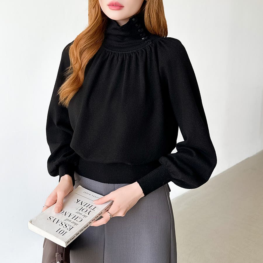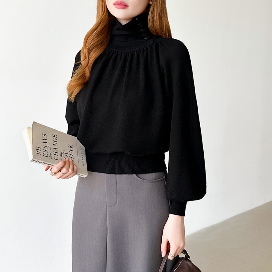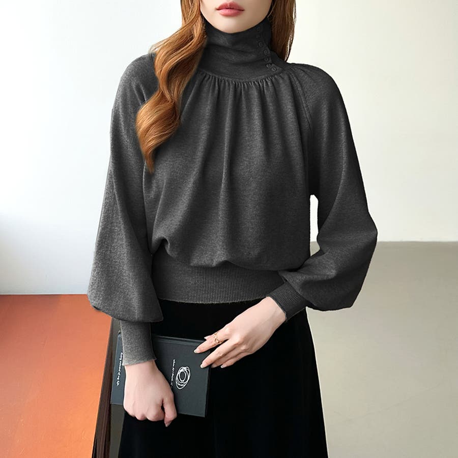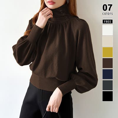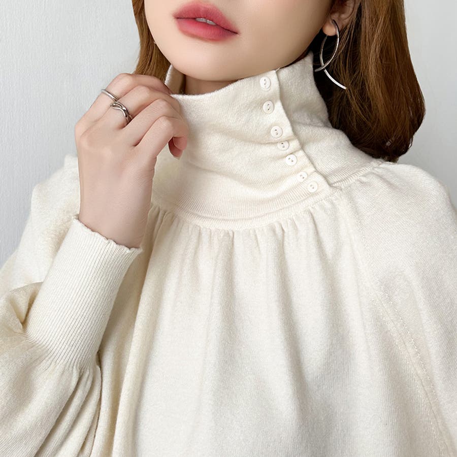 2wayネックバルーンスリーブニット ハイネック ニット