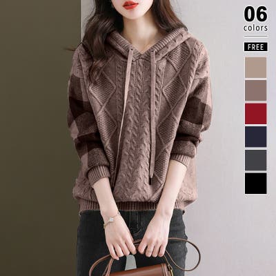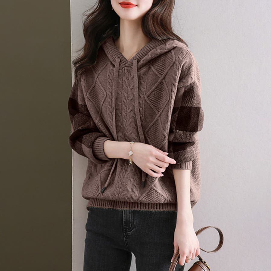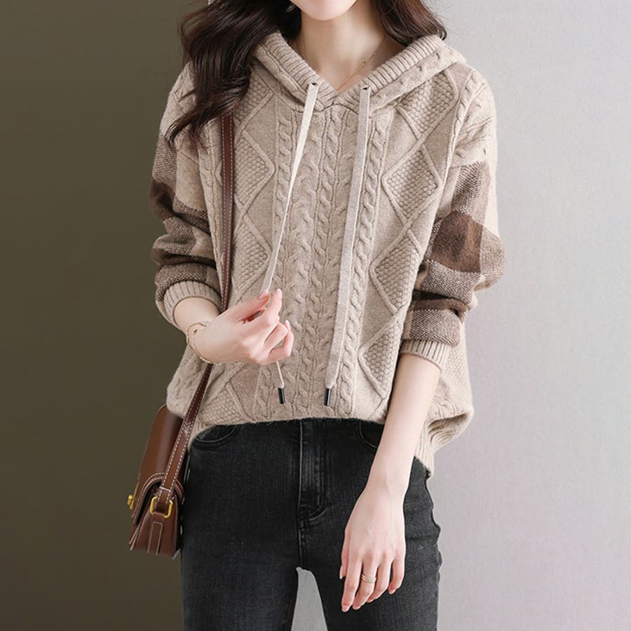 ケーブル編みニット ニットパーカー ニットセーター
