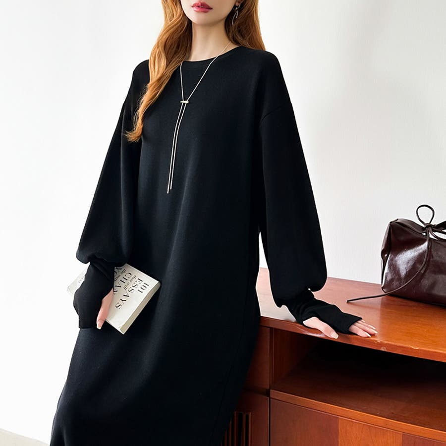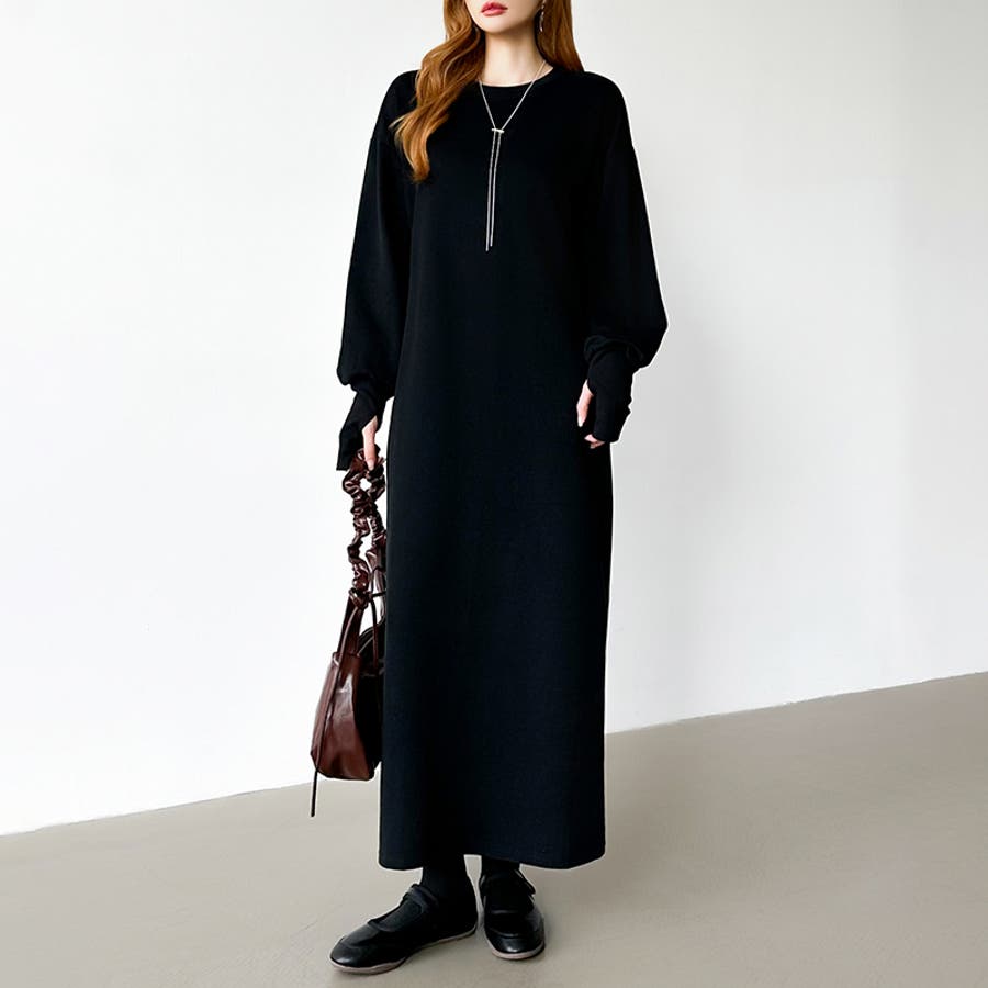 ボリュームスリーブワンピース ロングワンピース 指穴付き
