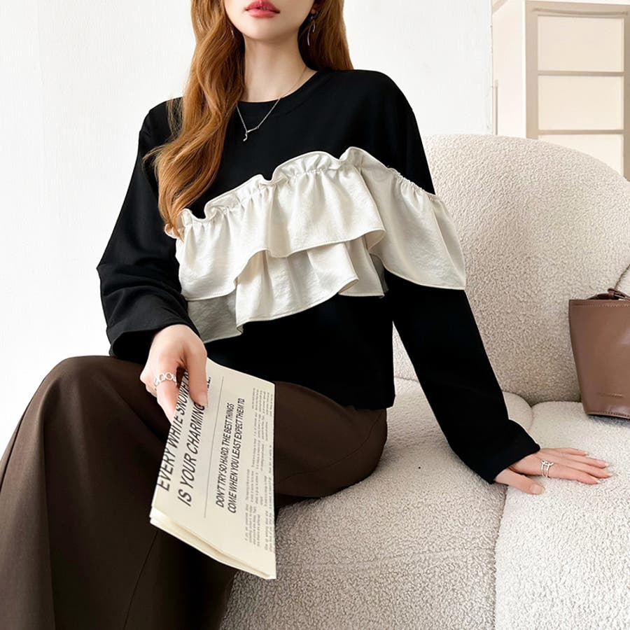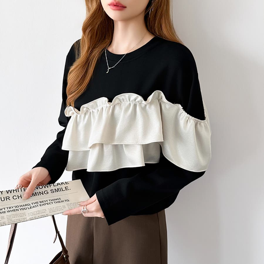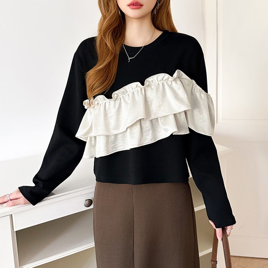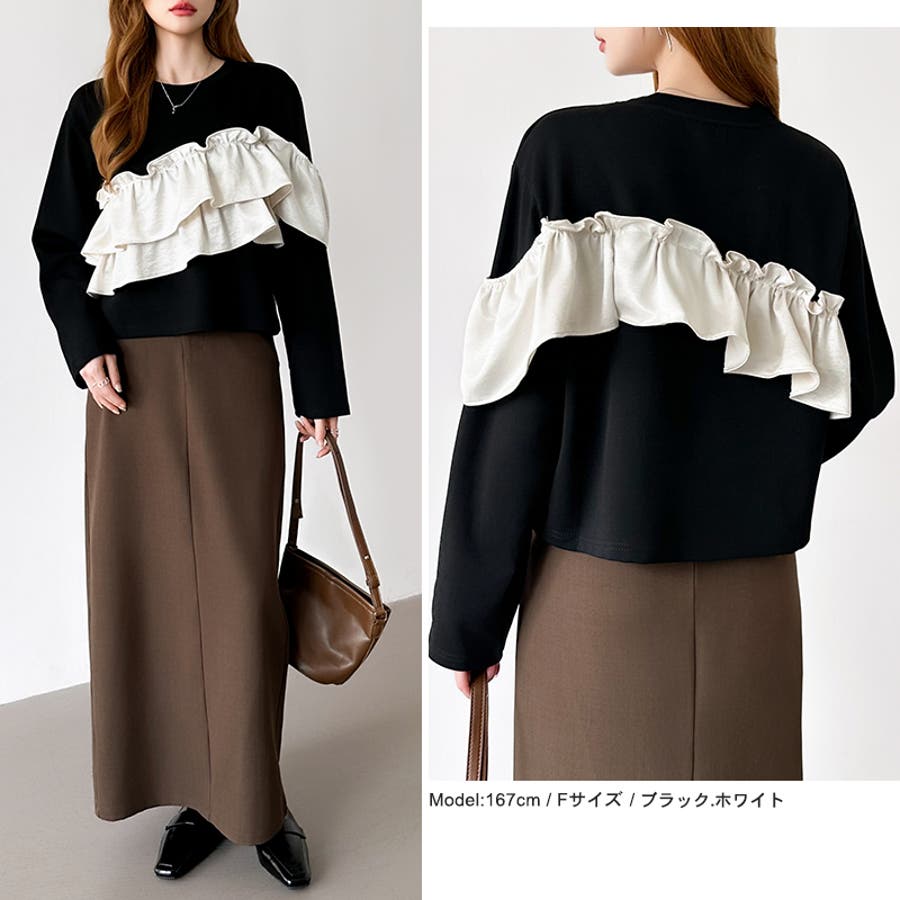 フリルトップス フリル ドッキング トップス カットソー 長袖 レディース アシンメトリー ロンt オフショルダー風 おしゃれ クルーネック カットソープルオーバー ラッフルフリル アシメ オフショル風 胸元 フリルTシャツ きれいめ tシャツ 長袖tシャツ かわいい 異素材 切り替え 異素材切り替え ギャザー ロンT フリルカットソー 長袖カットソー かっとそー ロングtシャツ ロングTシャツ Tシャツ ろんT プルオーバー 丸首 ネック ラウンドネック フリル付き 付き 無地 伸縮性 ストレッチ お出かけ おでかけ 旅行 フェミニン カジュアル 華やか 綺麗 キレイめ きれい め 大人 オトナ 可愛い 大人可愛い 大人かわいい オトナ女子 オシャレ 女性 母 母親 女 ママ ママコーデ プチプラ 高見え 高級感 レンド ヒット 商品 おすすめ 服 ファッション コーデ フリー サイズ フリーサイズ ホワイト 白 ブラックホワイト ブラック 黒 白黒 黒白 春トップス 春トップスレディース 秋トップス 秋トップスレディース 冬トップス 冬トップスレディース レディース春 レディース秋 レディース冬 レディース秋冬 レディース秋物 長袖トップスレディース 長袖トップスおしゃれ トップスレディース トップスレディース長袖 レディーストップス 長袖レディース 新作 春秋 秋冬 春 秋 冬 春服 秋服 冬服 春物 秋物 春用 秋用 韓国 韓国ファッション 10代 20代 30代 40代 50代 60代 70代 cocomomo ココモモ