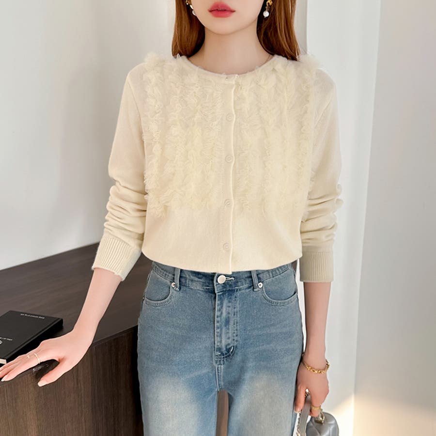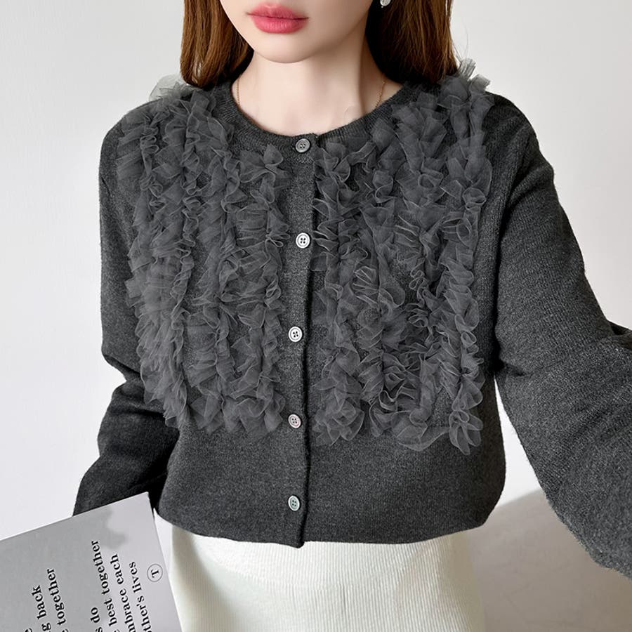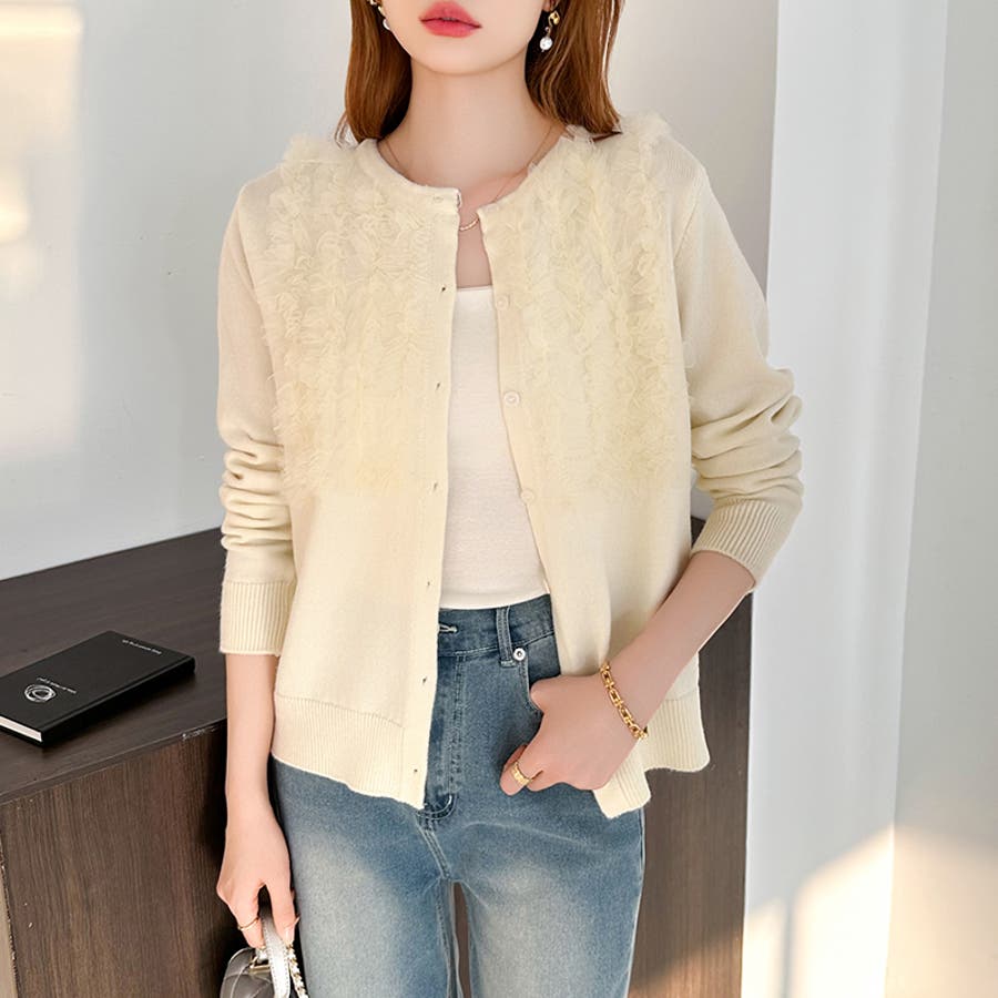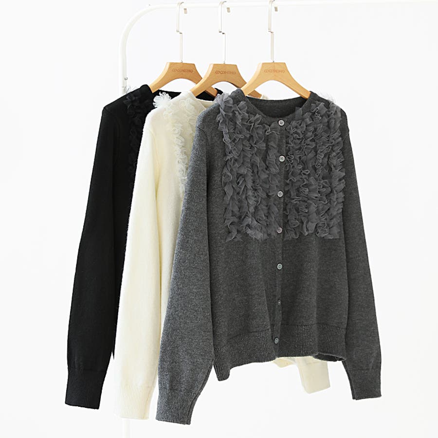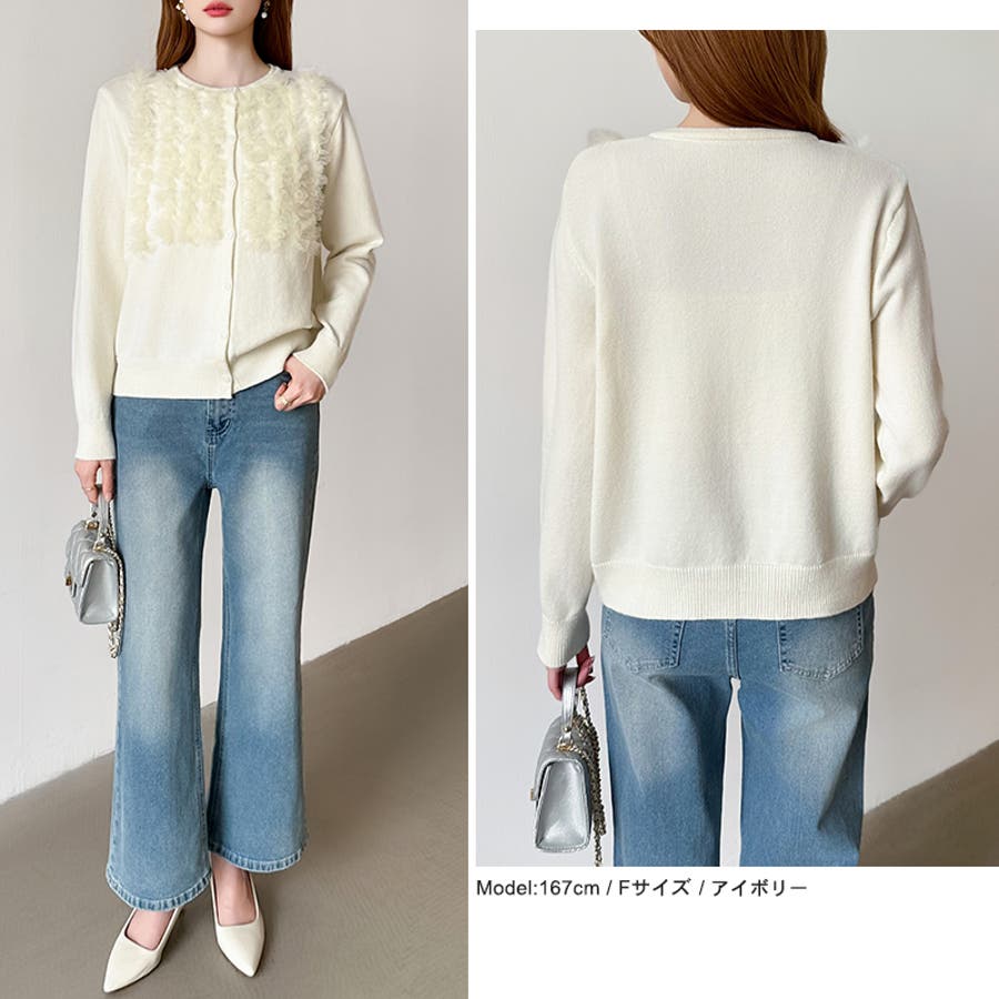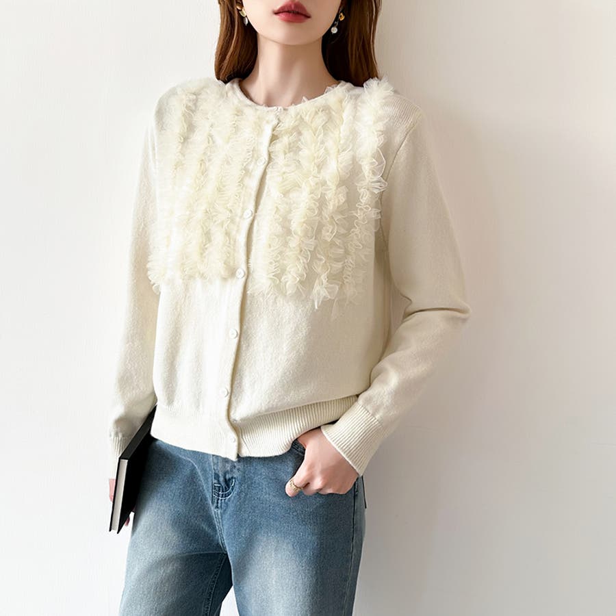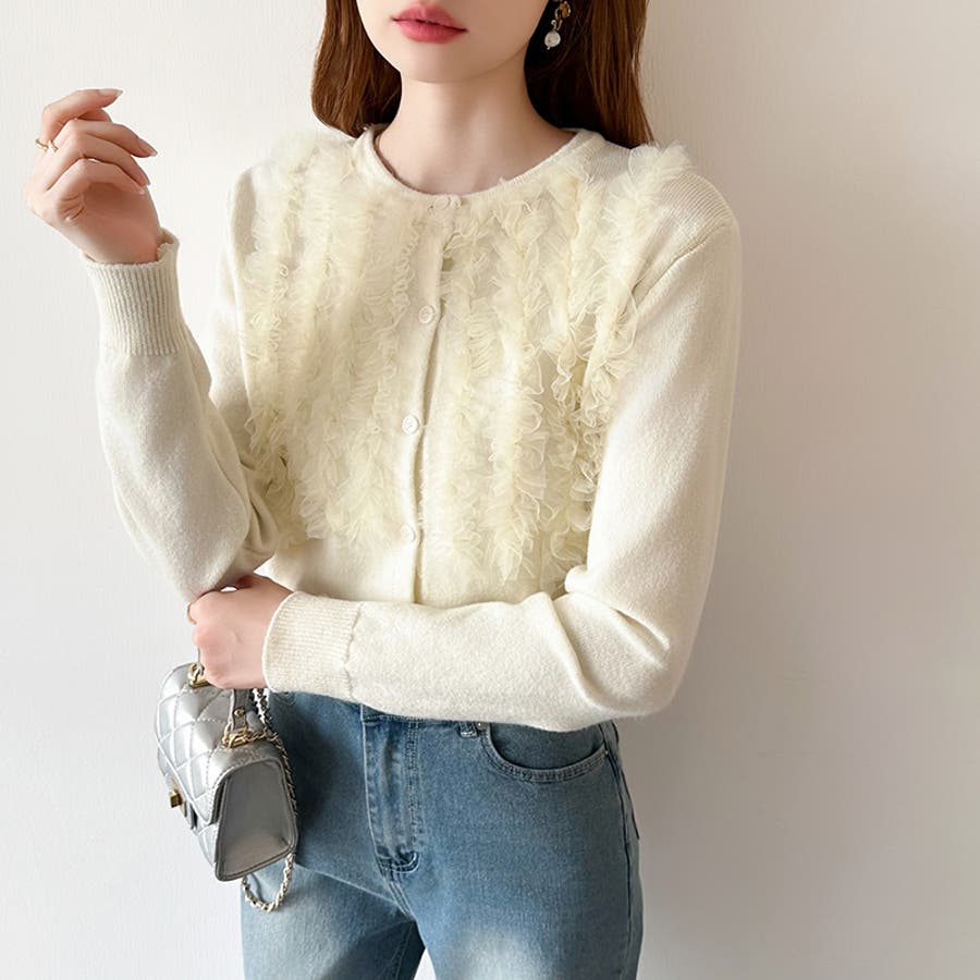 カーディガン チュールフリルカーディガン レディース チュール フリル ニットカーディガン きれいめ トップス 長袖 クルーネック 丸首 ニット クルーネックカーディガン オフィス オフィスカジュアル 大人 羽織 おしゃれ 重ね着 レイヤード ニットトップス きれいめカーディガン ニットカーデ ニットセーター 羽織り 羽織りもの 上着 tops 着回し 伸縮性 ストレッチ 前開き 前あき 柔らかい やわらかい 洗える 暖 暖かい あったかい セレモニー 食事会 デート おでかけ お出かけ 旅行 オフィスカジュアル秋冬 オフィカジ カジュアル フェミニン 韓国風 韓国服 華やか 上品 大人カジュアル 大人可愛い 大人かわいい かわいい 可愛い きれい め きれいめカジュアル 大人カジュアル オシャレ 女性 プチプラ 高見え トレンド ヒット 商品 おすすめ 服 服装 ファッション コーデ コーディネート アイボリー ダークグレー グレー 灰色 ブラック 黒 春ニット 秋ニット 冬ニット 春トップス 秋トップス 冬トップス 秋トップスレディース レディース秋冬 レディース春 レディース秋 レディース冬 レディース秋物 レディース秋冬トップス 羽織りものレディース トップスレディース トップスレディース長袖 レディーストップス 長袖レディース 二ットレディース 長袖トップス 長袖トップスレディース 長袖トップスおしゃれ ニットカーディガンレディース 新作 春秋 秋冬 春 秋 冬 春服 秋服 冬服 春物 秋物 冬物 春用 秋用 冬用 韓国 韓国ファッション 10代 20代 30代 40代 50代 60代 70代 cocomomo ココモモ