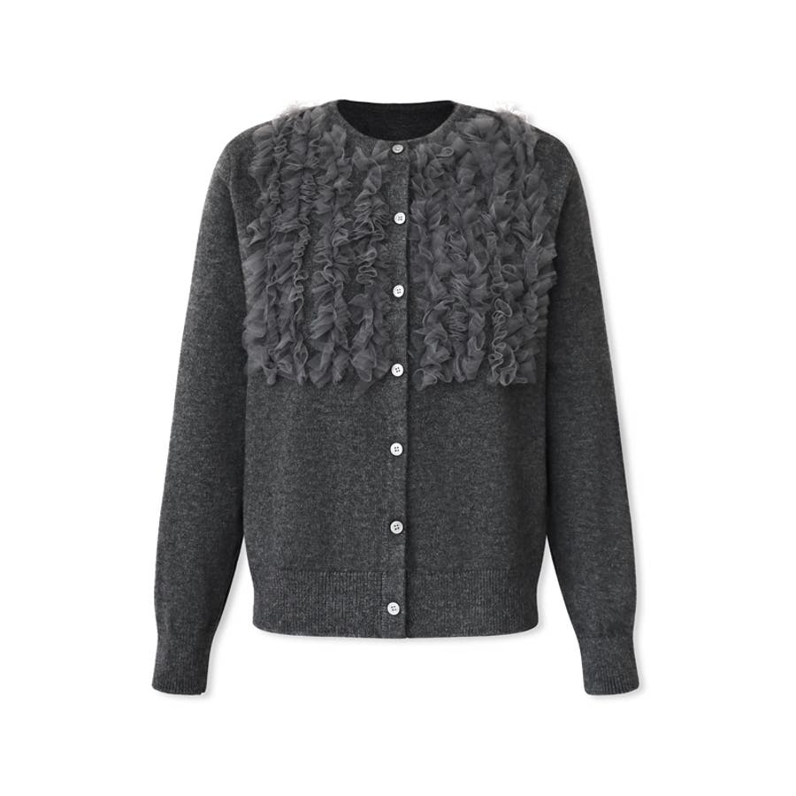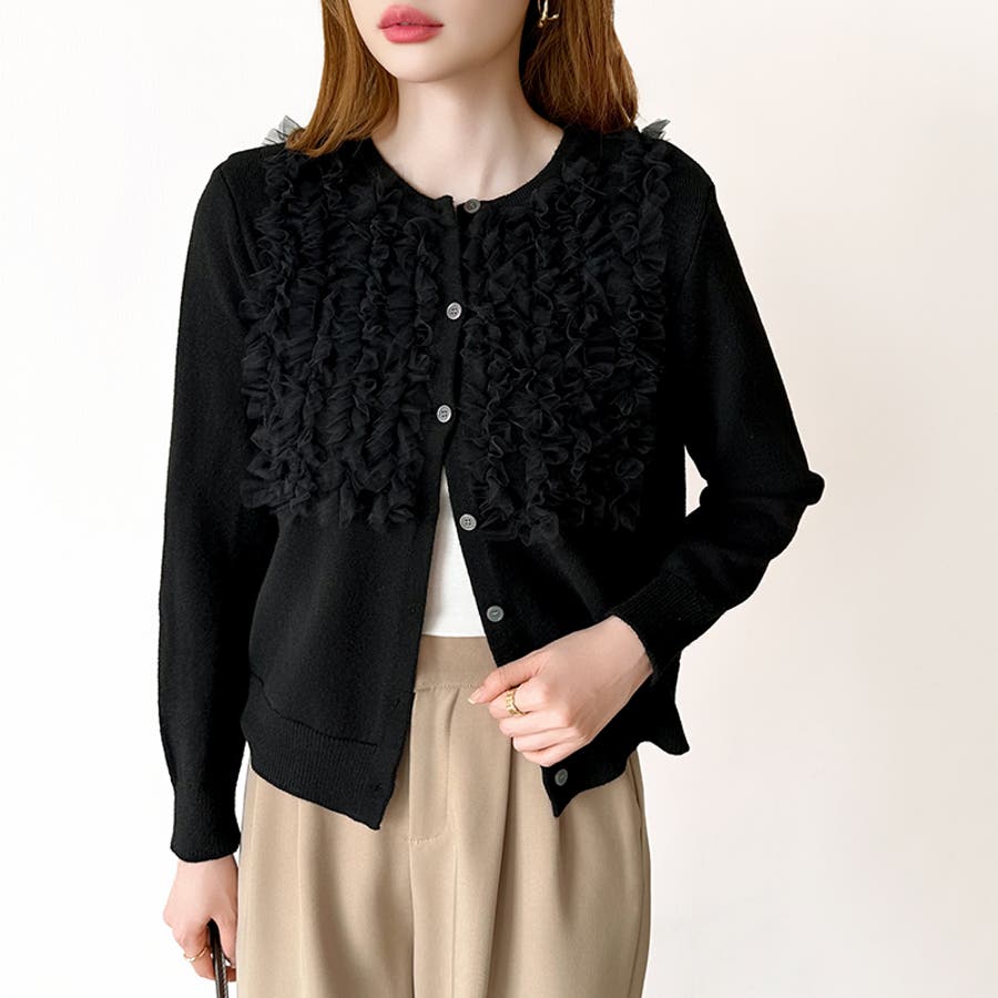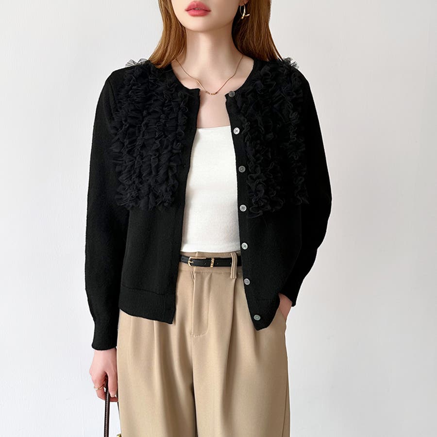 大人のニュアンスを重ねるチュールフリルカーディガン カーディガン チュール