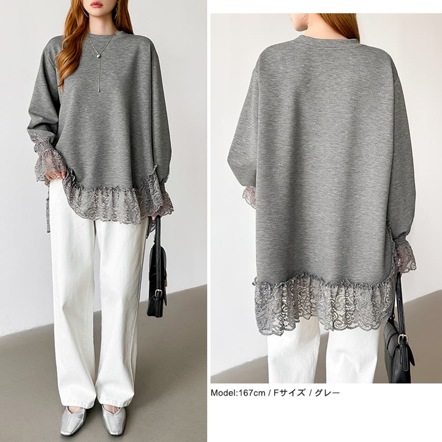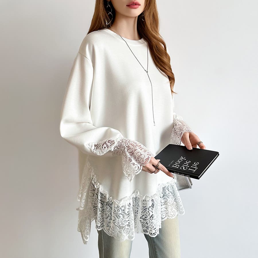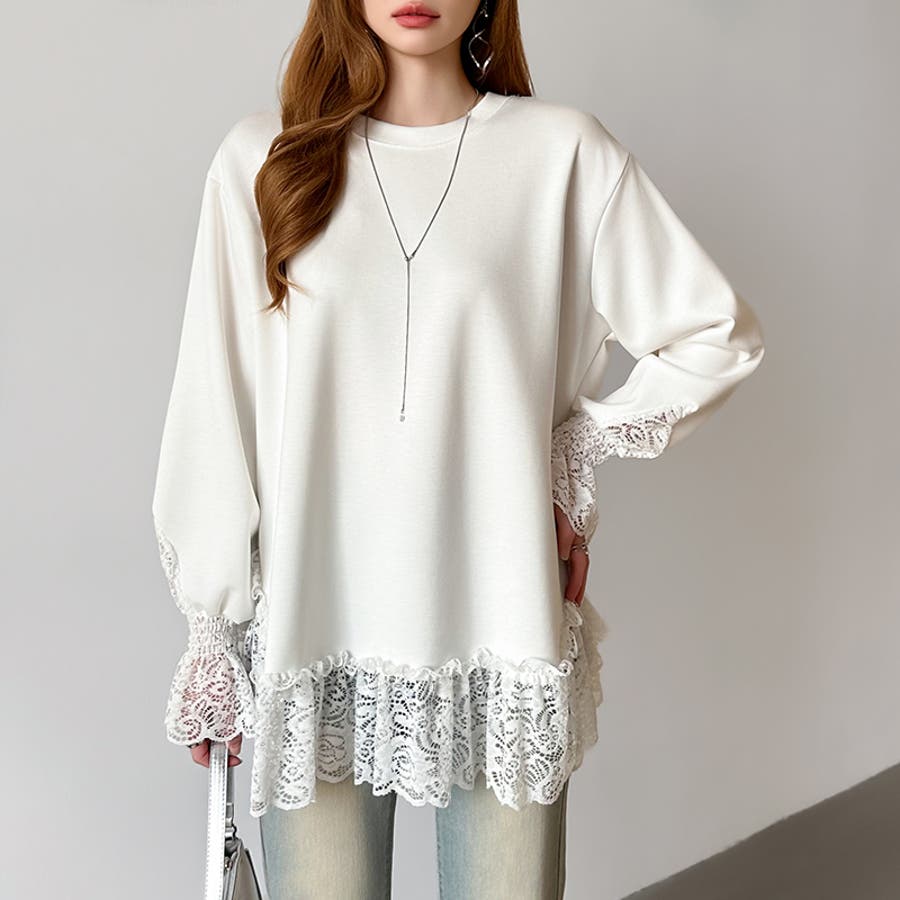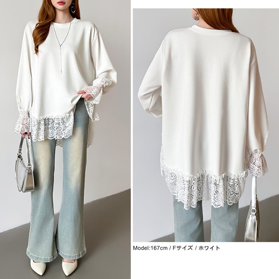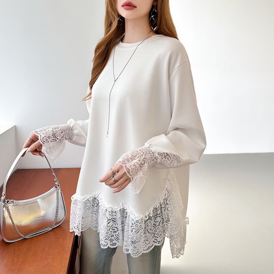 レース切り替えチュニックトップス レーストップス オーバーサイズ