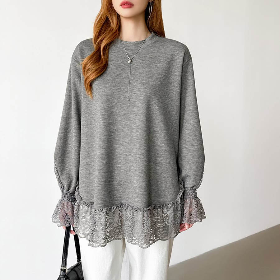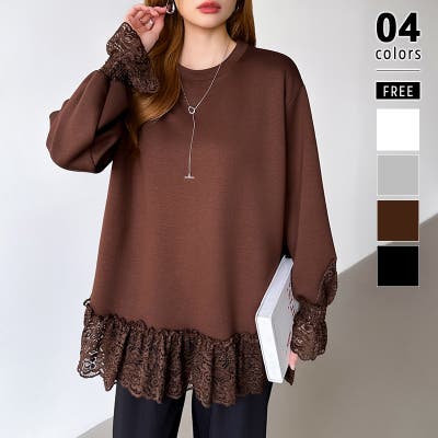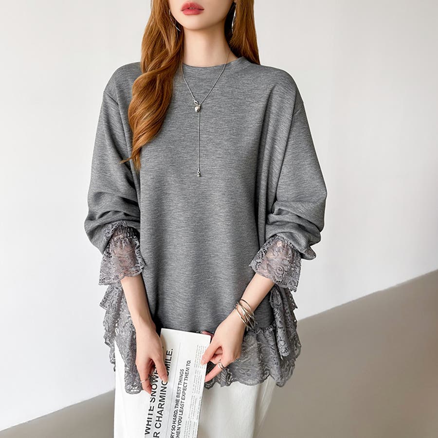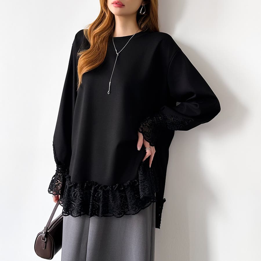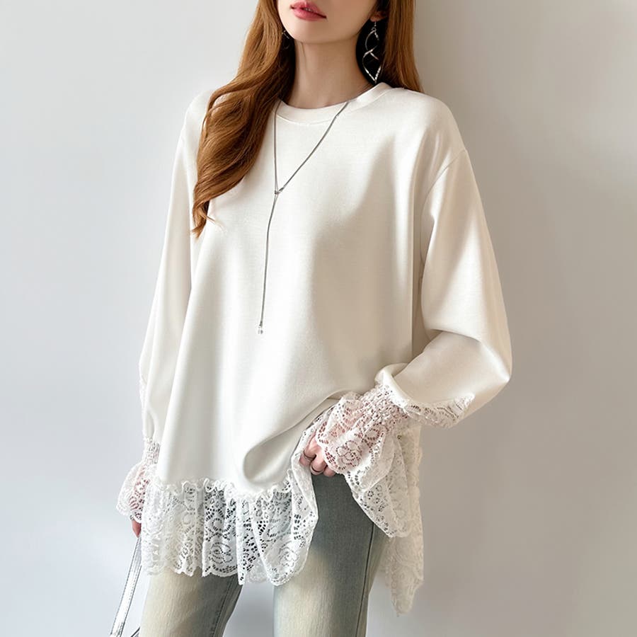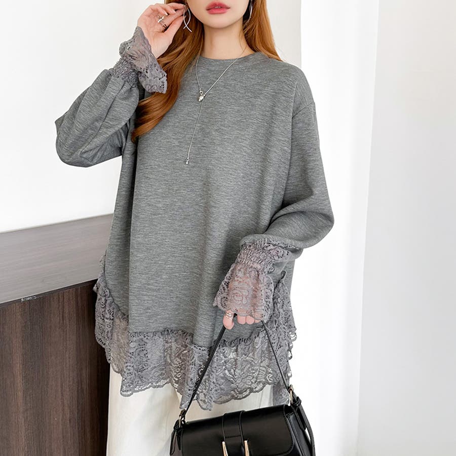 レース切り替えチュニックトップス レーストップス オーバーサイズ