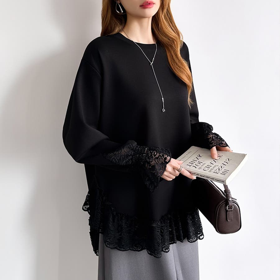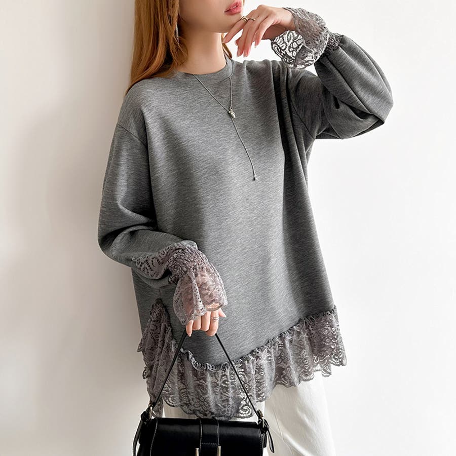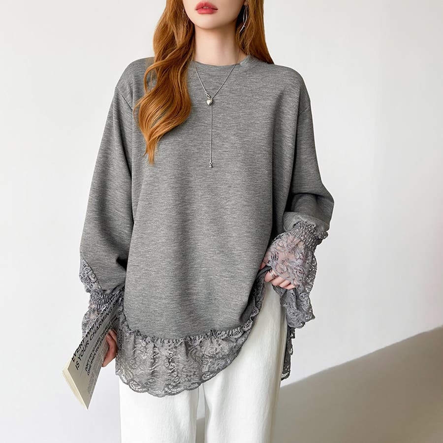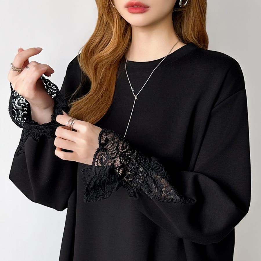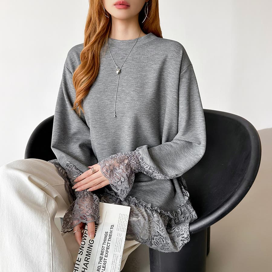 レース切り替えチュニックトップス レーストップス オーバーサイズ