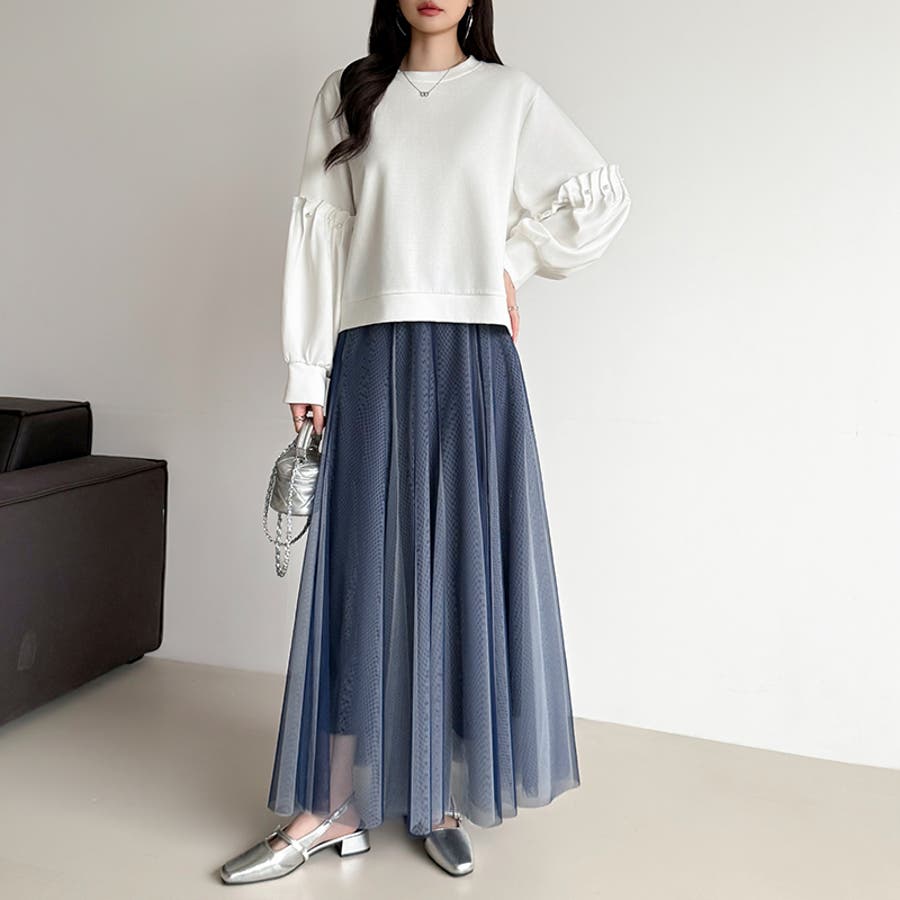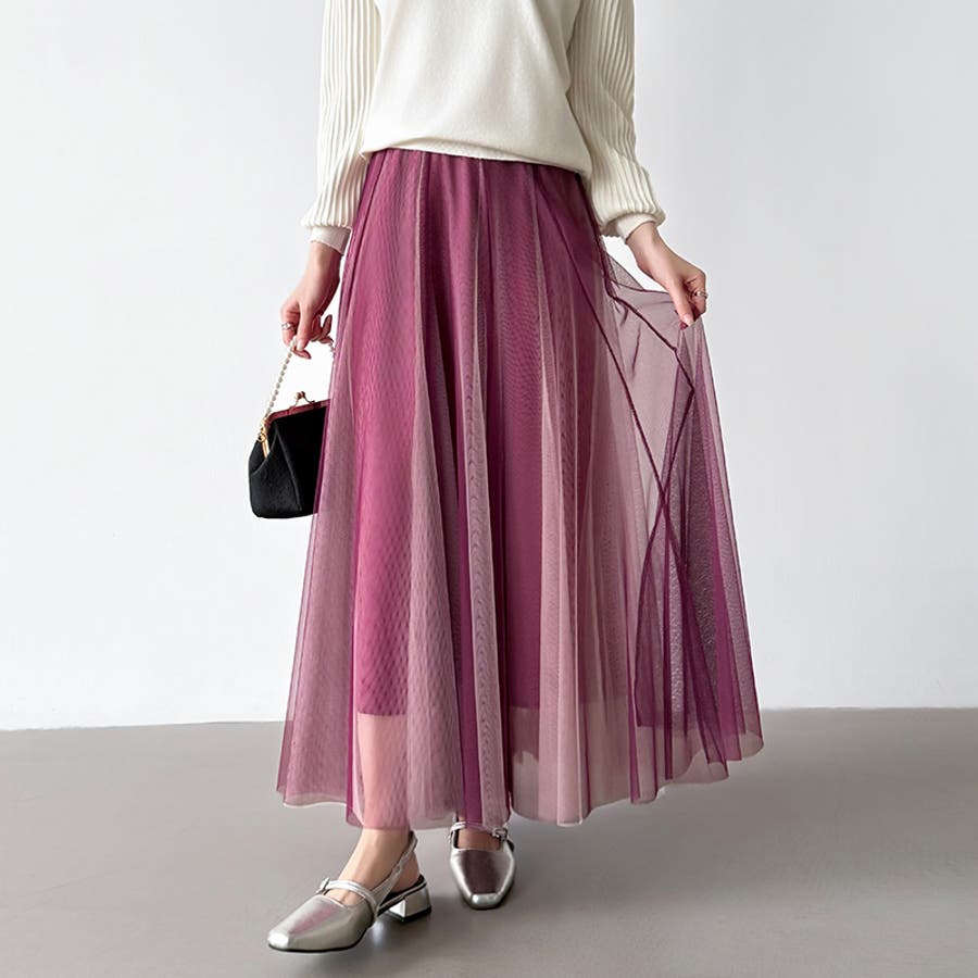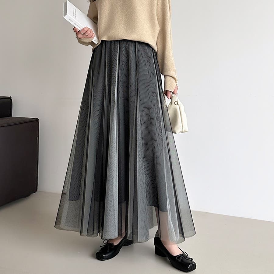 動くたび、表情が変わるチュールスカート ロングスカート スカート