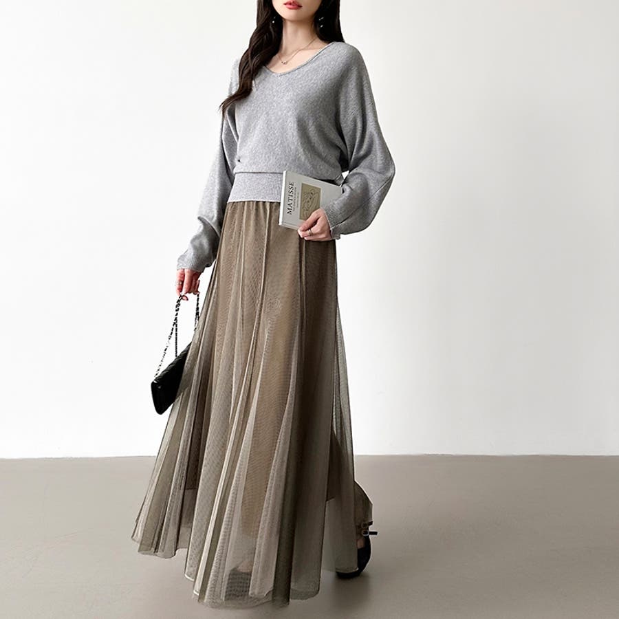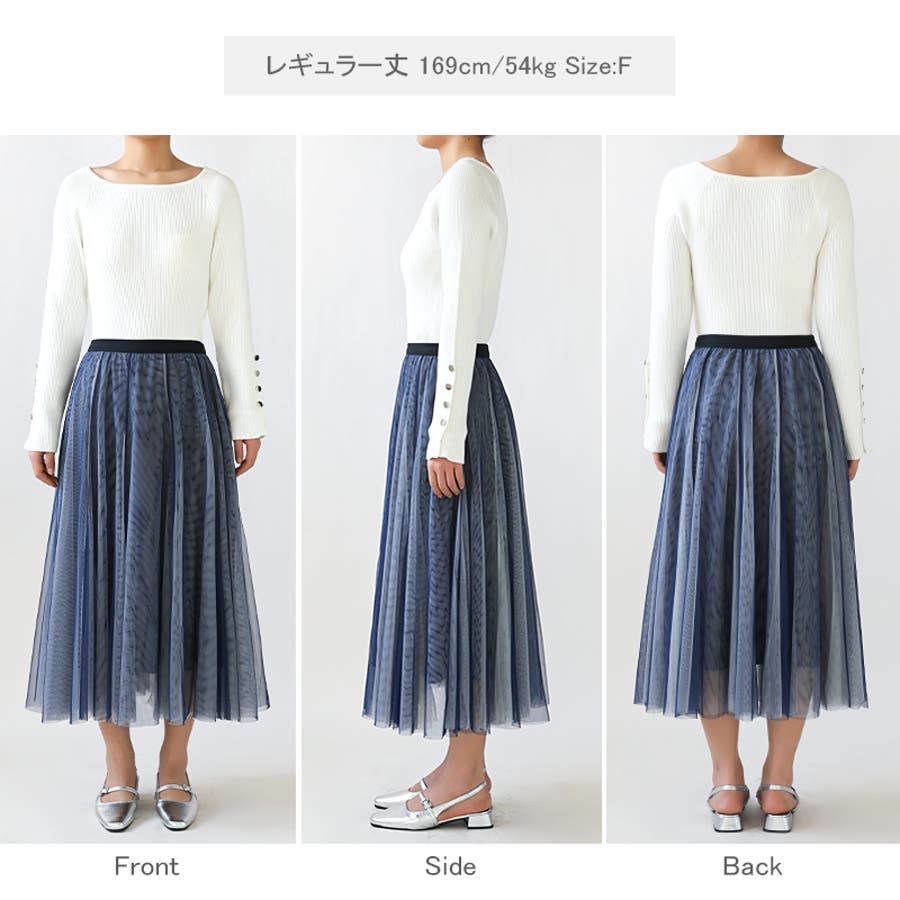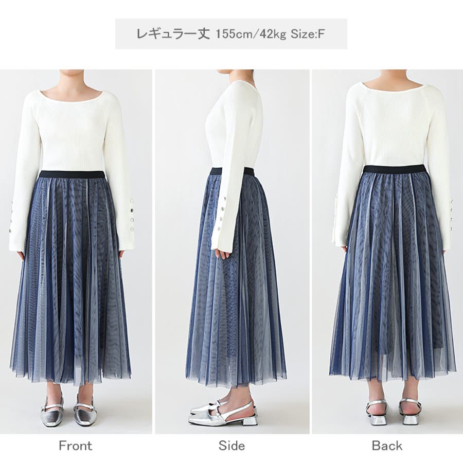 二色のチュールを重ねて 動きや光で色味の見え方が変わる レイヤードチュールスカート。 動くたび、光の当たり方で色の ニュアンスが変わり、シンプルな トップスも華やかな印象に。 程よいボリューム感で甘くなりすぎず 大人っぽく着こなせます。 レギュラー丈・ロング丈の2丈展開で 身長や好みに合わせて選べるのも 嬉しいポイント。