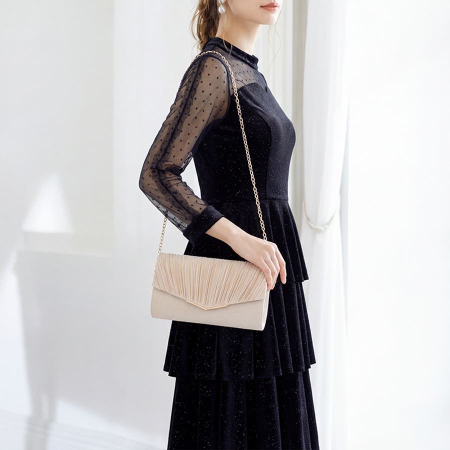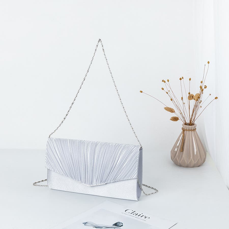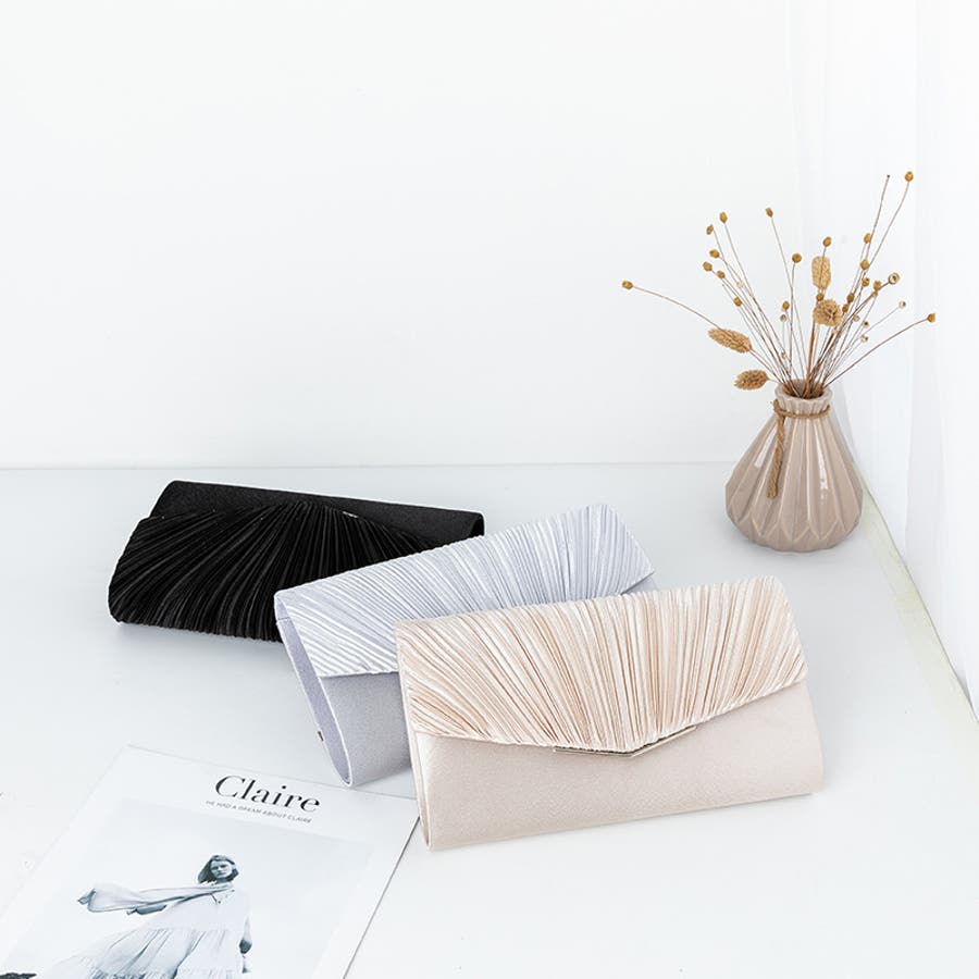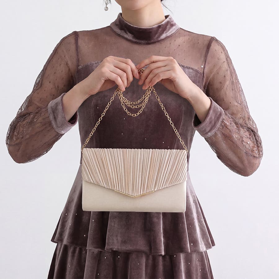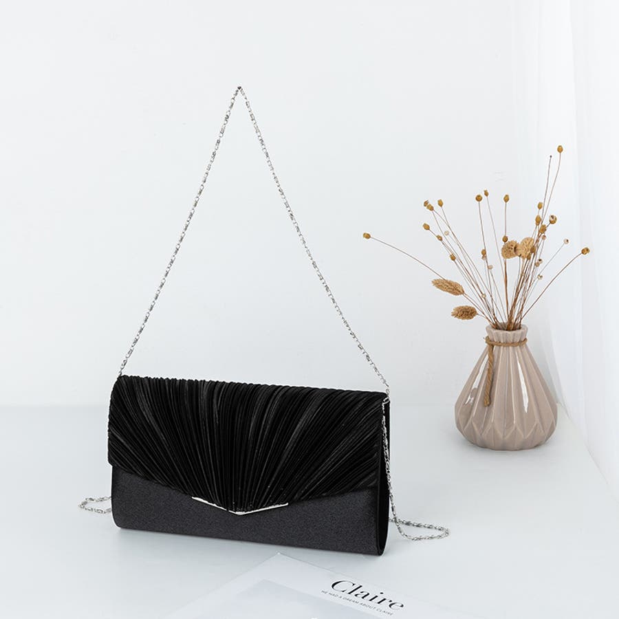 1つで3役、気品漂うサテンプリーツバッグ パーティーバッグ 結婚式