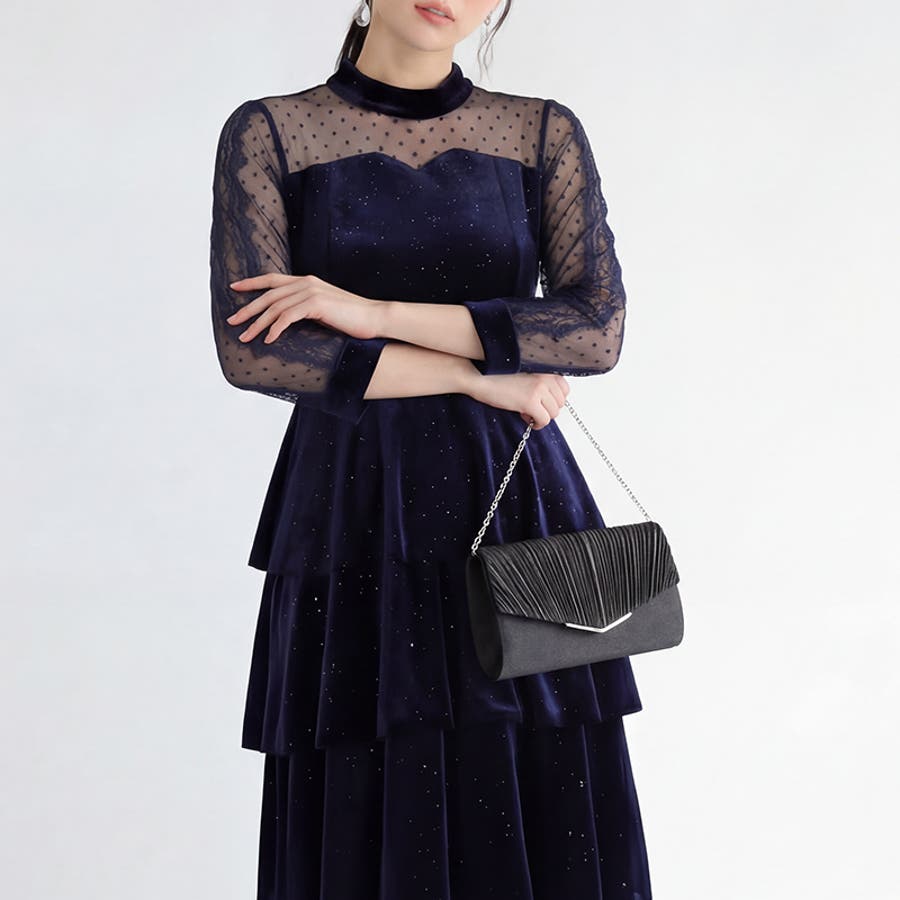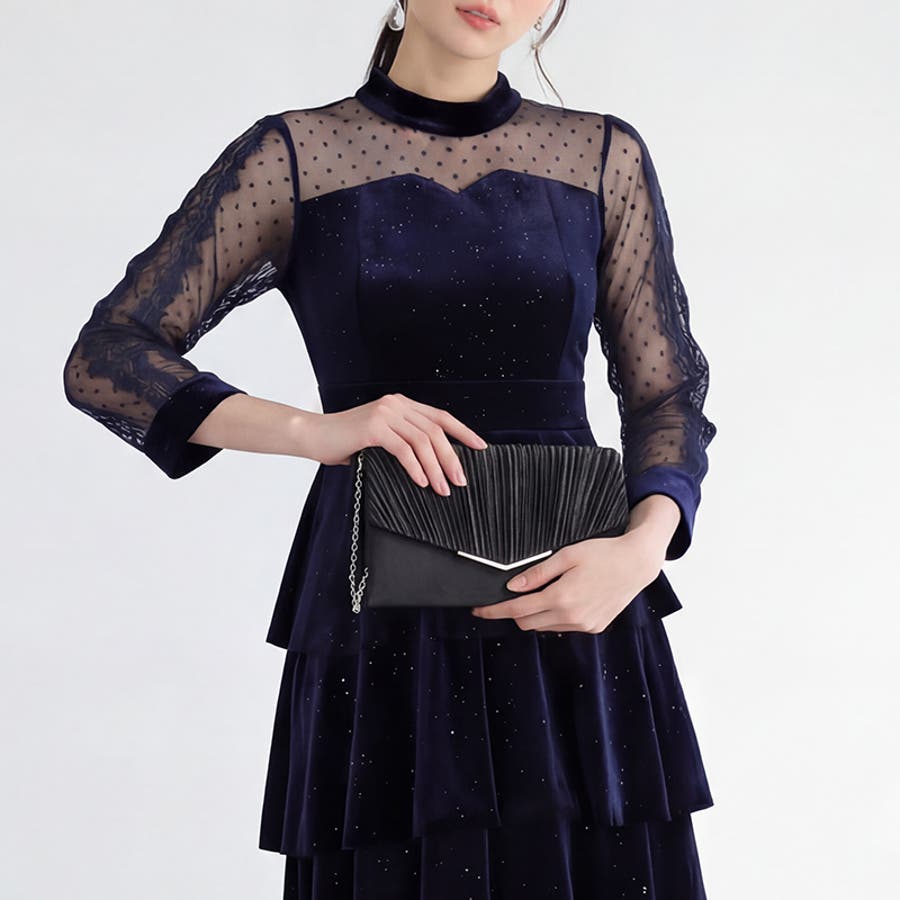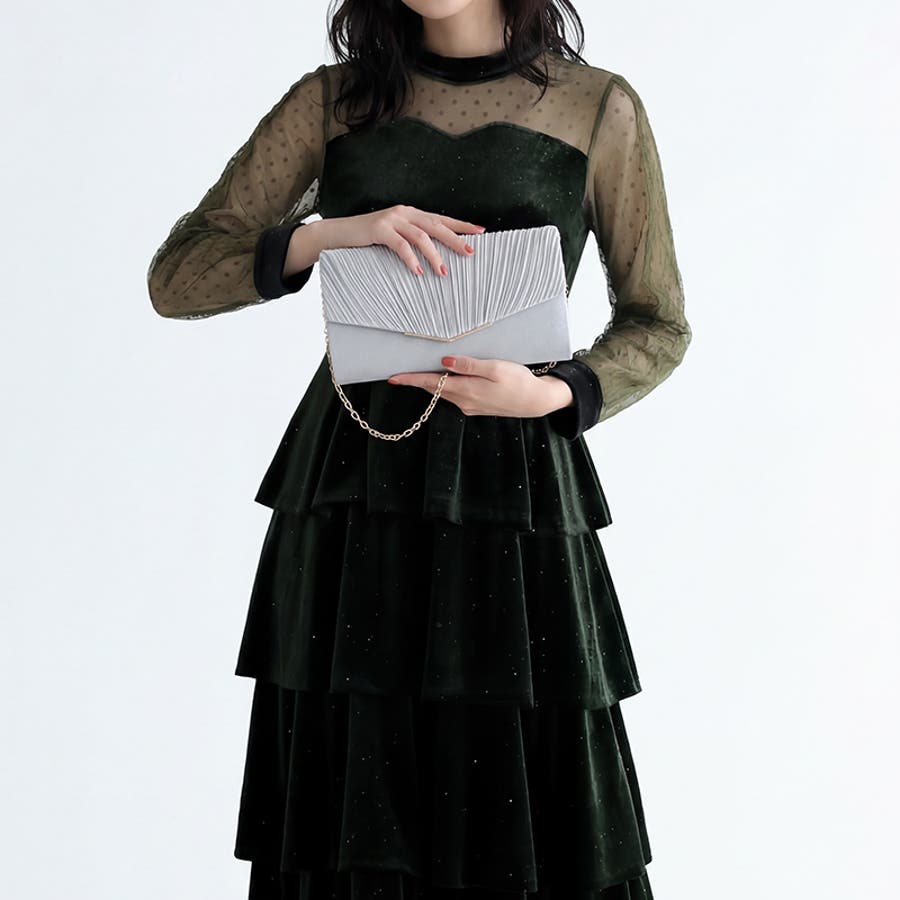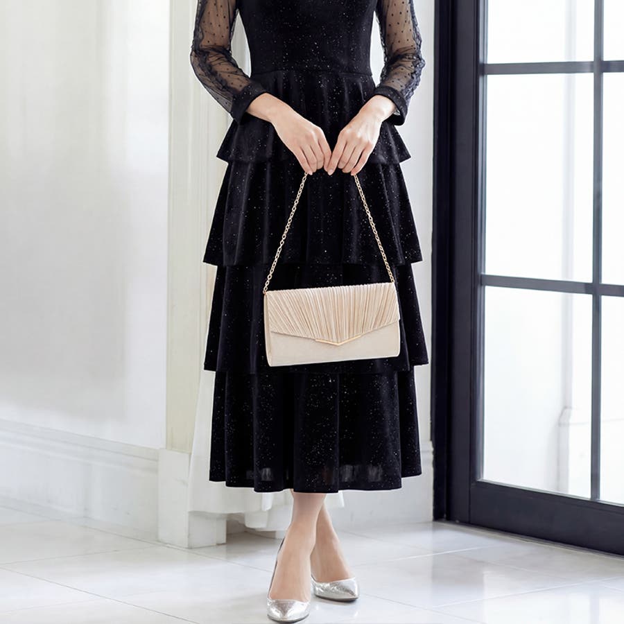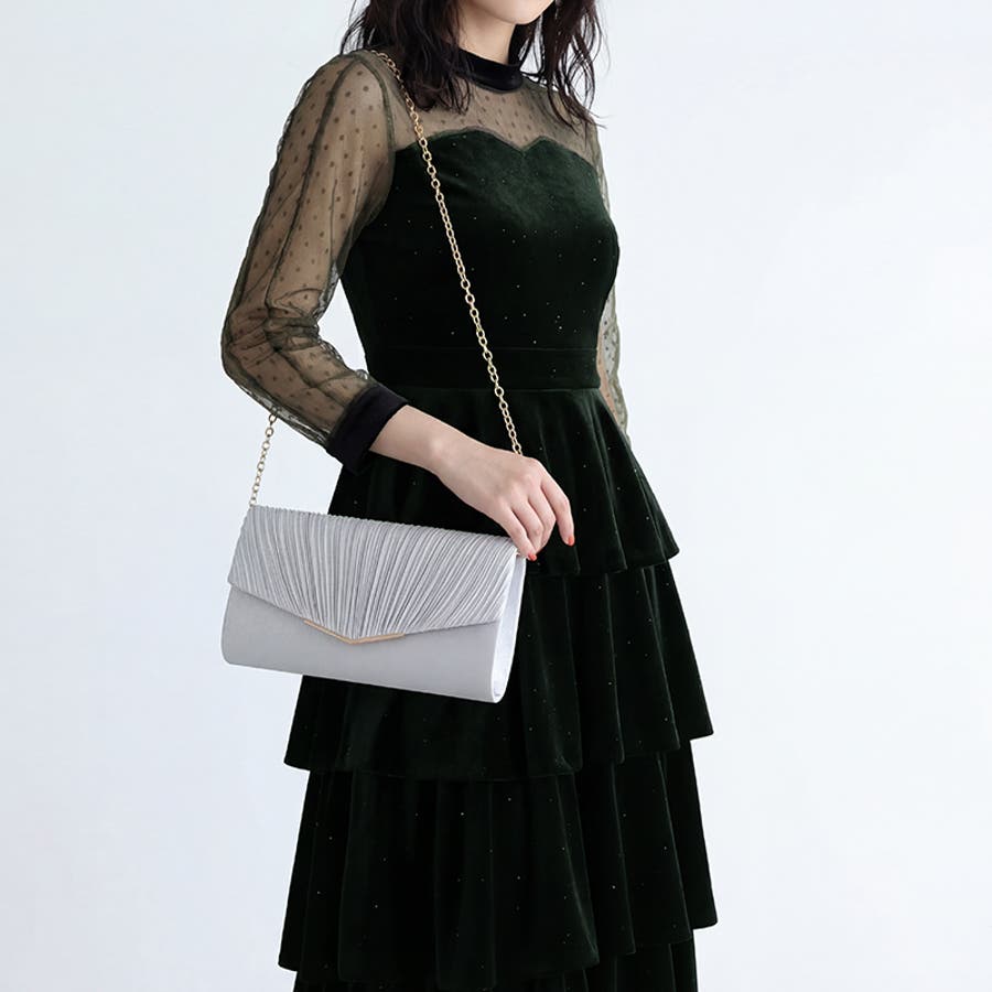 1つで3役、気品漂うサテンプリーツバッグ パーティーバッグ 結婚式